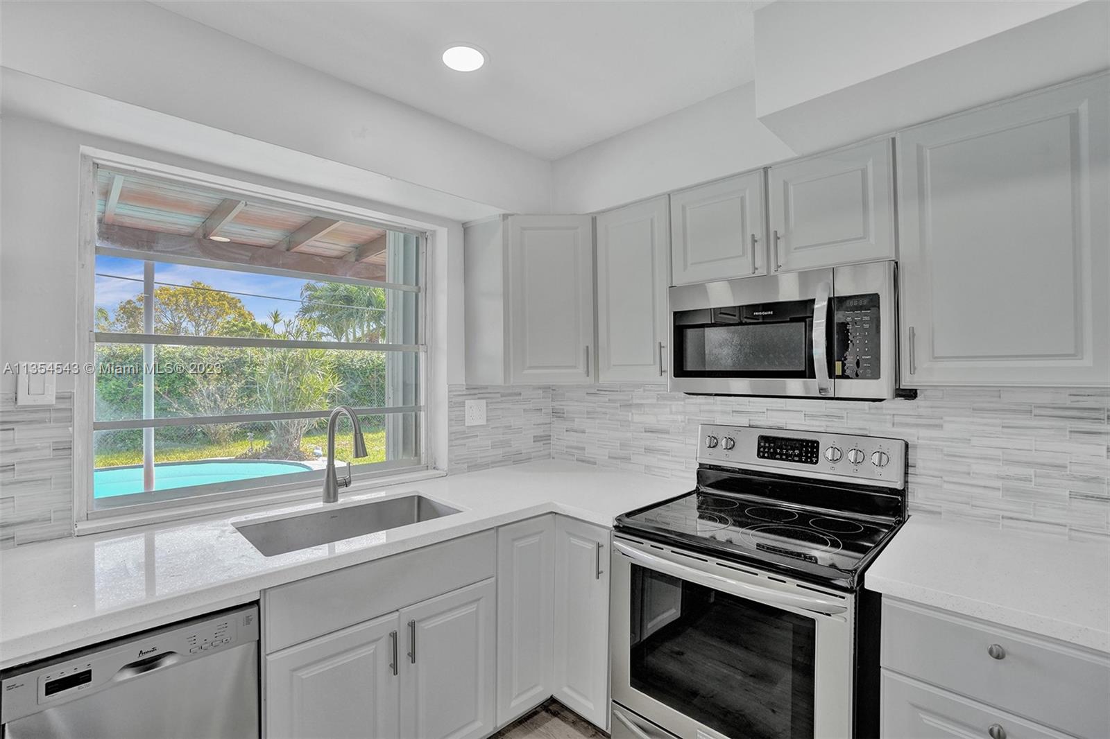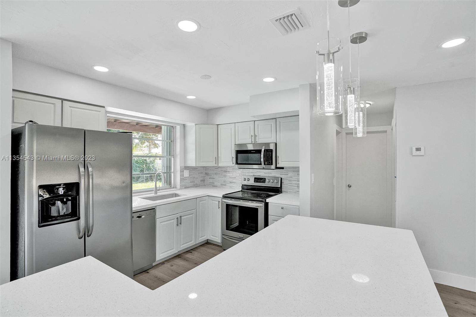 FHA NOW POSSIBLE!! Beautifully renovated 3/2 with pool in desirable Miramar location. Updated open kitchen with stainless steel appliances, quartz island and modern cabinetry. Modern bathrooms, new flooring, recessed lights throughout, brand new central AC and duct work and tankless water heater. Amazing pool in a fenced and private yard with covered porch. Close to highways, great shopping and schools. This one won't last!