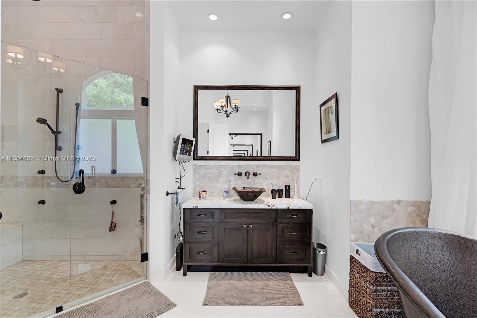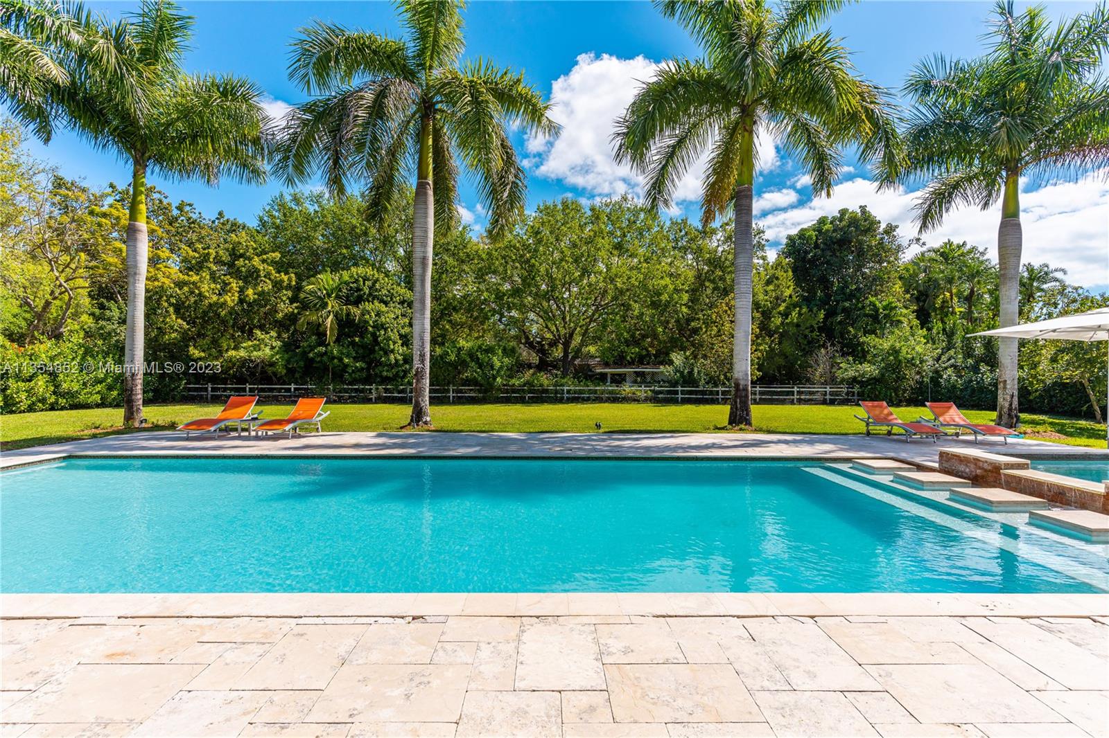 Experience an elegant & sophisticated lifestyle in a coveted tranquil cul-de-sac street with lush trees. This stunning 2-story pool home with 6 beds, 5 baths, an office, & a 2-car garage. Perfectly situated on a 39,204 sq. ft. lot in the sought-after Pinecrest area, this home offers luxurious living with top-rated A+ schools nearby. The master suite, located on the first floor, boasts a wing of its own, complete with spacious walk-in closets & a luxurious bath. The gourmet eat-in kitchen opens to a large family room. This home features impact windows & doors throughout. With optimal privacy & seclusion, this home is perfect for a quiet retreat or entertaining family & friends. Don't miss out on the opportunity to own this exceptional property in one of the most coveted areas of Pinecrest.