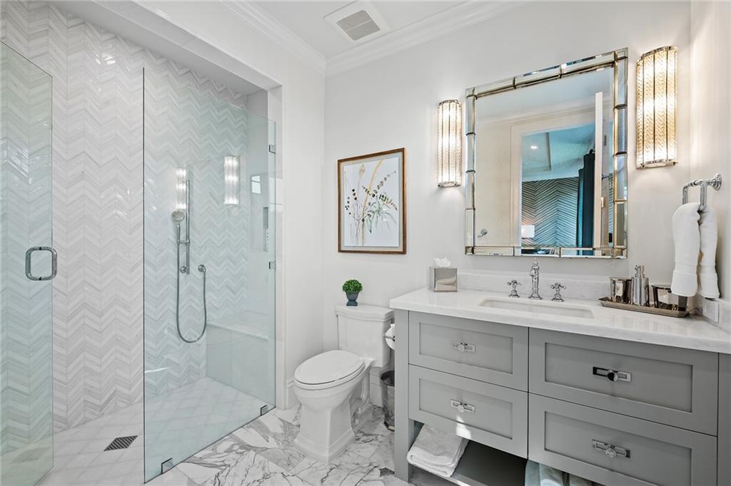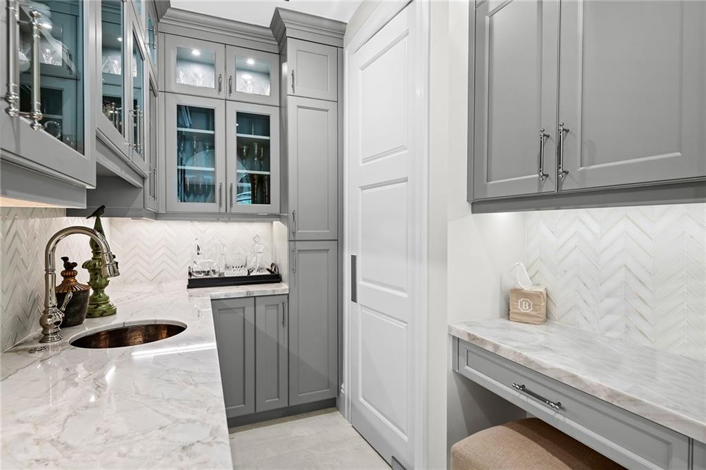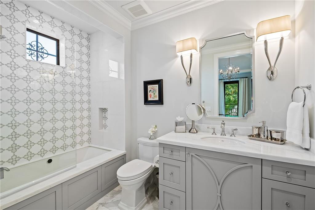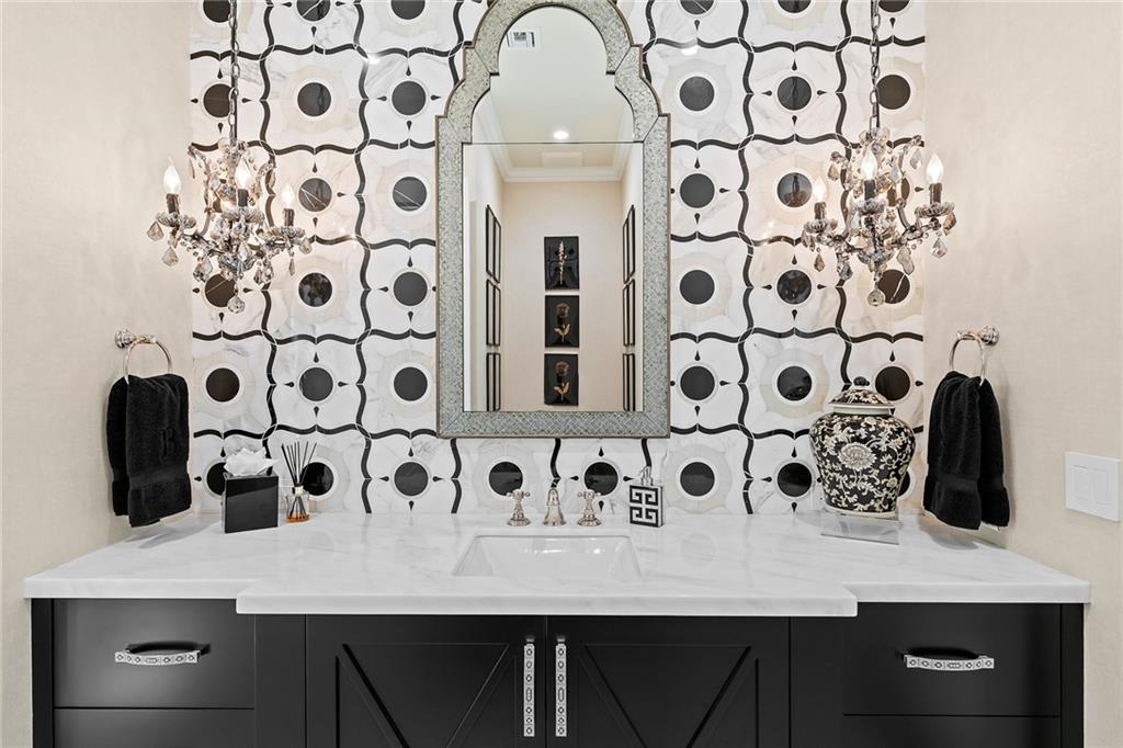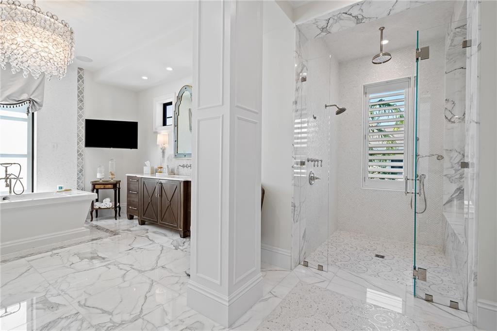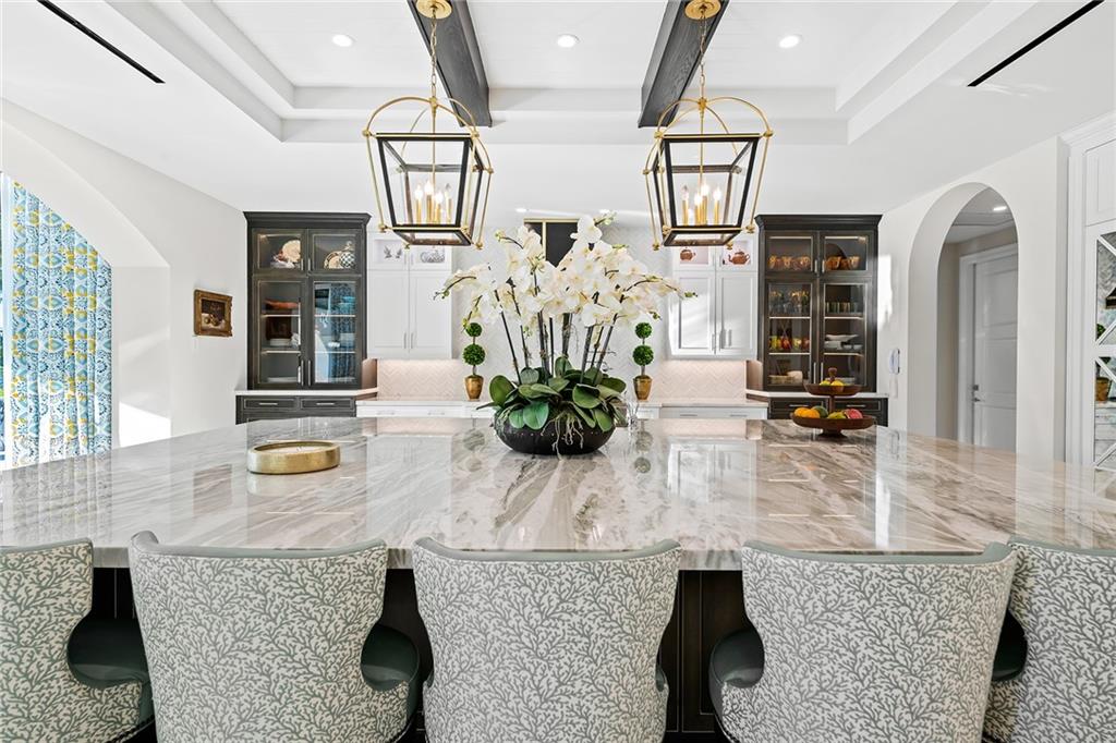 BESPOKE GRANDEUR!! 2020 CUSTOM!! 5 bedroom / 7.5 bath / 3 level residence. Well-conceived layout - epic two story foyer opens to living & formal dining rms, gorgeous gourmet kitchen w/spectacular island, breakfast rm, butler’s pantry, laundry, cabana bath, office w/cylindrical aquarium, wet bar & VIP guest suite are on first level; Ascend grand staircase to enter primary suite w/waterfront views, dual spa-like baths, boutique sized closets, safe rooms & balcony; Also residing on this level are 3 ensuite guest rms, & 2nd laundry. Elevator & exterior staircase gain access to 3 level family fun media rm w/full bath & lux sun deck w/2nd summer kitchen! Resort-like salt pool/spa, 100’ dock, 21K lift, summer kitchen, EV Charging; A/C Garages w/5 car availability, +golf cart bay, 100K Generator.