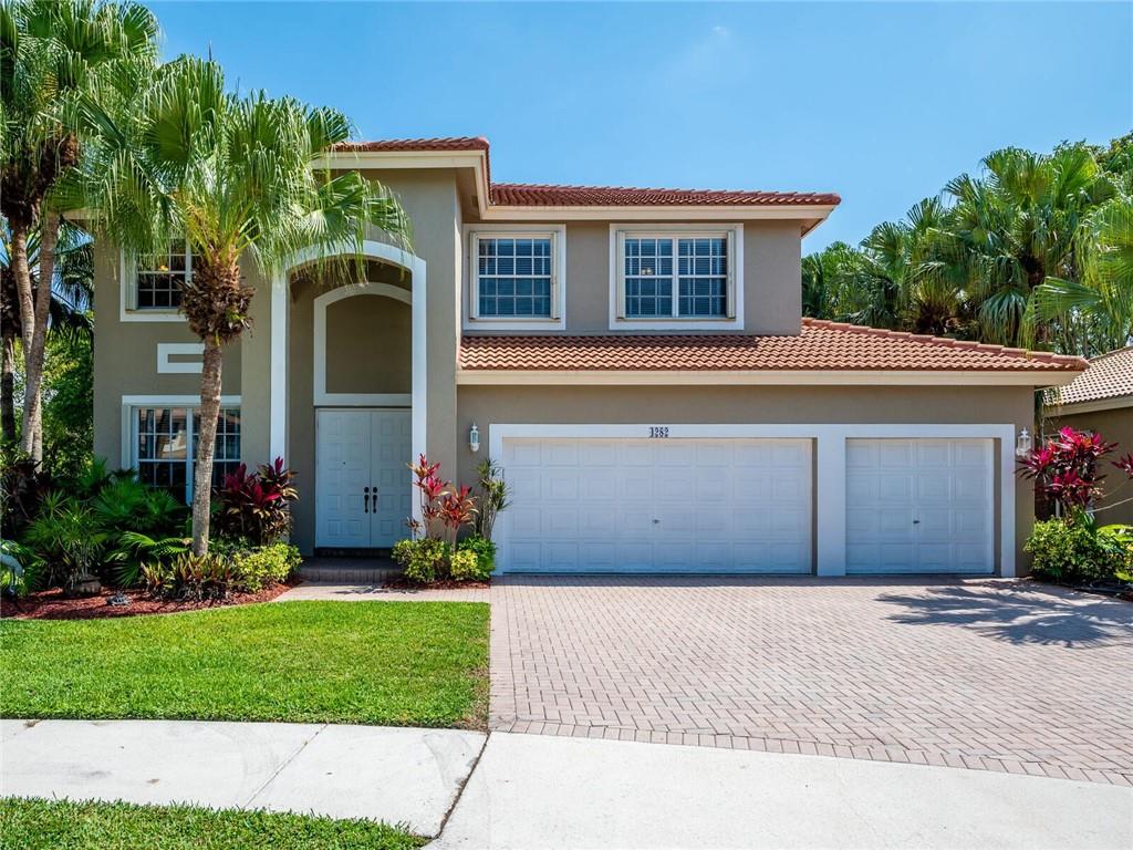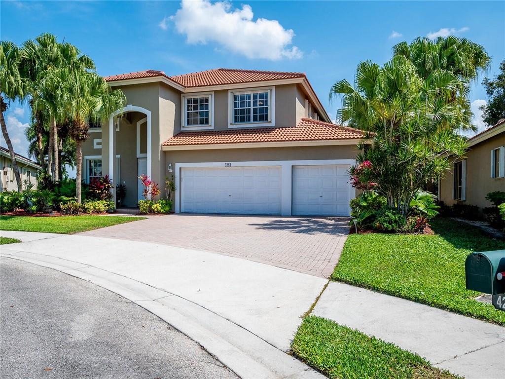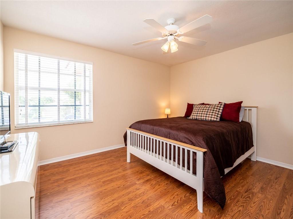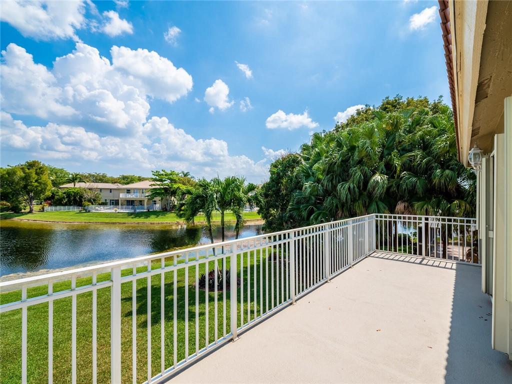 First time offered! REGENT model with sitting rm option in master bedroom. Oversized Cul-De-Sac LAKE lot. NEW ROOF JAN. 2021. Freshly painted exterior 2022. S/S appl & 42" white cabinets. Entire upstairs has wood floors but wood floors in front bedrooms, hallway & staircase are NEW. Master Br & one front br has closet built-ins. 1 br has built-in desk that stays. Covered/screened porch w/private lake view. Master has sundeck off of sitting rm. Plantation shutters on Family rm slider. HOA includes Internet, Blue Stream TV, Guard Gate, lawn maint, front yard tree trimming, sprinklers, comm pool/fitness rm. Owner prefers At Least 1 hour advance notice. DOG on premises! MLS information is TAX ROLL generated & not guaranteed to be accurate.