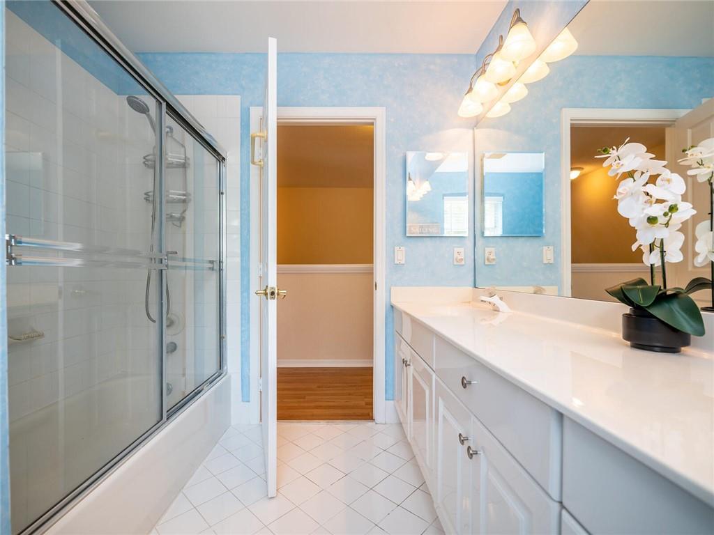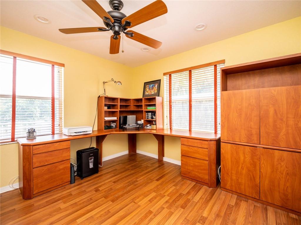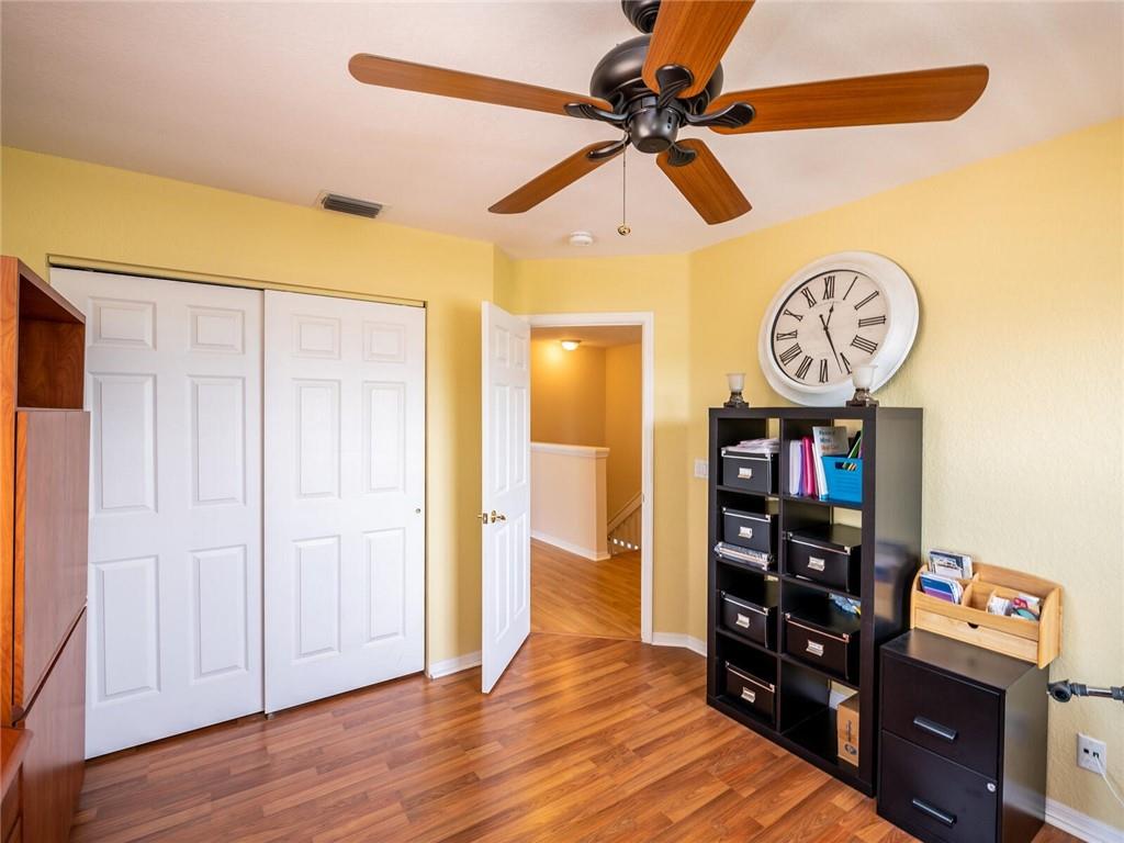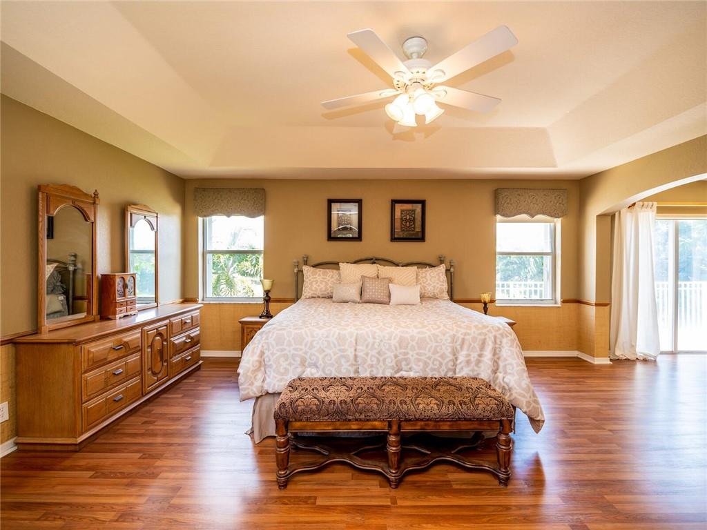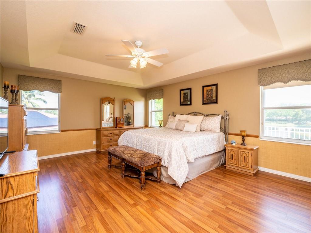 First time offered! REGENT model with sitting rm option in master bedroom. Oversized Cul-De-Sac LAKE lot. NEW ROOF JAN. 2021. Freshly painted exterior 2022. S/S appl & 42" white cabinets. Entire upstairs has wood floors but wood floors in front bedrooms, hallway & staircase are NEW. Master Br & one front br has closet built-ins. 1 br has built-in desk that stays. Covered/screened porch w/private lake view. Master has sundeck off of sitting rm. Plantation shutters on Family rm slider. HOA includes Internet, Blue Stream TV, Guard Gate, lawn maint, front yard tree trimming, sprinklers, comm pool/fitness rm. Owner prefers At Least 1 hour advance notice. DOG on premises! MLS information is TAX ROLL generated & not guaranteed to be accurate.