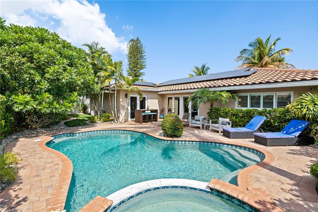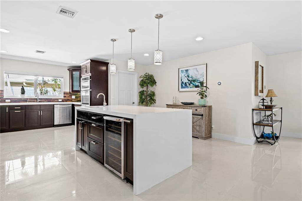 Sophisticated luxury in Coral Ridge Country Club!!! Experience the WOW factor the moment you enter this completely updated contemporary style home w/luminous open concept living. Opulent finishes throughout, the spacious flr plan is conducive to today’s lifestyle boasting a culinary-inspired kitchen w/ center island & sink, stainless steel appliances, professional grade refrigerator, wine cooler & quartz counter tops. The oversized primary suite has direct access to the resort-style backyard, walk-in closet & exquisitely designed primary bathrm. Enjoy your tropical backyard w/heated saltwater pool/spa. Solar panels, impact windows & doors, Nest thermostat, Ring Doorbell, meticulous landscaping, glistening floors completes this retreat. Close to beach, restaurants & shops. Sq Ft from BCPA.