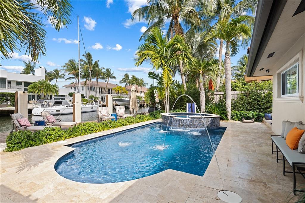 Experience Ocean Access Living With This Transitional Mediterranean Home Boasting Two Beautiful Master Suites, Custom Walk-In Closets and Two Ensuite Guest Rooms, Downstairs and Upstairs Laundry Rooms and Formal Living and Family Room. Enjoy Al Fresco Dining Under the Expansive Pergola Overlooking a Lush and Tranquil LED Landscape Garden, Brand New Heated Pool and Spa! 100 ft dock and 10k lb boat lift, No Fixed Bridges and Only Yards Away from the Intracoastal Waterway. Gas Range, Impact windows and doors, Custom Garage, Plantation Shutters All Impeccably Maintained! Stroll to the Beach, Restaurants, park and More. Live Here, Relax and Entertain in the Lifestyle South Florida is Famous for.