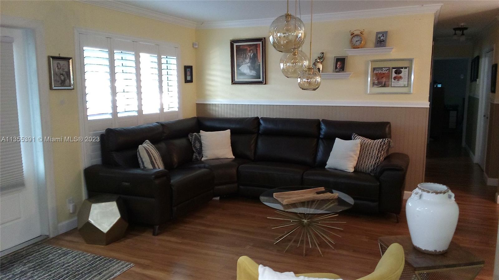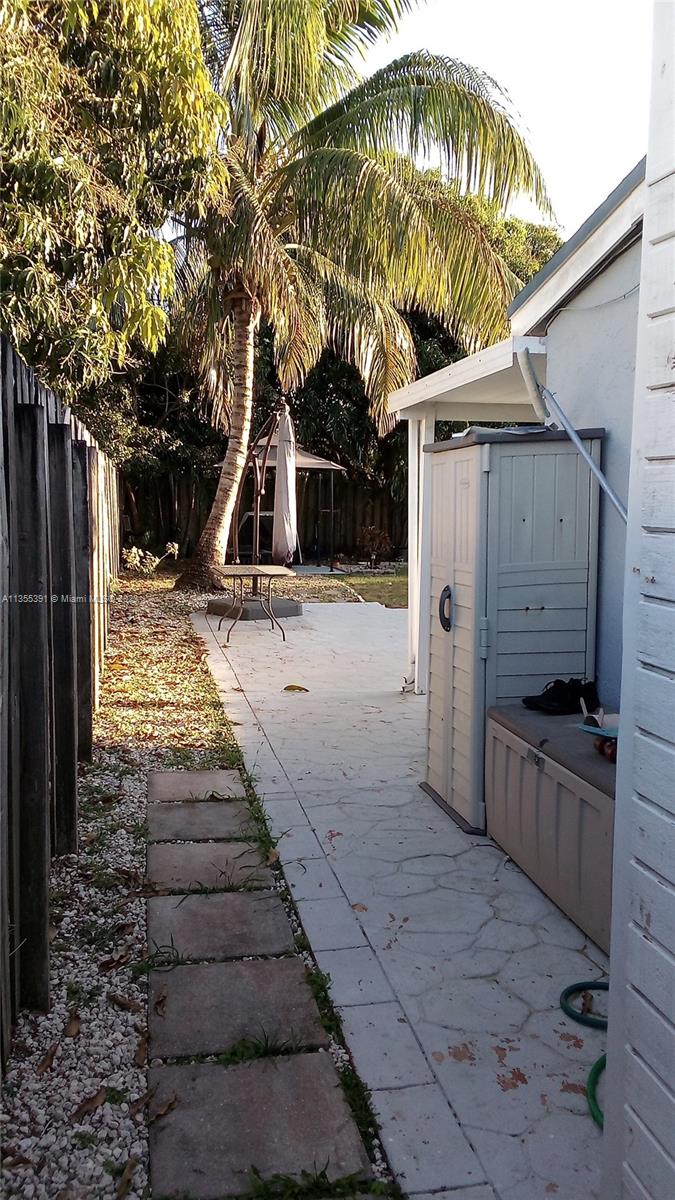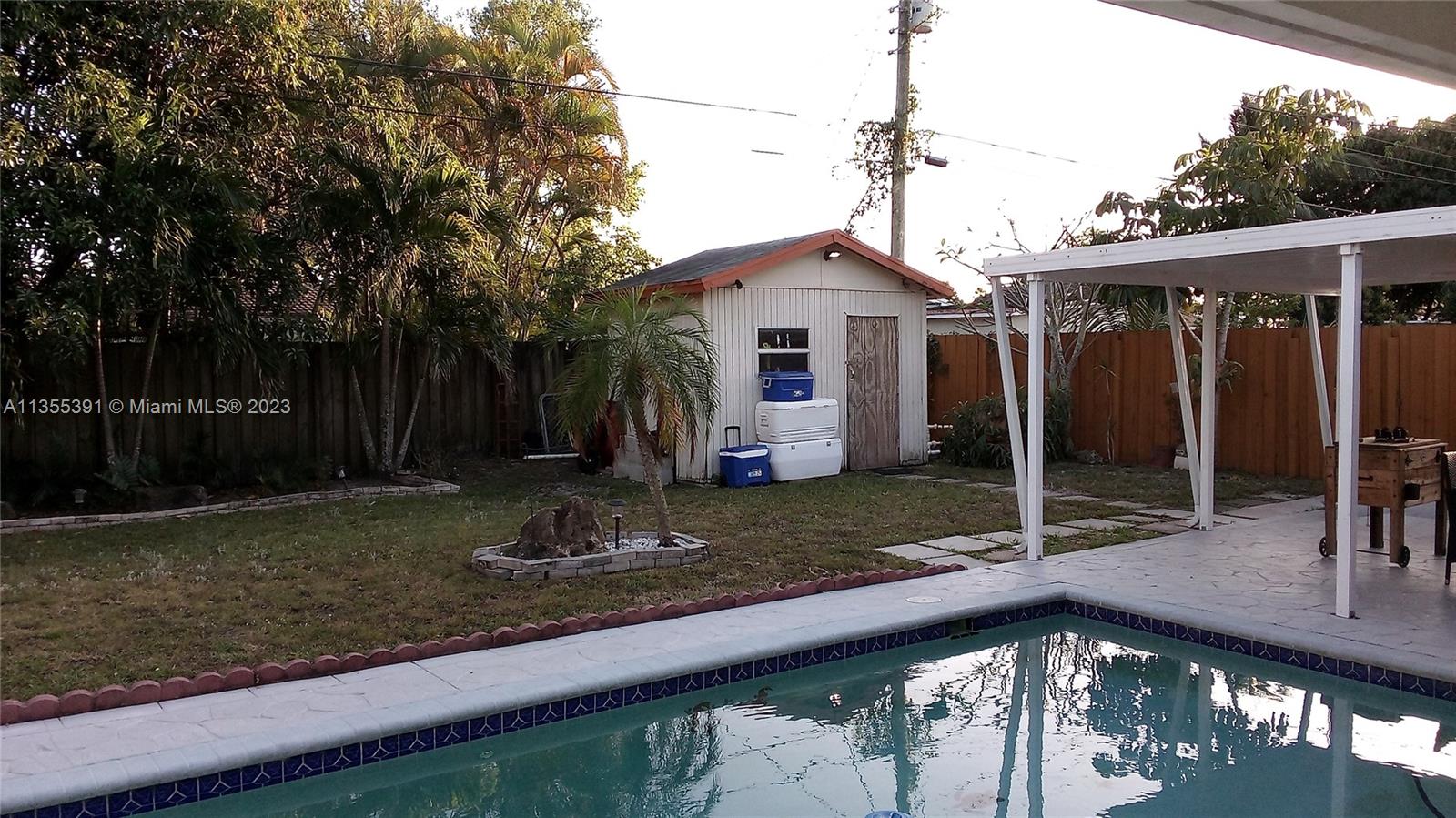 Beautiful, Charming 3bds home w/resort style pool, gorgeous, relaxing backyard perfect for entertaining and tranquility. Welcoming front patio, stamped concrete driveway, garden Magnificent lighting fixtures, gorgeous wood floors, This home offers a charming, inviting ambiance, and opens up to a lovely living room, and fireplace to enjoy warmth and comfort during our So. Flo cold snaps, built-in wine rack, built-in curio cabinet, spacious dining room, off to your spacious gourmet kitchen with granite countertop, large French door refrigerator with freeze bottom, flat top stove, built-in microwave, Hurricane-impact windows, doors, and plantation shutters offer privacy and elegance
