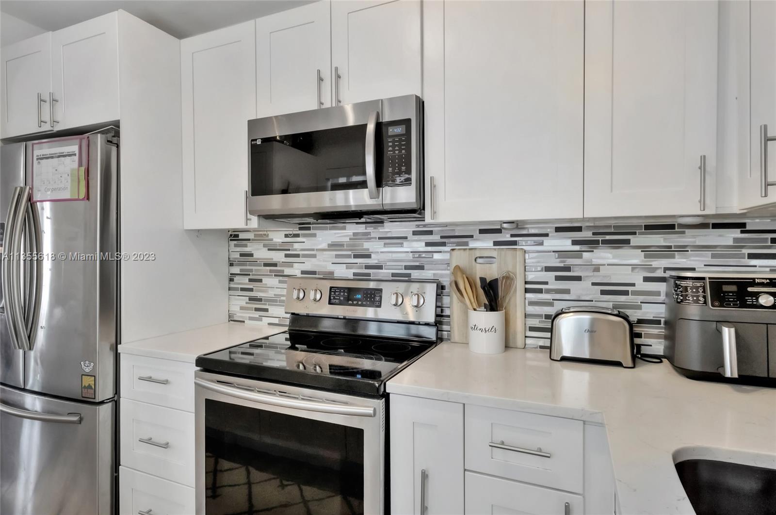 Beautiful home centrally located on a quiet street in the heart of Hialeah. This home features many updates including luxury vinyl floors throughout, a tastefully remodeled bathroom and modern kitchen with stainless steel appliances, white shaker cabinets, new fixtures and a beautifully tiled backsplash. ALL windows and doors are fully impact. Includes covered carport and lots of parking. A large backyard with several fruit trees perfect for entertaining guests with room for a pool and expansion. This is the perfect starter home for a family.