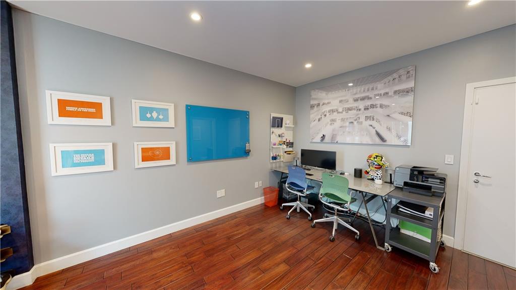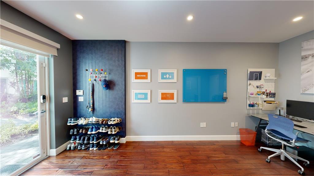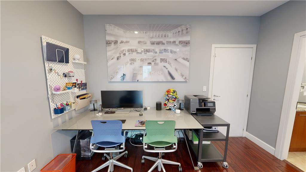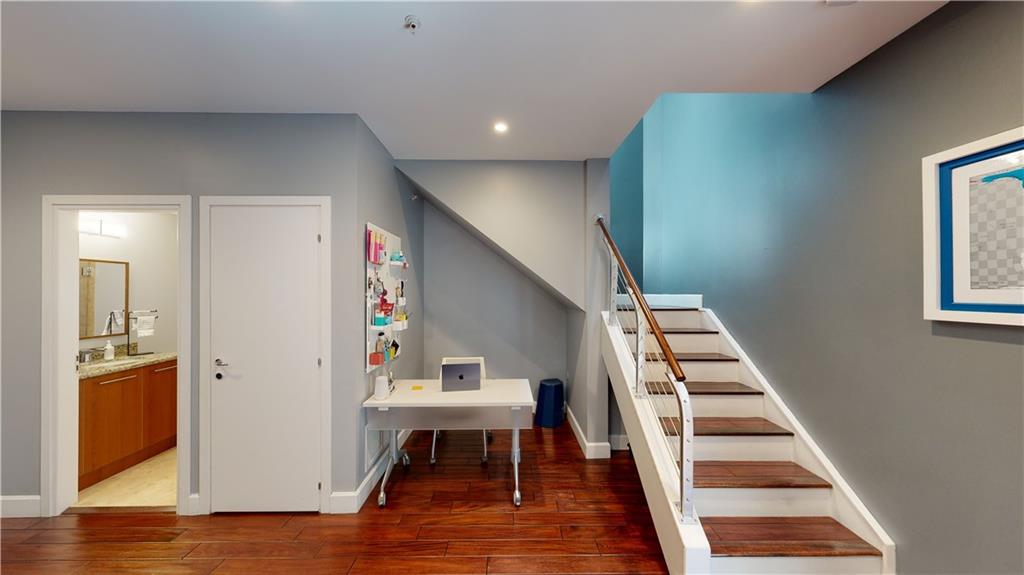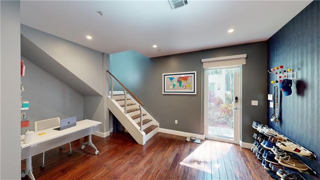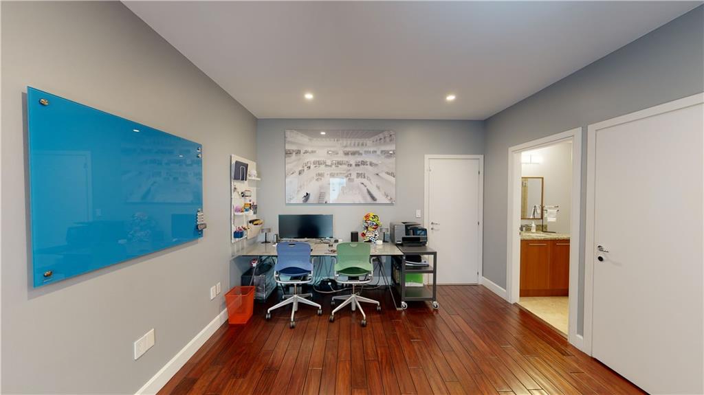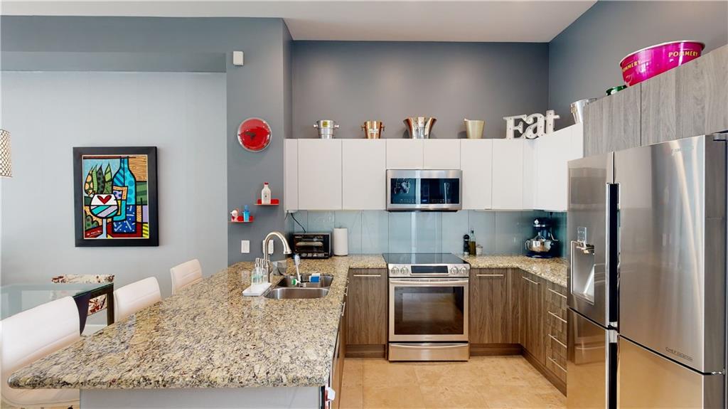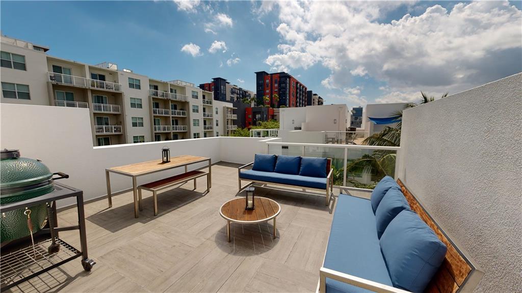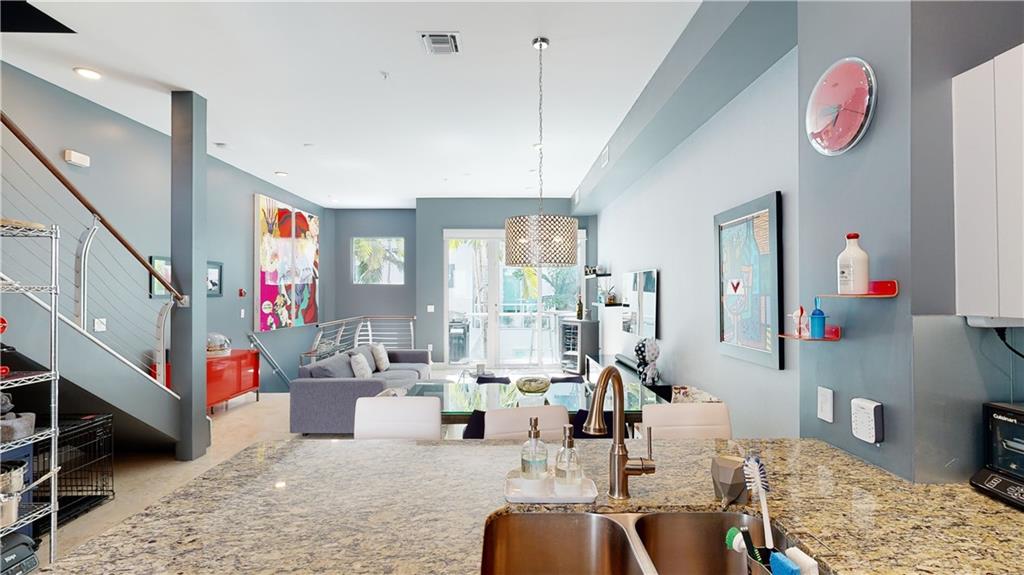 Welcome to this 3 bed 3 1/2 bath Bamboo Flats townhome in the heart of Flagler Village with your very own two car garage. This magnificent four-story residence boasts a sleek and modern design and the ultimate living experience. Featuring an open-concept office space that can be converted into a third bedroom. The living/dining/kitchen on the second floor seamlessly blends style and function. 11-foot ceilings + large windows flood the space with natural light and create an airy welcoming atmosphere. The kitchen is equipped with Samsung Chef Collection appliances, modern cabinetry, and plenty of counter space. All bedrooms feature en-suite bathrooms. The private rooftop terrace is the perfect space for hosting gatherings, relaxing after a long day, or just enjoying a glass of wine.