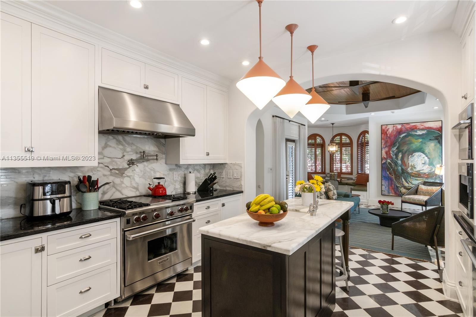 Stunning Classical Mediterranean Moroccan Style Villa custom built by a renowned Coral Gables builder. An Elegant and Delightful Sanctuary where every detail of construction, design & finishes have been executed to the highest standards, with crafted and upscale finishes and upgrades, from Carrara Marble to Miele and Wolf Appliances. This vila is centrally located to enjoy Urban Coral Gables and yet tucked away in Sarto Avenue surrounded by tropical foliage and an intimate courtyard patio ideal for entertainment. The property is walled and gated to ensure an atmosphere of privacy & exclusivity. Exceptional! Timeless! Just Beautiful!