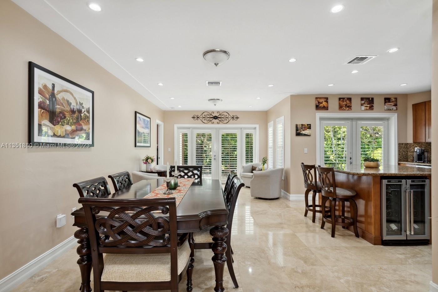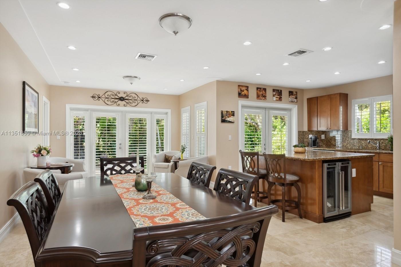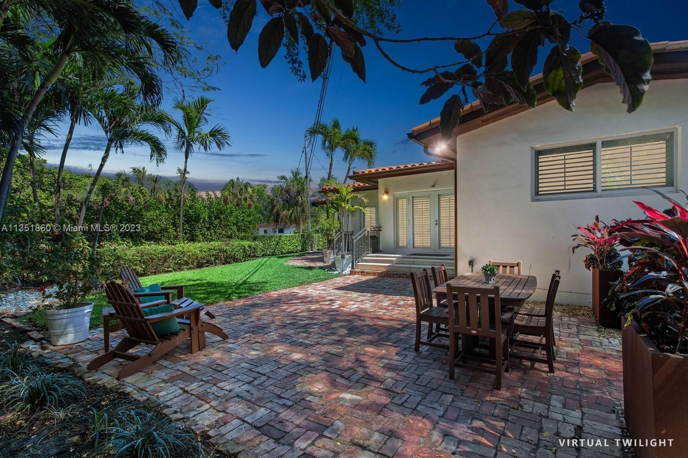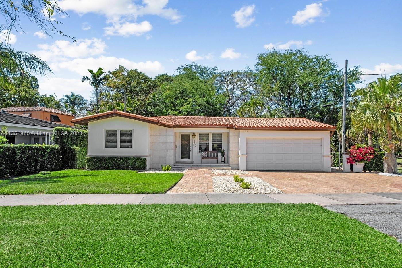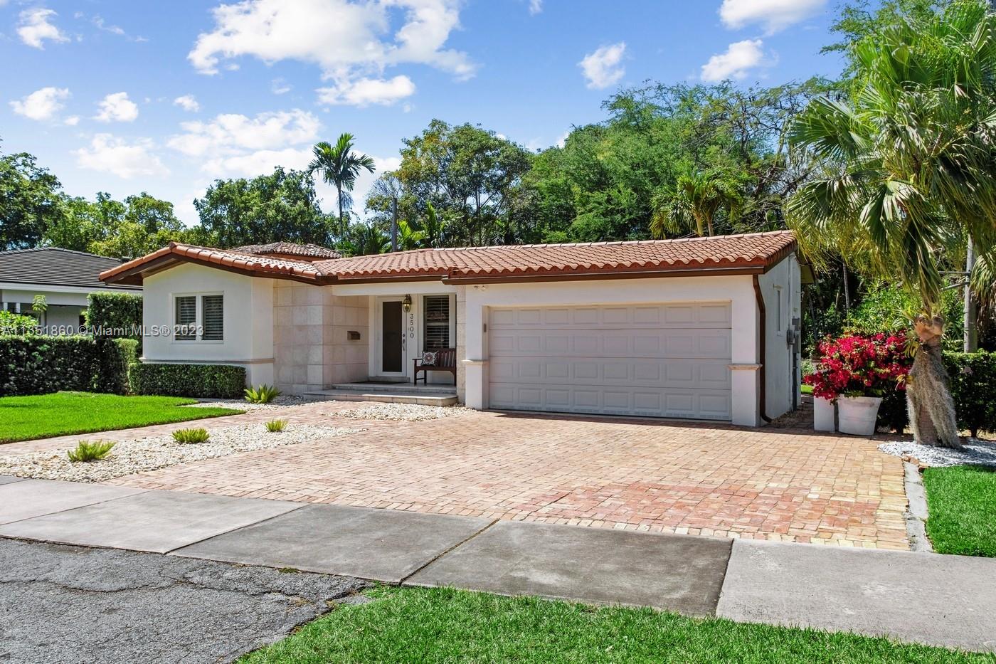 Charming and elegantly updated Gables gem! Enter into this beautiful move in ready, open floor plan to experience the perfect ambiance offering Impact windows /doors, immaculate neutral travertine and hardwood floors, plantation shutters throughout and a new Carrier A/C with u.v. light, new duct work and PVC plumbing. Perfect for intimate gatherings with an over sized island with seating, temperature controlled wine cooler, stainless steel appliances ,wood and granite kitchen, including a full house Generac generator. Crown molding with delicately designed sculptured ceilings, recessed lighting and a full 2 car garage make this the perfect oasis to include outdoor relaxation on the Chicago brick patio among mature and meticulously manicured foliage with a park like setting. Welcome Home!