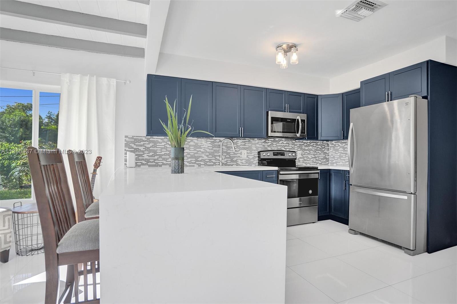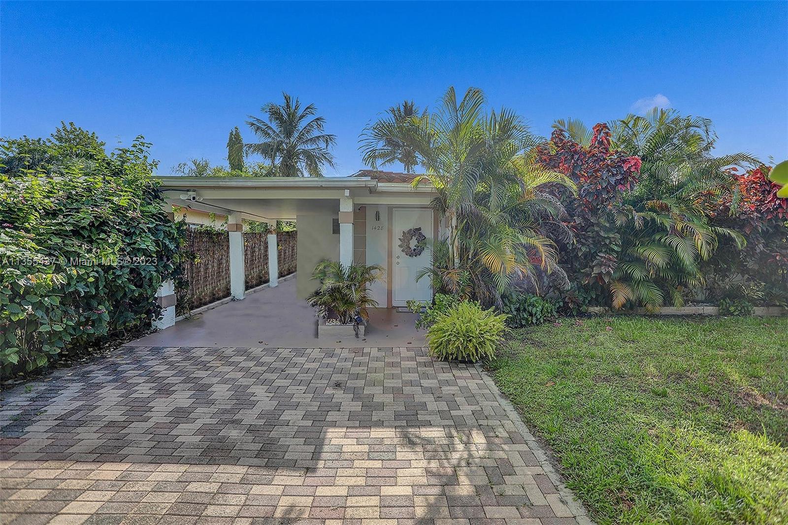 Accepting backup offers! Fully renovated, 2 bed/1 bath with gated driveway in charming Wilton Manors South with new roof, impact windows, and plenty of room for an addition and pool. The interior design features white porcelain tile floors; and a contemporary kitchen with stunning dark blue cabinetry with soft close doors, quartz countertops, stainless steel appliances and a large breakfast bar. The bathroom is fully remodeled. The lot offers plenty of privacy to enjoy the welcome breeze with lush landscaping in the back and rare high hedges in the front. It also features wired security cameras. The carport conveniently houses a laundry room. This centrally located property is nearby FLL Airport, Galleria Mall, Las Olas Blvd & a stones throw to the beach. Just blocks from Gardenia Park.