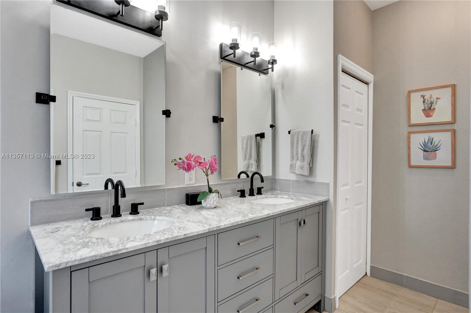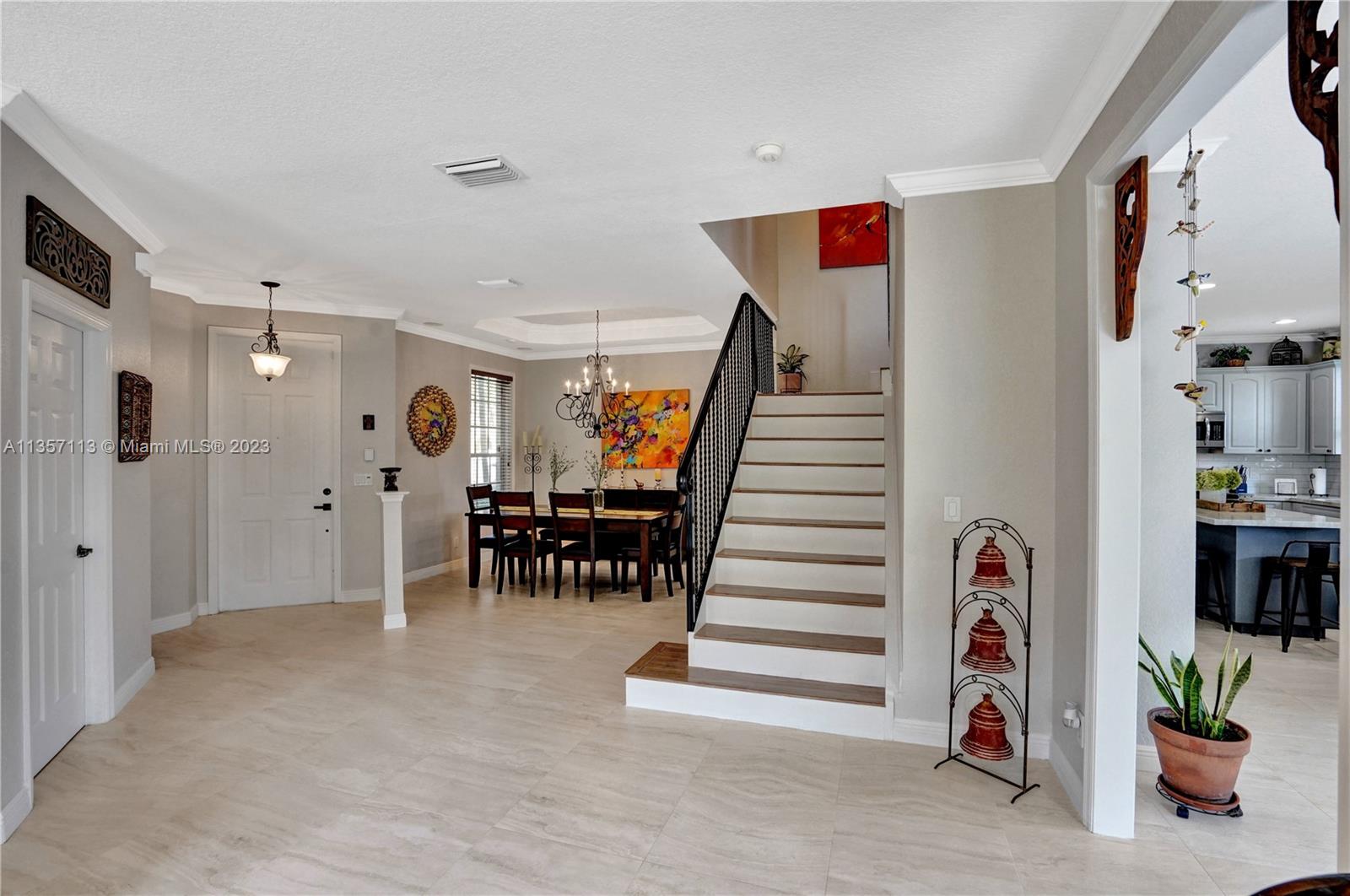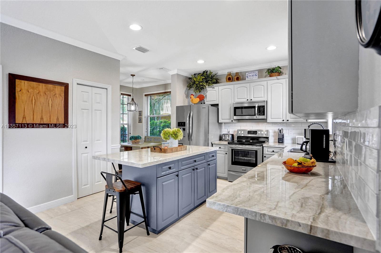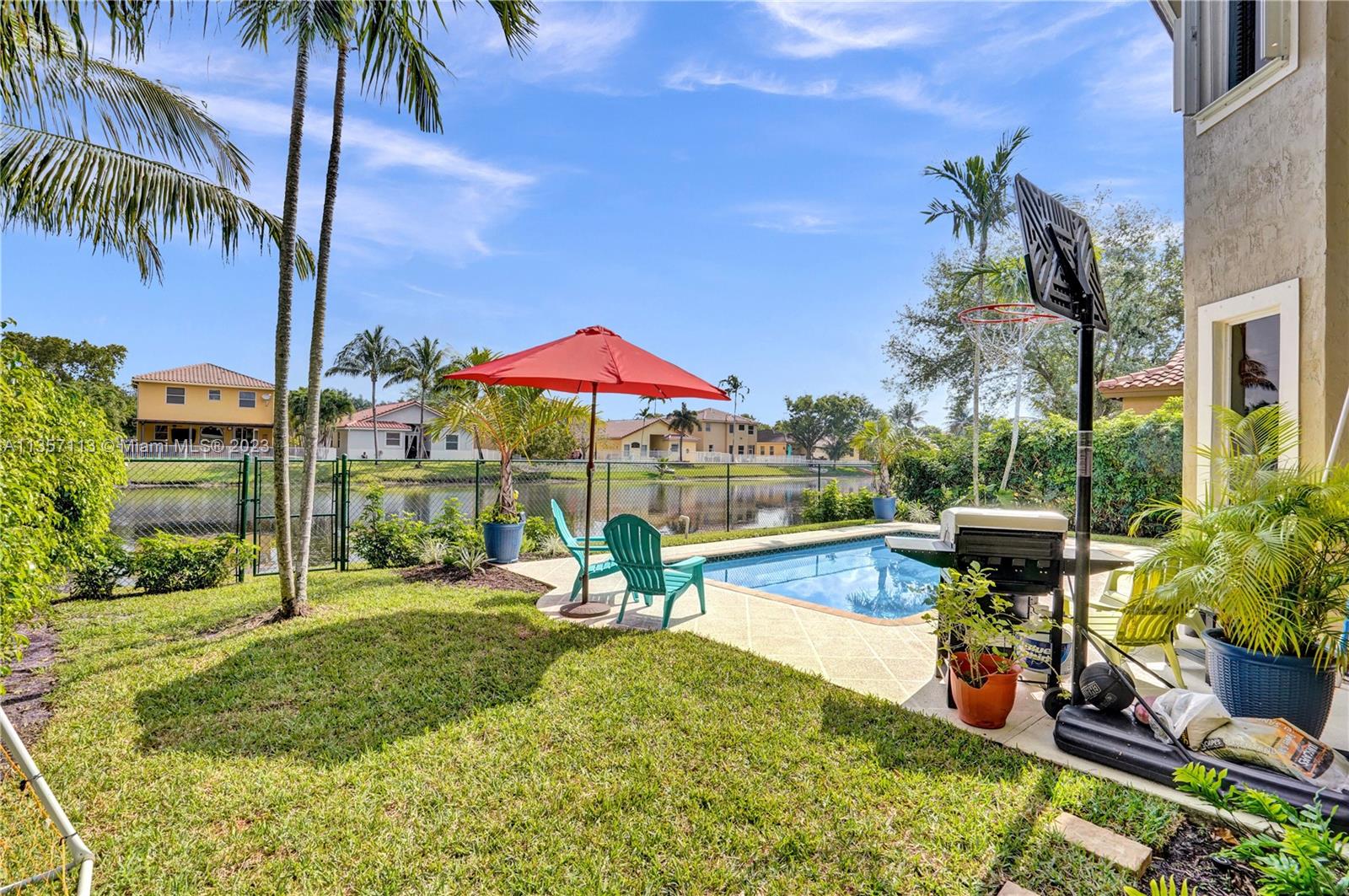 This waterfront home with a pool is absolutely stunning and very spacious! Bright & open floor plan with large social areas. An expansive gourmet kitchen with Quartzite counter tops and top-of-the line stainless steel appliances. The primary bedroom is spacious and offers a large walk-in closet. Fully remodeled bathrooms, new porcelain flooring, fresh interior & exterior paint, A/C replaced 2 years ago, vaulted ceilings, new iron railing on the stairs, surround sound, crown moldings, elegant chandelier and light fixtures, smart light control, second floor accordion shutters. Gorgeous backyard boasts a sparkling pool, an amazing lake view, lush landscaping, making it the perfect place for entertaining! This home is ready to move in!