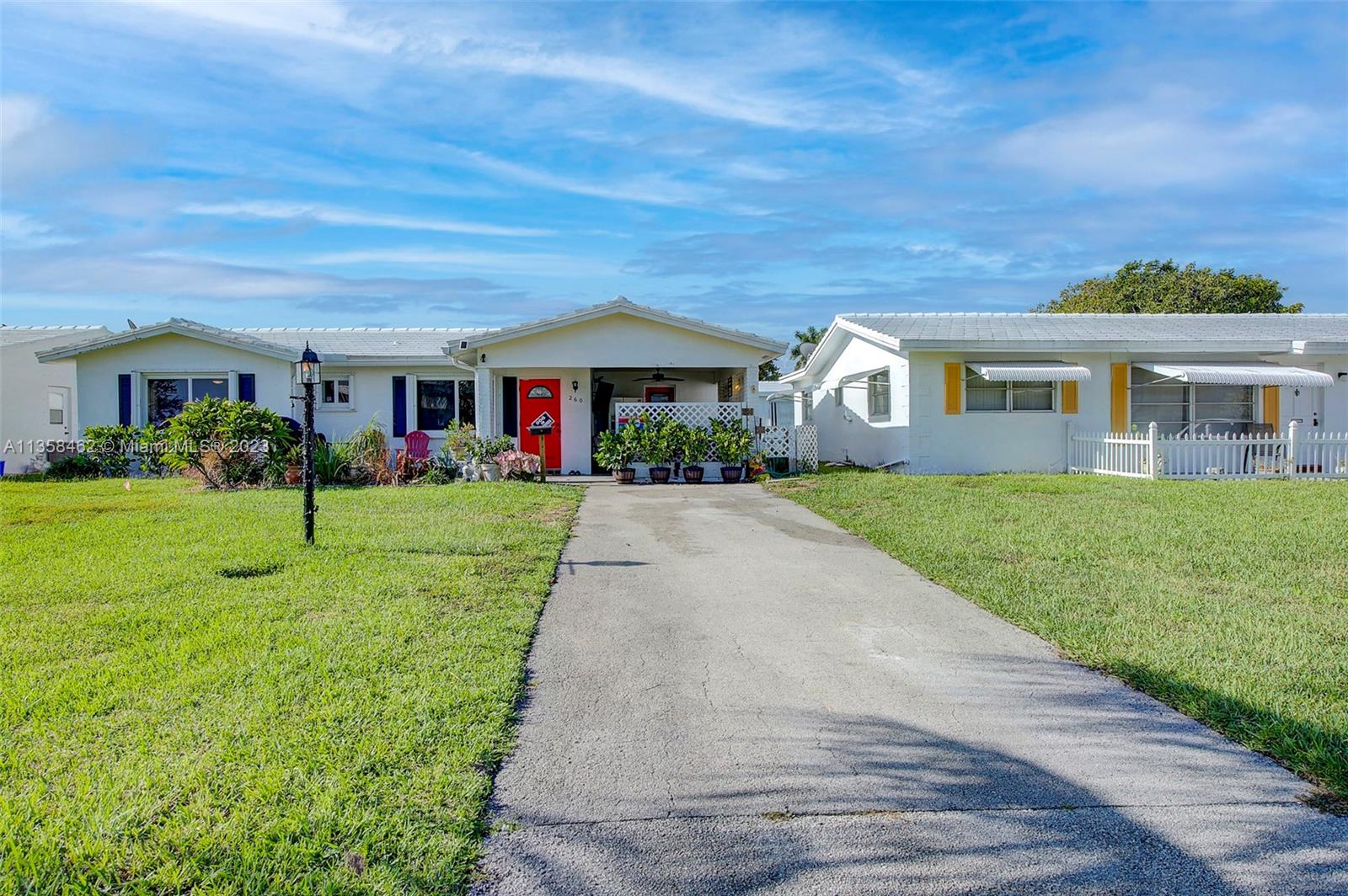 Comfortable two bedroom, two bathroom single family home in a cozy, pet-friendly 55+ community. The home features a large enclosed patio area, car port, very spacious front yard, impact windows and doors, new A/C, new vinyl flooring, and both bathrooms recently remodeled. Additionally, the interior was recently repainted and the home includes a new washer, dryer, and water heater. This is a very quiet, relaxing retirement community with its own golf course and community center with a pool. Perfect community to live your Golden Years! HOA fees include water, exterior painting, roof cleaning, and lawn maintenance. The land lease on this property was paid off!