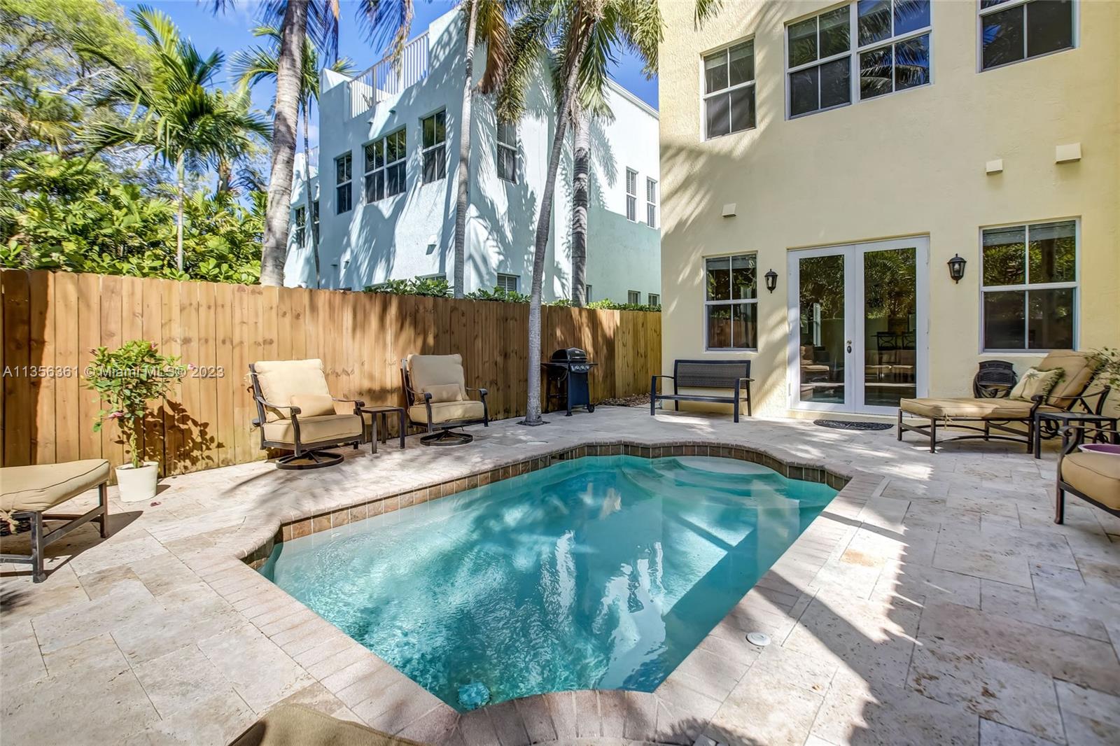 Stunning Key West Style luxury corner unit tri-level home w/ no HOA (no rental restrictions) in downtown Fort Lauderdale built by J. Hendricks Homes. Situated deep in Tarpon River near multi-million dollar waterfront homes & Lewis Landing Park. Low maintenance, Private Heated Pool w/ Travertine Deck & mature trees. High end finishes: Marble floors, Granite counters, solid core doors, stainless appliances; crown molding, volume ceilings. All Impact Glass, Metal Roof, 2 Car Garage. Turn key Furnished. Private 3rd floor roof top style deck. Open floor plan on 1st floor; 2 beds & 2 baths on 2nd & a bed/bath/den on 3rd which can convert into a 4th bed. Tarpon River is a quiet, tree-lined community. Walk to Hardy Park, Wells Coffee, bike to Las Olas. Minutes to i-95, Airport or Beach.