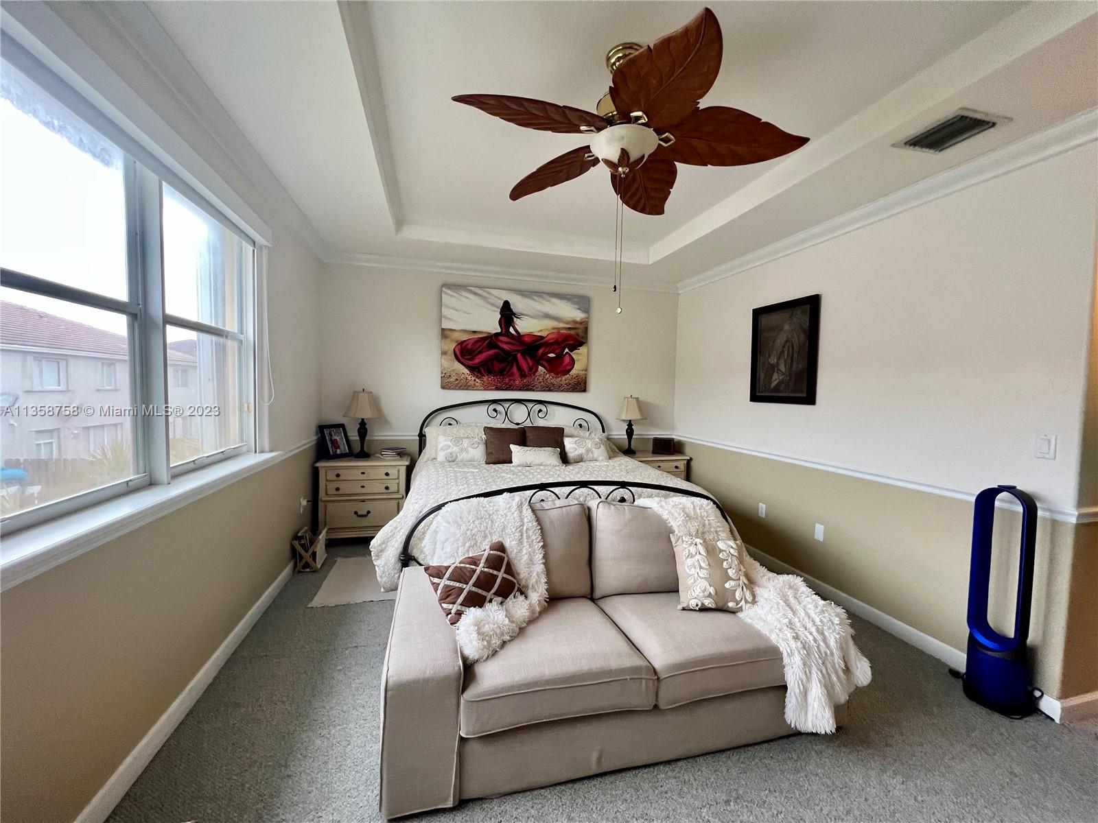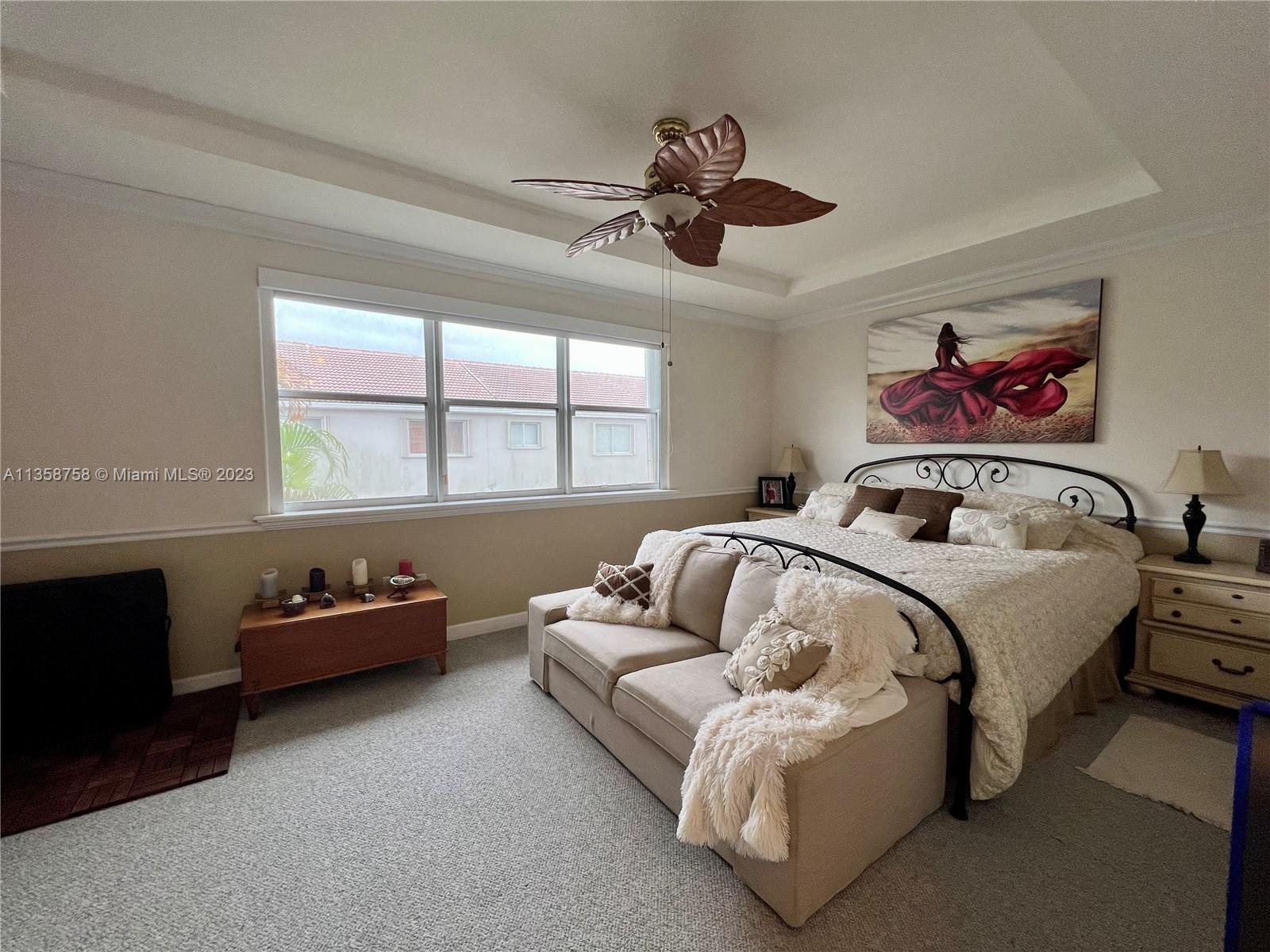 This is a true four bedroom. All rooms have very large closets. This home is super clean with perks like a “Titan brand” tankless water heater, ceiling fans throughout, “commercial grade” Wi-Fi extenders. Front loading washer dryer, under stairs storage, motion detectors, new outdoor lighting. Back patio is big enough for BBQ and entertaining. All rooms are large with nice windows for natural light. High ceilings. Very large kitchen and eat in kitchen area. Maintenance is 260$ includes common areas pool, security and roof. Motivated Owner!
