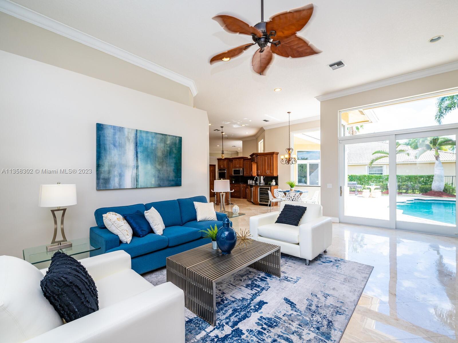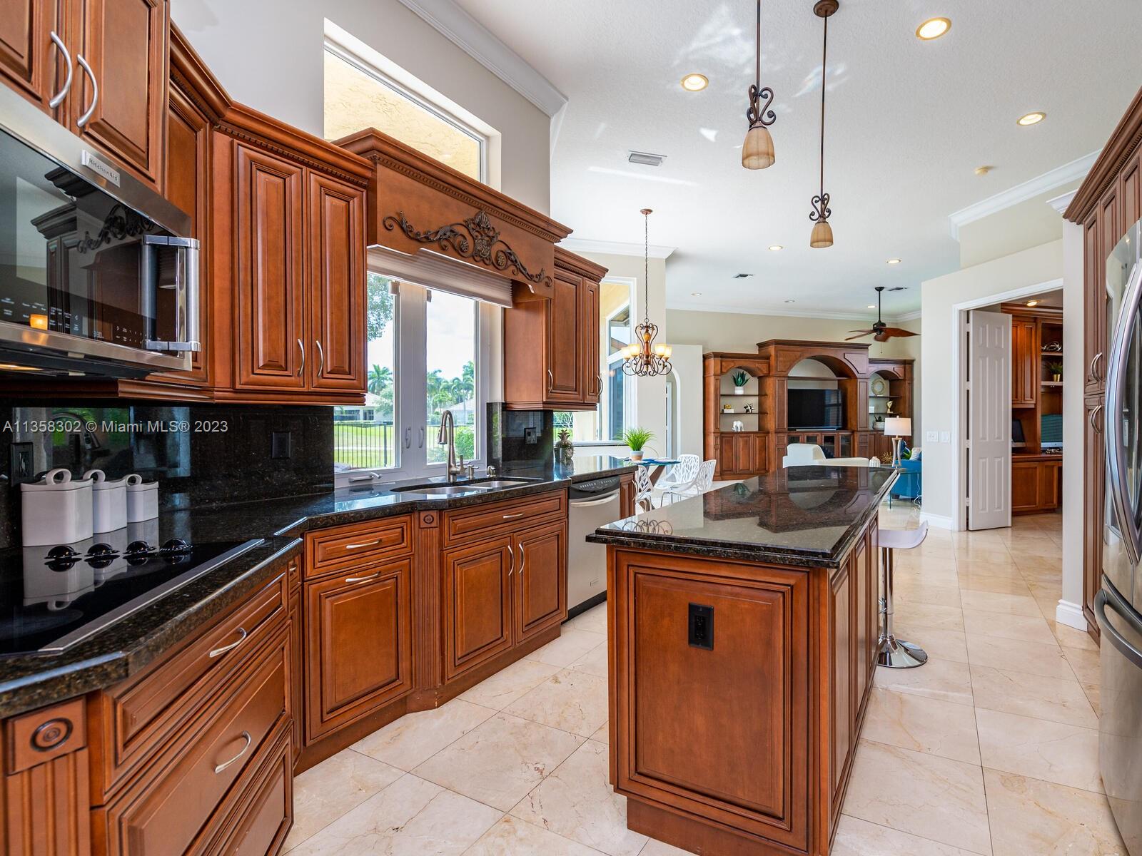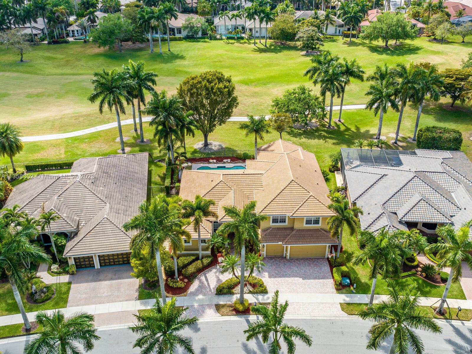 Magnificent, One of a Kind Custom Built Home on the 7th Hole of Weston Hills Country Club, Players Golf Course. Picturesque, Serene Golf Views from all living areas. This Elegant 6 Bed, 5 & 1/2 Ba + Office home was expanded from the original Kingsley floorplan. Second Story addition added as a Private Retreat for children w/3 Bed, 2 Baths & Spacious Loft. 1st floor Master with lavish marble bath, his & hers walk in closets plus - a Luxury Walk-in Closet that is every woman's dream including beautiful built-in's and center island. The gourmet Kitchen w/walk in pantry, & spacious center island. Travertine Marble Floors in all living areas, FULL IMPACT WINDOWS & FRENCH DOORS, ROOF REPLACED IN 2019. 5 way split plan offers privacy for all, 3 Car Garage, Circular Drive, Sec System and more....