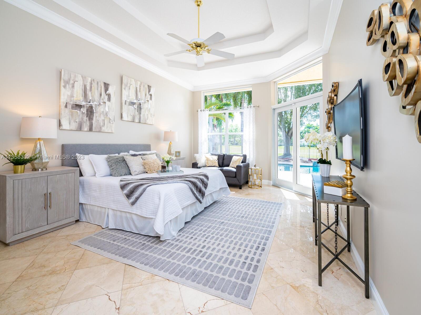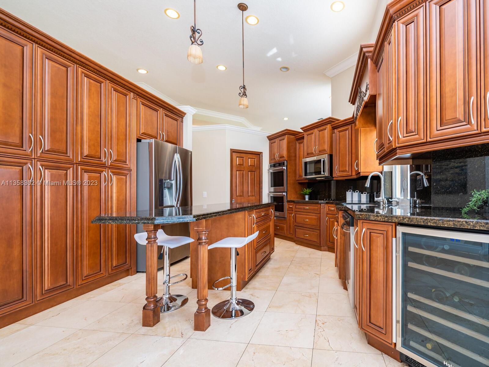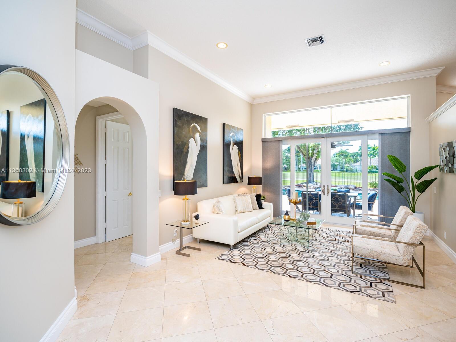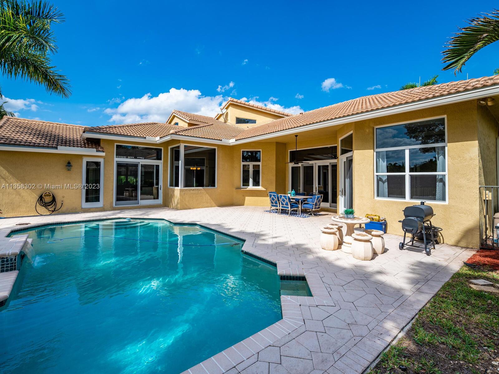 Magnificent, One of a Kind Custom Built Home on the 7th Hole of Weston Hills Country Club, Players Golf Course. Picturesque, Serene Golf Views from all living areas. This Elegant 6 Bed, 5 & 1/2 Ba + Office home was expanded from the original Kingsley floorplan. Second Story addition added as a Private Retreat for children w/3 Bed, 2 Baths & Spacious Loft. 1st floor Master with lavish marble bath, his & hers walk in closets plus - a Luxury Walk-in Closet that is every woman's dream including beautiful built-in's and center island. The gourmet Kitchen w/walk in pantry, & spacious center island. Travertine Marble Floors in all living areas, FULL IMPACT WINDOWS & FRENCH DOORS, ROOF REPLACED IN 2019. 5 way split plan offers privacy for all, 3 Car Garage, Circular Drive, Sec System and more....