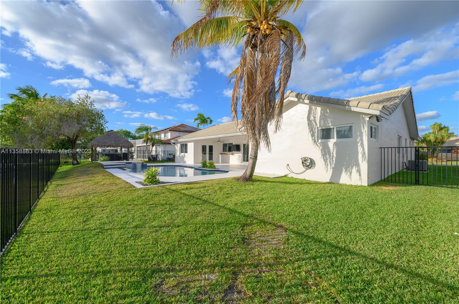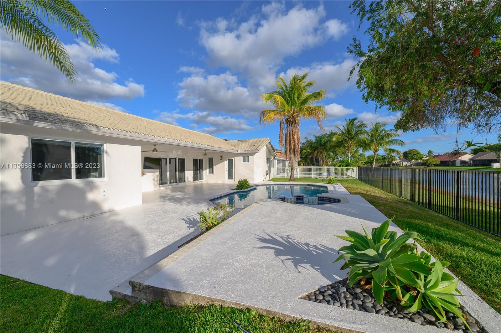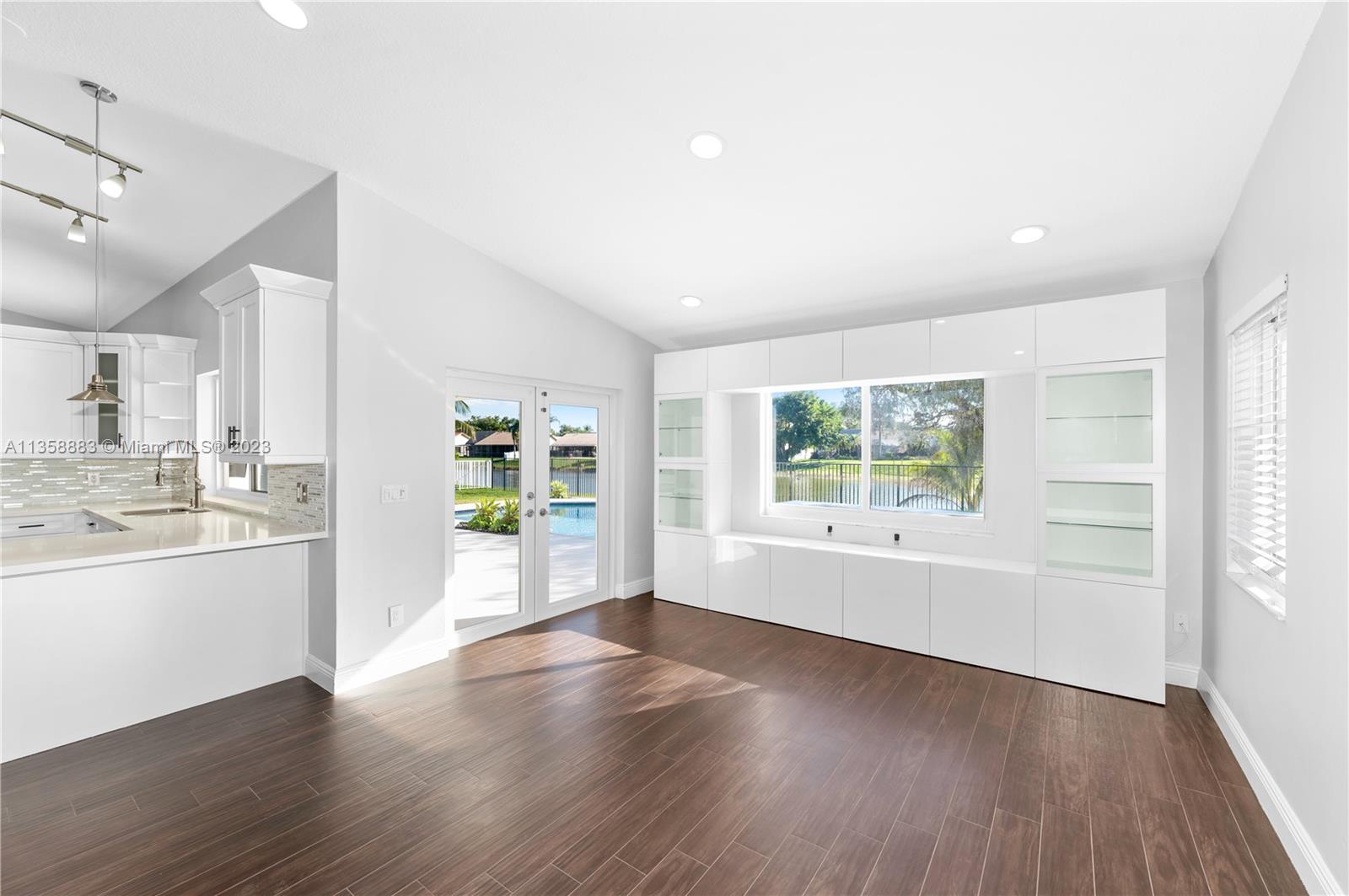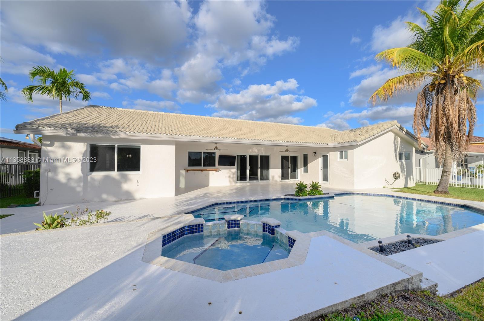 Beautiful and spacious four bedroom home offers a warm welcome and features a lakefront heated pool and jacuzzi. The large living and family areas are complemented by a lovely all-white kitchen, an ample two car garage, two AC units (both replaced in 2016) and impact windows. Interestingly, the primary bedroom boasts dual walk-in closets and master baths, one of which doubles as the cabana bath.