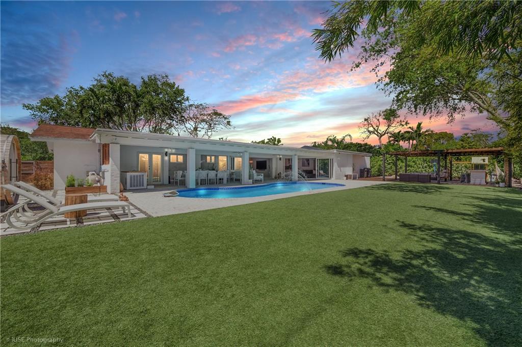 Family dream home in coveted Pinecrest! This 4 bedroom, 3 bath, family room with office showcases the best of Florida living. Wide open social spaces with glass doors seamlessly blend the interior with the exterior. The exceptional backyard features an oversized covered patio, large pergola and glistening pool for entertaining family and friends, or simply a quiet place to relax. Impact windows and doors, 2 car garage, freshly painted, lots of updates, walking distance to top A rated schools, close to parks and marinas. What the seller loves about this home Great yard for entertaining or relaxing. Spacious social areas with nice sized bedrooms. Impact windows and doors which allows for perfect natural light for indoor and outdoor living.