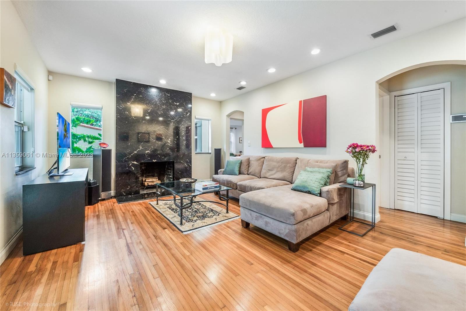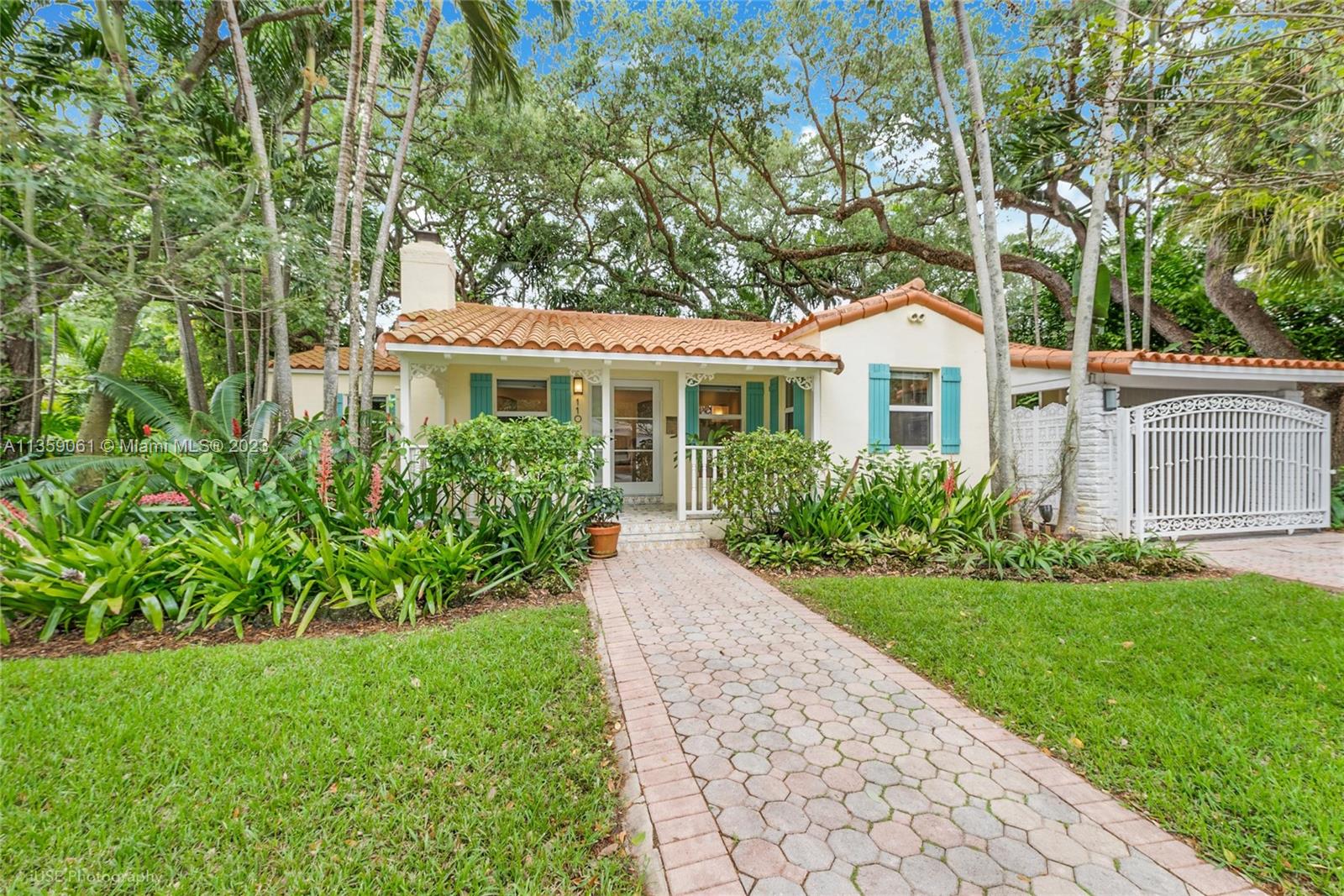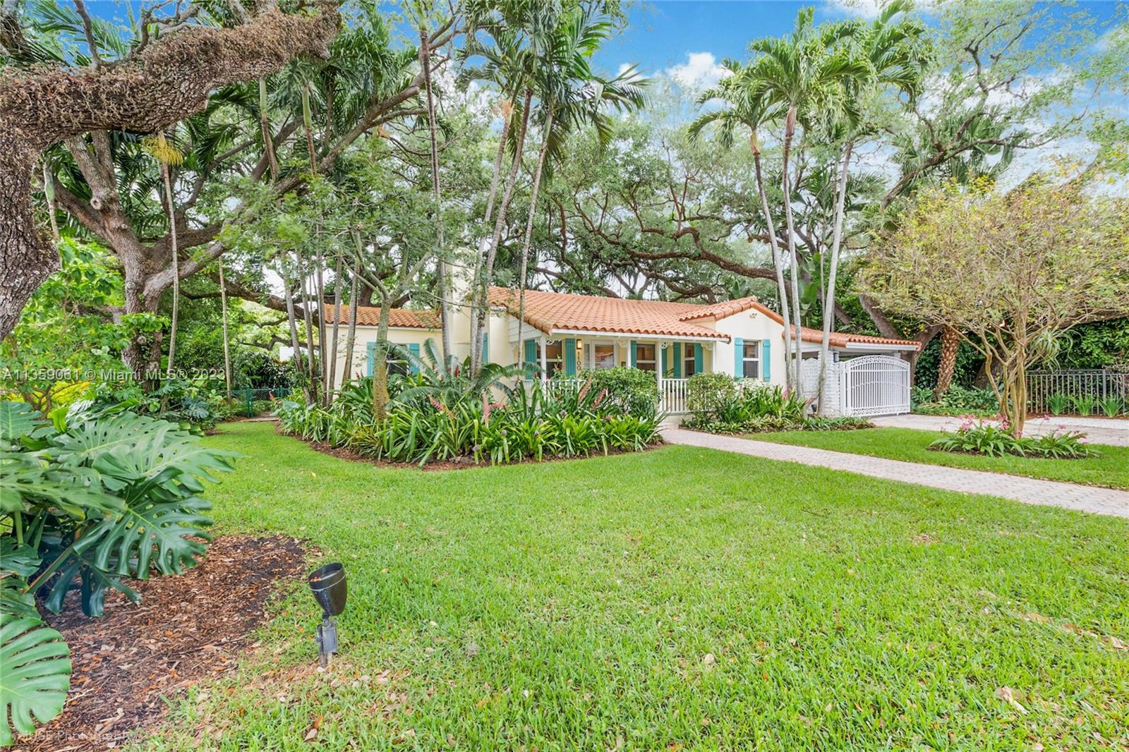 Coral Gables charm nestled on a magnificent landscaped paradise. Enter into the spacious living room with stunning floor to ceiling stone fireplace, private dining room and professional designed kitchen with top of the line appliances, cathedral ceiling and breakfast area. Large primary bedroom with an elegant marble spa like bathroom. screened in patio for dining, relaxing and escaping into a serene tropical garden with mature oaks, palms, lush tropical foliage and colorful orchids. The 9,845 SF lot offers opportunity to add a pool and new additions. Impact glass, porcelain and hardwood floors, Spanish tile roof 2019, gated carport, LED lights. Very quiet street walking distance to Granada golf course.Convenient to excellent Gables shops and restaurants, Brickell, downtown and airport.