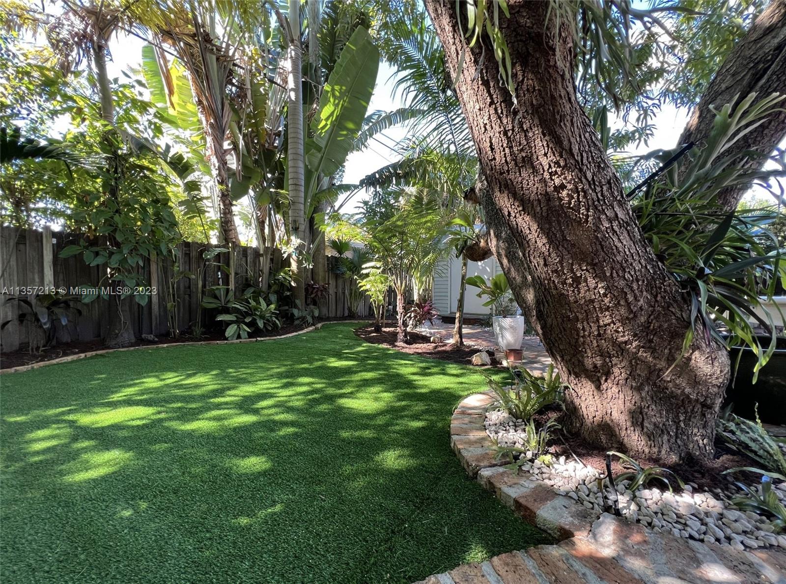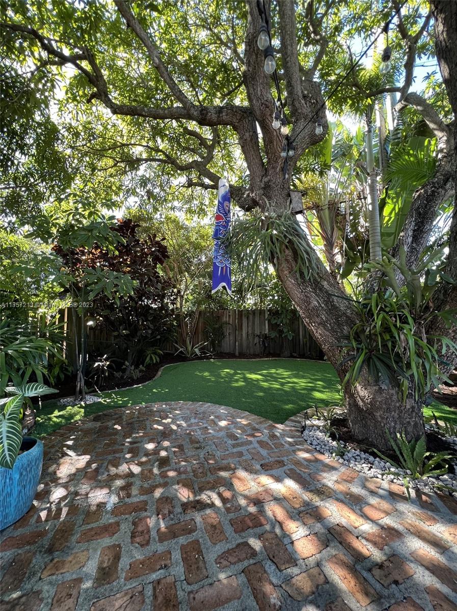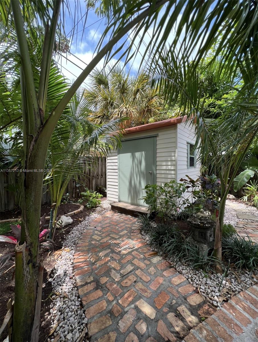Looking for a peaceful, naturesque garden home? You've found it! Aptly named "La Casita", this charming single family home has been renovated to highlight it's original features, but with a modern touch. Curved archways lead you to the bedrooms and dining room. Original wood floors span the open living and dining rooms. The green kitchen backsplash + refinished cabinets add to the home's character. The bathroom has been recently renovated - a fresh contrast to the rest of the home. Centrally located - minutes from everything! Enjoy a handpicked mango underneath the lush shade of the backyard, or within the screened-in porch. The red brick paved garden area perfectly suites the home's unique style. The artificial turf is perfect for playtime. Keep your outdoor toys in the matching shed.