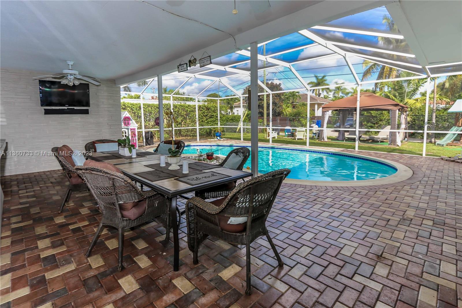 BEAUTIFUL & BRIGHT 3 BED, 2 BATH POOL HOME W/ 1 CG IN HOLLYWOOD! ENJOY THE GREAT OUTDOORS W/ A SPACIOUS FENCED IN YARD FOR PRIVACY, SALTWATER & ENCLOSED POOL, LARGE PAVED PATIO GREAT FOR ENTERTAINING, GAZEBO & STORAGE SHED. PLENTY OF SPACE FOR BOAT/RV ON SIDE. THE INTERIOR FTS A WELL APPOINTED KITCHEN HIGHLIGHTED BY SS APPLIANCES & WOOD CABINETRY FOLLOWED BY A FORMAL DINING ROOM, FAMILY ROOM, & LIVING ROOM. THE SPACIOUS OWNER’S SUITE PROVIDES OVERSIZED CLOSETS, & ENSUITE BATH W/ VANITY AREA, SHOWER & LINEN CLOSET. ADDTL FTS INCL IMPACT WINDOWS/DOORS, CROWN MOLDING, WOOD FLOORING, LAUNDRY ROOM, MURPHY BED IN 1 BEDROOM, UPDATED BATHS W/ MARBLE & CIRCULAR PAVED DRIVEWAY W/ AMPLE PARKING SPACE. LOCATED JUST MINS FROM THE BEACH, DWNTWN HOLLYWOOD, FTL AIRPORT, AVENTURA MALL, I95 & MORE!