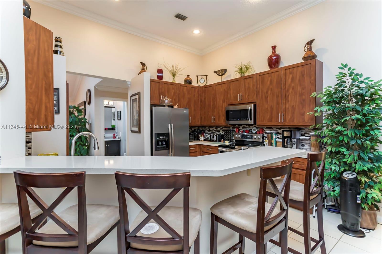 GORGEOUS ONE STORY HOME WITH FOUR BEDROOMS, THREE AND A HALF BATHROOMS IN THE MANNED GAURD GATED COMMUNITY OF NORTH LAKES IN WESTON! THE EXTERIOR OF THIS HOME FEATURES A **BRAND NEW ROOF** (2021), NEW GUTTERS, ACCORDION SHUTTERS, FENCED-IN BACKYARD, SCREEN ENCLOSED POOL AND COVERED SITTING AREA. THE INTERIOR OF THIS HOME FEATURES TILE FLOORING IN THE MAIN LIVING AREAS, PLANTATION SHUTTERS, VOLUME CEILINGS & CROWN MOLDING. THIS HOME IS A TRIPLE SPLIT FLOOR PLAN WITH AN OVERSIZED MASTER SUITE WITH SITTING AREA, AND RECENTLY UPGRADED MASTER BATHROOM, MODERN STYLE! THE OTHER BATHROOMS HAVE ALSO BEEN COMPLETELY UPGRADED MODERN STYLE! THE OPEN KITCHEN IS COMPLETE WITH UPGRADED COUNTERTOPS, WOOD CABINETRY & STAINLESS STEEL APPLIANCES.