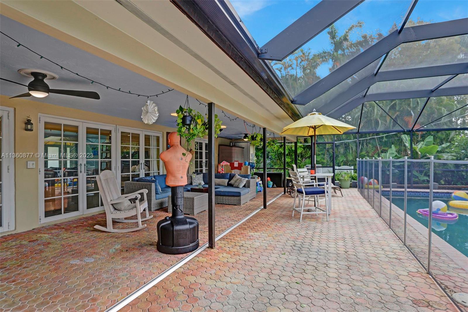BEAUTIFUL & BRIGHT 3 BED, 2.5 BATH POOL HOME W/OVERSIZED 1 CG IN HOLLYWOOD LAKES! ENJOY THE GREAT OUTDOORS W/ A SPACIOUS FENCED IN YARD FOR PRIVACY, SALTWATER & ENCLOSED HEATED POOL, COVERED PATIO GREAT FOR ENTERTAINING. THE INTERIOR FEATURES AN OPEN LAYOUT COMBINING DINING, LIVING, FLORIDA ROOM AND A WELL APPOINTED KITCHEN HIGHLIGHTED BY SS APPLIANCES, GRANITE COUNTERTOPS, AND MARBLE BACKSPLASH W/BAR SEATING. THE SPACIOUS OWNER’S SUITE PROVIDES OVERSIZED CLOSET W/BUILT INS & ENSUITE BATH W/ SHOWER, GLASS DOOR ENCLOSURE, GLASS VANITY W/ MOSAIC TILE BACKSPLASH. RECESSED LIGHTING, CROWN MOLDING. DRIVEWAY IN THE BACK W/SLIDING GATE. BEAUTIFUL CURB APPEAL W/ AVOCADO, MANGO, BANANA TREES, & COCO PALMS. ROOF 2018, A/C 2022, POOL HEATER 2020, WASHER, DRYER, REFRIGERATOR 2022, WATERHEATER 2017
