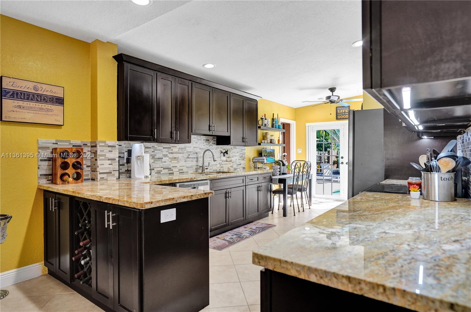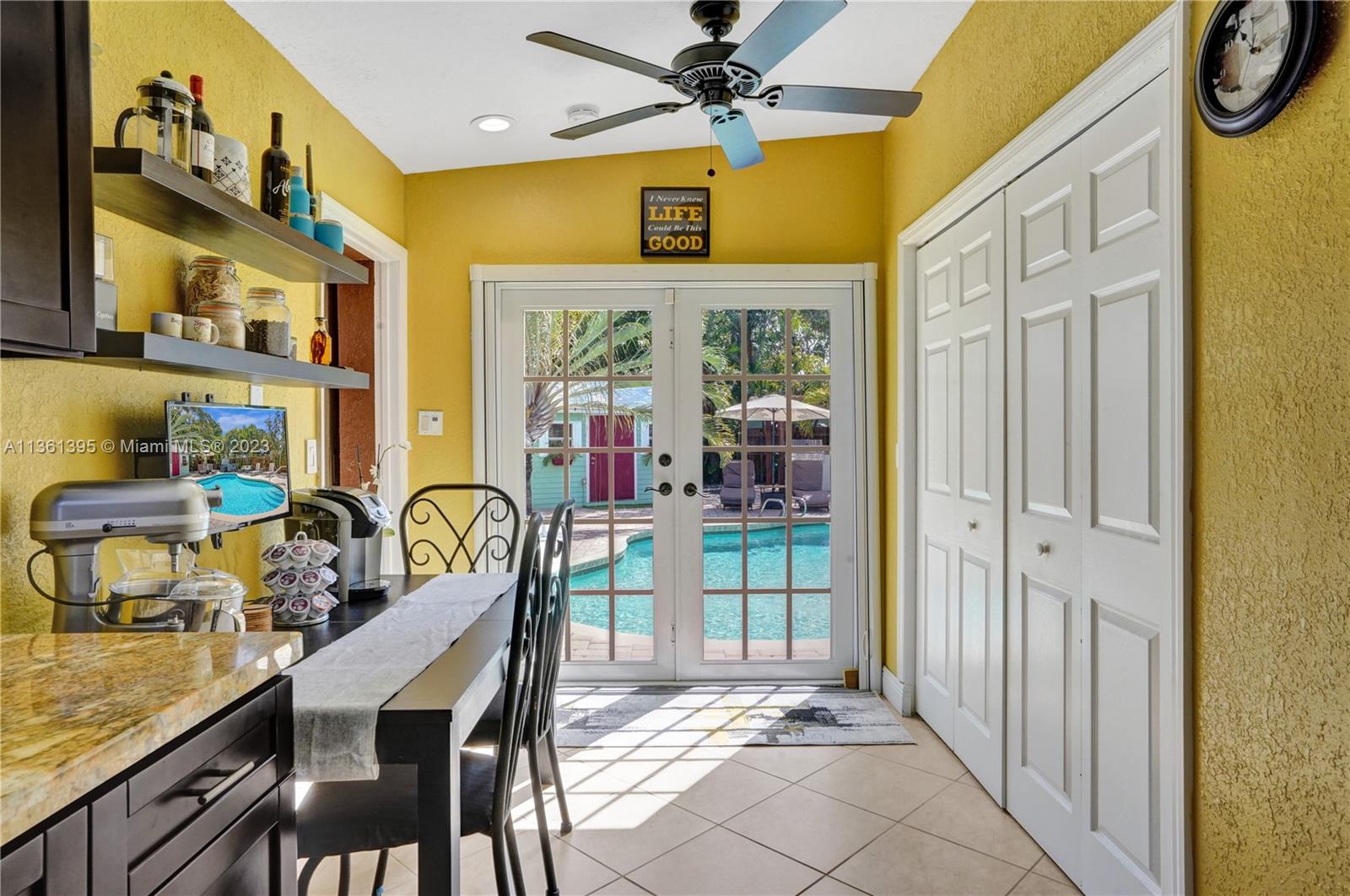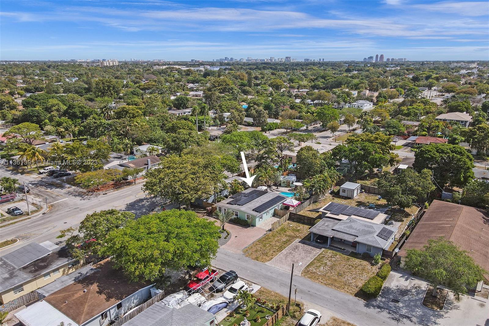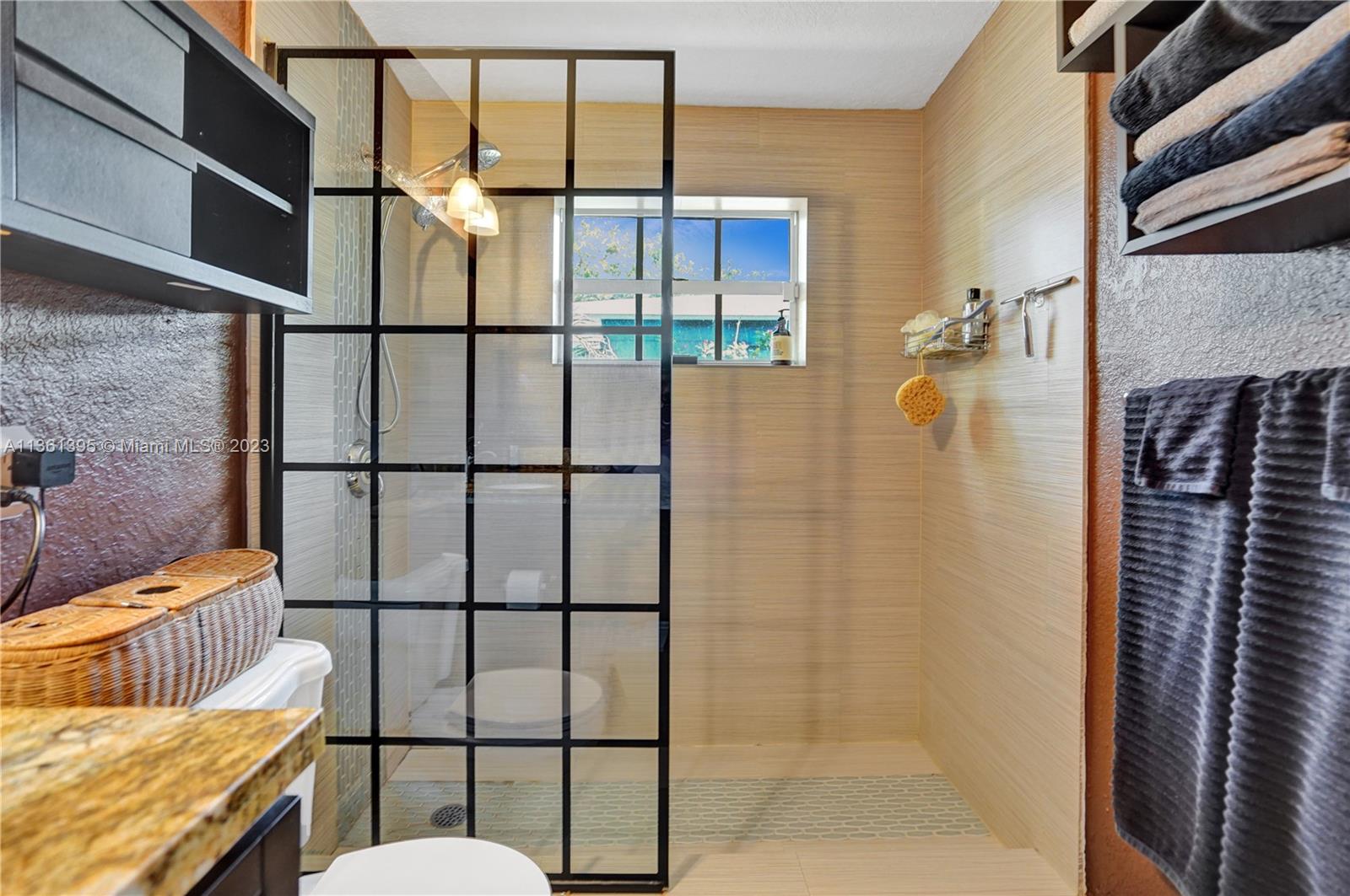 Live or Air B & B the Florida dream in this beautifully renovated 3/2 Pool Home plus cottage. This one has it all: 3 bedrooms 2 baths plus cottage, open plan, stunning updated kitchen and baths, large pool with heater and chiller, Hot Springs Spa, impact windows & doors & accordion panels, Tropical Kitchen, roof top whole house solar panels, car charging station, on demand tankless hot water, low maintenance tropical rock garden, 7 car parking. Open flexible living space and chef’s kitchen with stainless steel appliances and granite counters. The split bedroom plan ensures privacy for the primary bedroom. French doors from the Primary bedroom, main living, and guest bedroom lead to the garden oasis where you will splash, soak, relax, barbecue and dine amongst exotic palms and fruit trees.