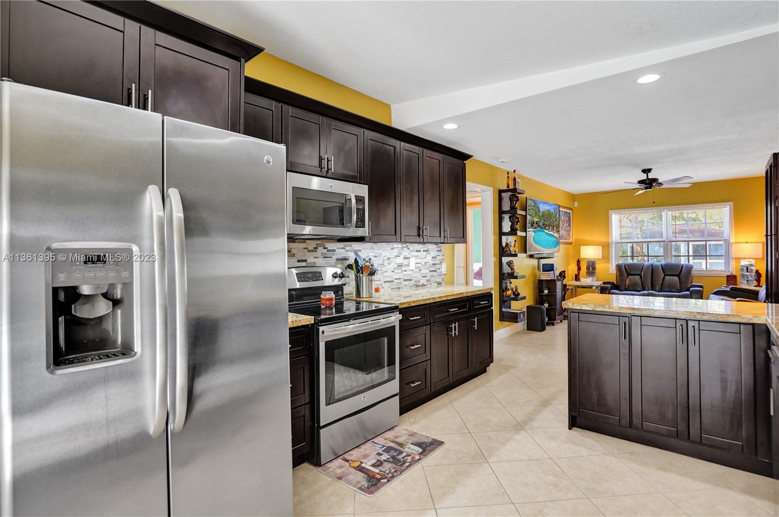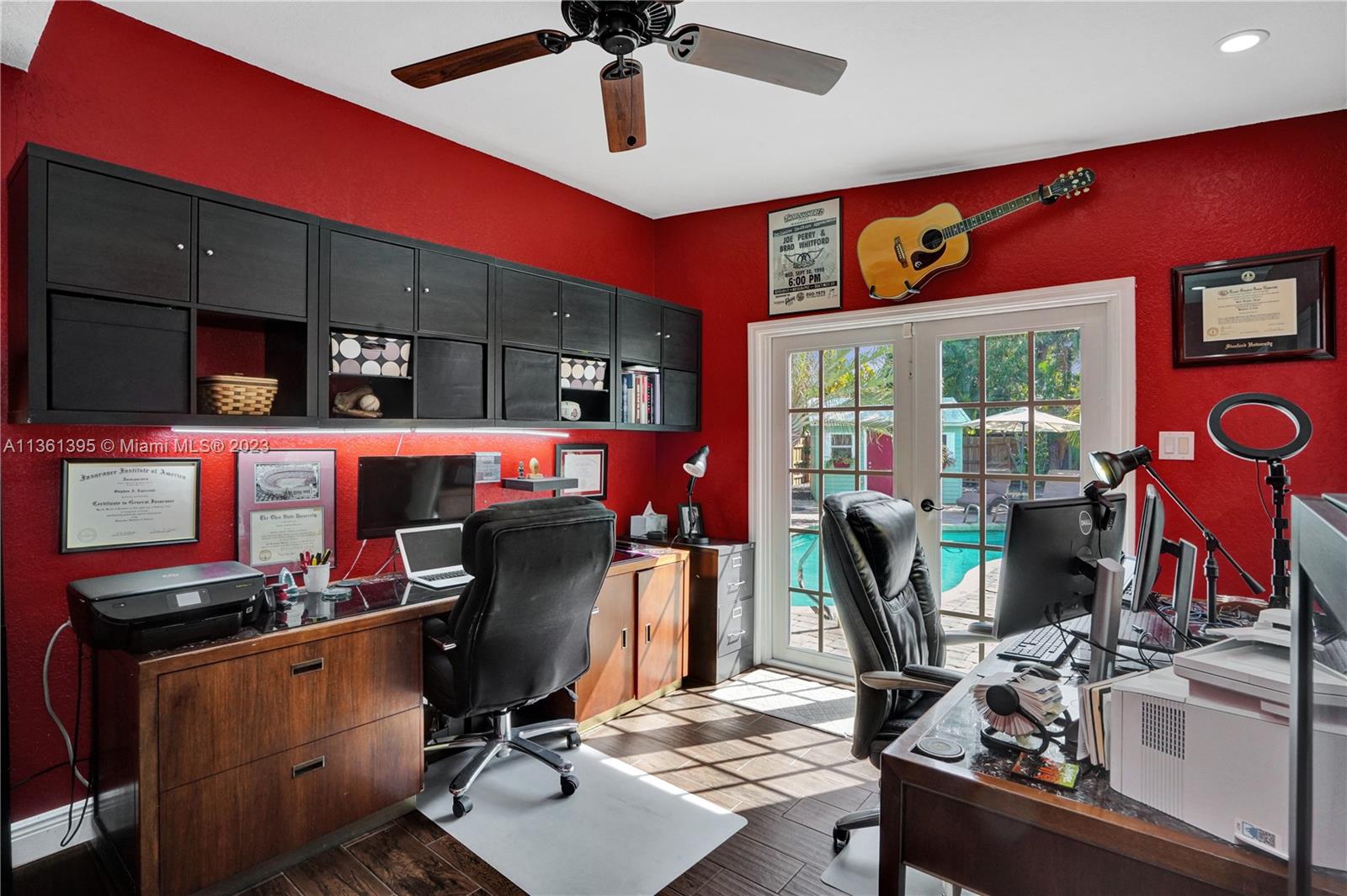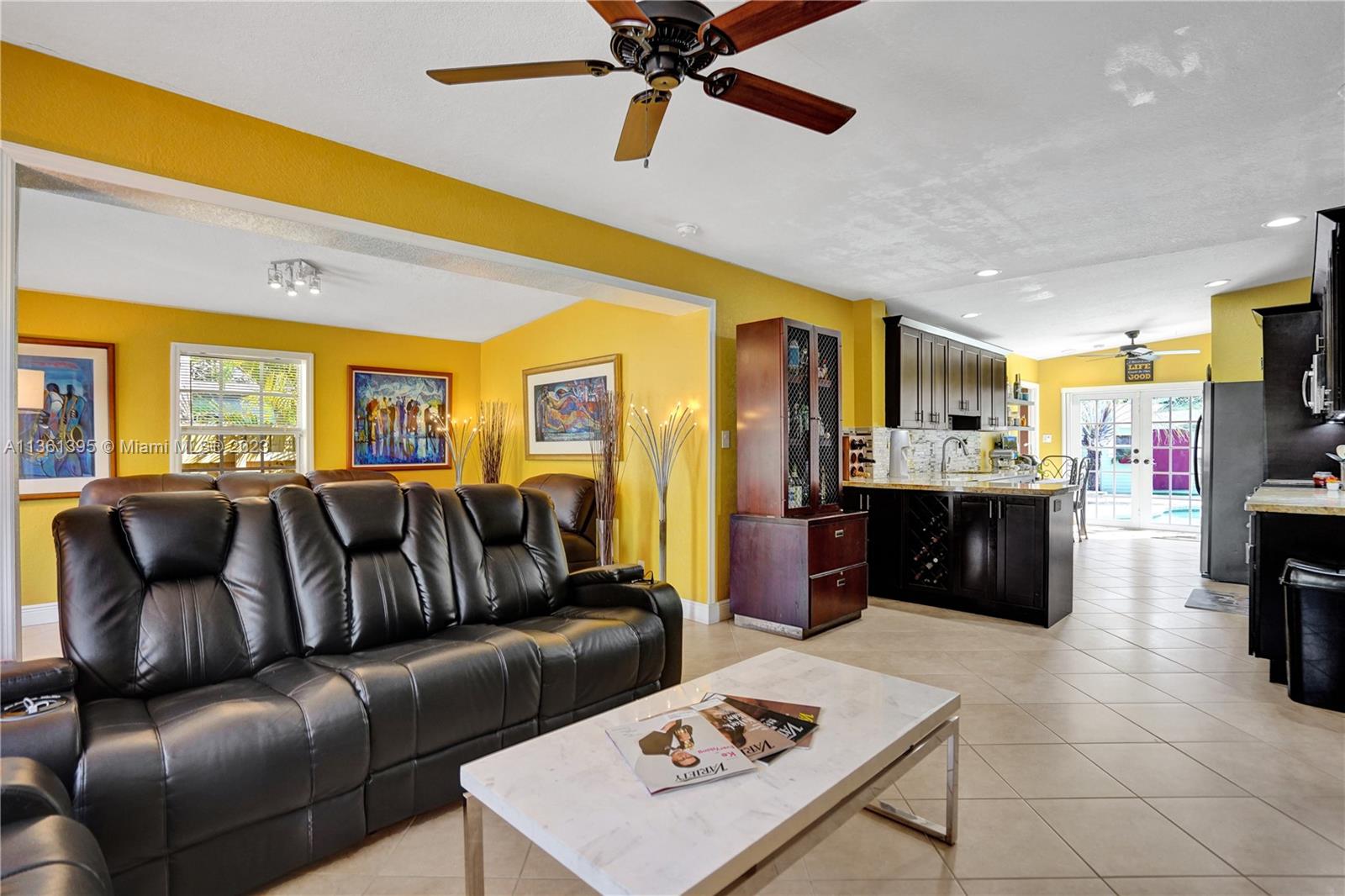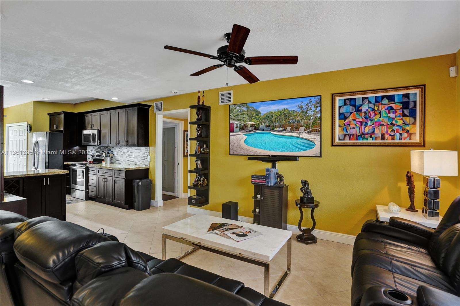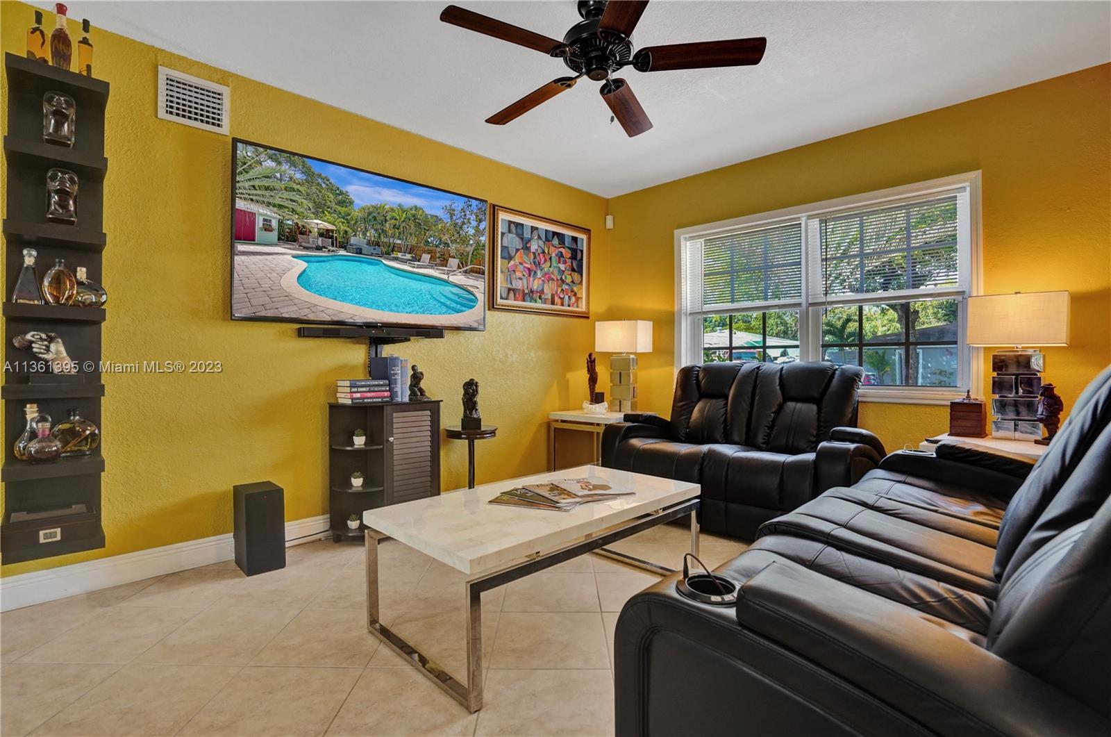 Live or Air B & B the Florida dream in this beautifully renovated 3/2 Pool Home plus cottage. This one has it all: 3 bedrooms 2 baths plus cottage, open plan, stunning updated kitchen and baths, large pool with heater and chiller, Hot Springs Spa, impact windows & doors & accordion panels, Tropical Kitchen, roof top whole house solar panels, car charging station, on demand tankless hot water, low maintenance tropical rock garden, 7 car parking. Open flexible living space and chef’s kitchen with stainless steel appliances and granite counters. The split bedroom plan ensures privacy for the primary bedroom. French doors from the Primary bedroom, main living, and guest bedroom lead to the garden oasis where you will splash, soak, relax, barbecue and dine amongst exotic palms and fruit trees.