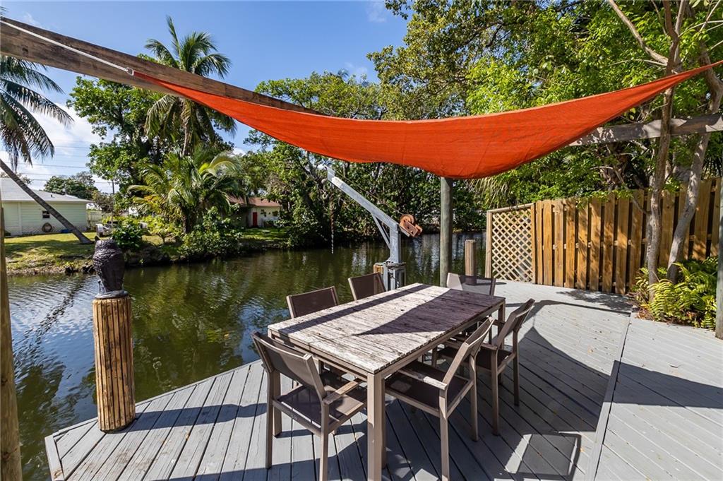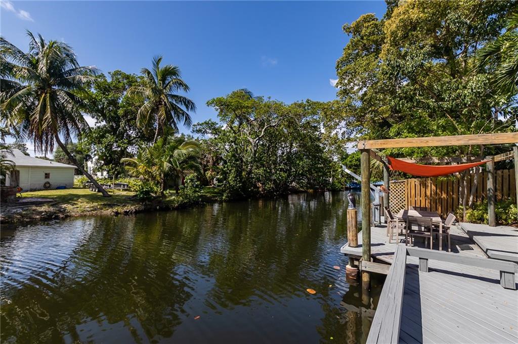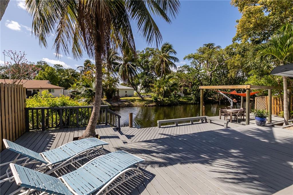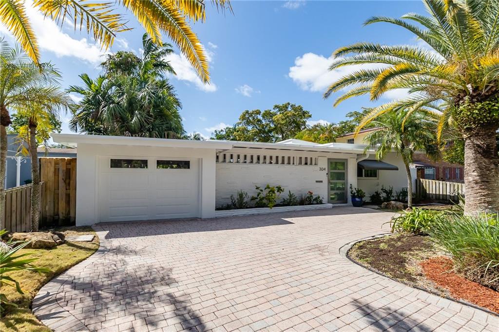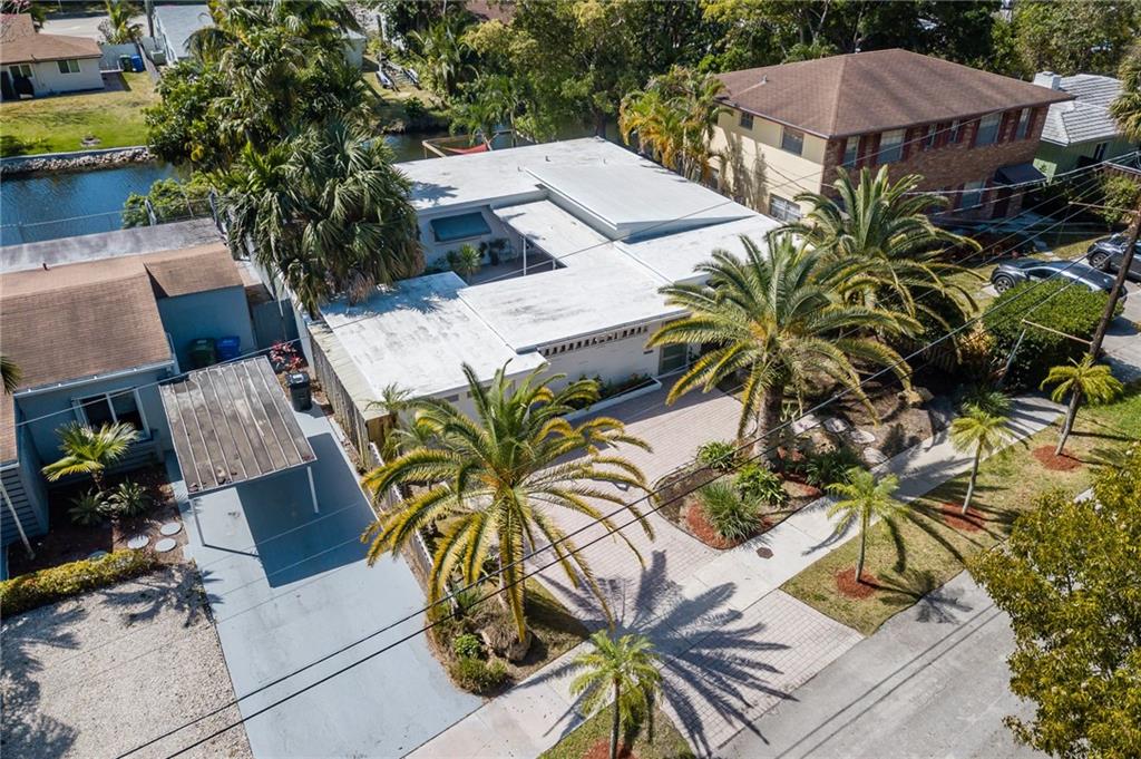 Beautiful, unique waterfront Mid-Century Modern home w/ tremendous curb appeal in Croissant Pk. Enter through the private courtyard w/ lots of covered space allowing for al Fresco dining & entertaining. The living area features vaulted ceilings, wood beams & a wall of windows w/ lots of natural light. Gorgeous terrazzo flooring throughout, both baths updated, kitchen w/ granite countertops, stainless appliances & pass-through to the dining area. 50' of ocean access waterfront, dock, wood deck & impact windows all situated on a lushly landscaped lot. Croissant Pk is in a great location that is close to literally everything. Less than 3 mi to the Ocean, 2 mi to Las Olas Night Life Dining & Shopping. Quick access to 95 / 595 for commutes & under 10 min to FLL Airport. Several Fixed Bridges