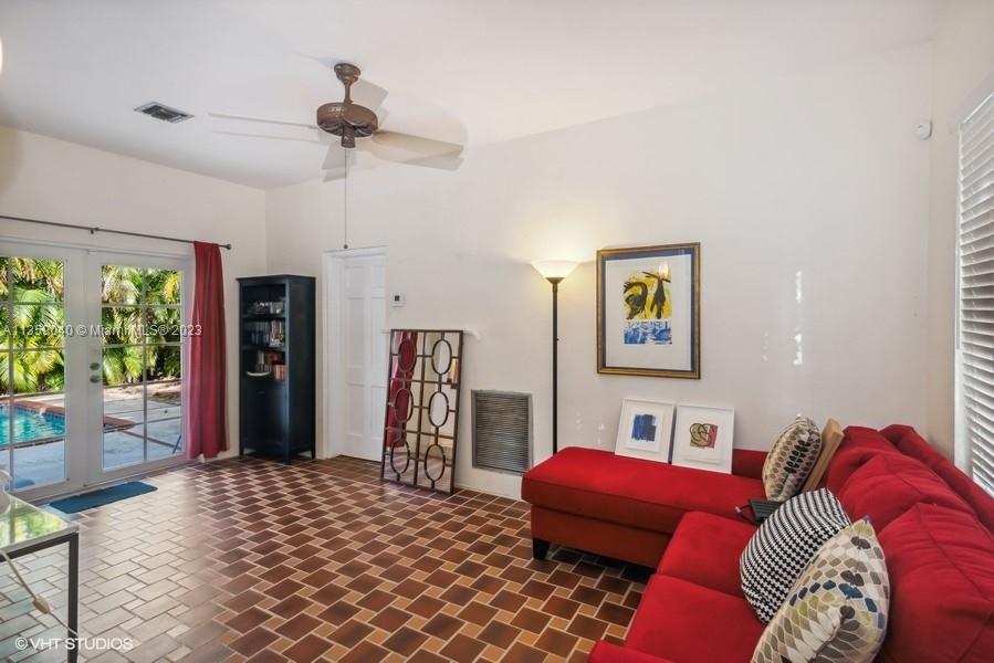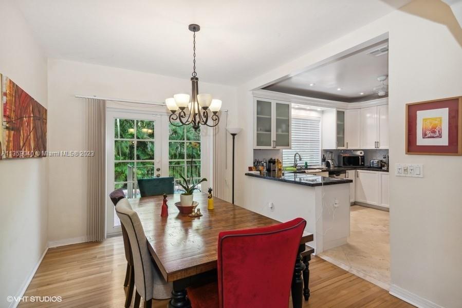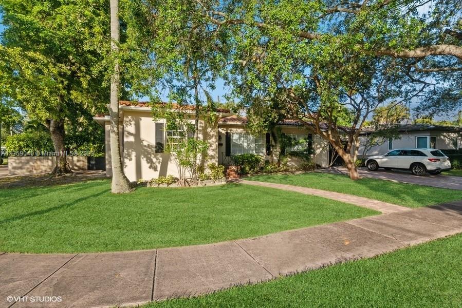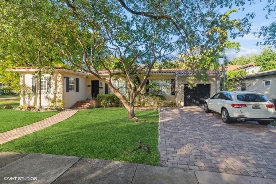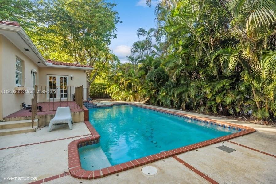Beautifully updated Coral Gables home on very peaceful street. Light and bright with hard wood and saturnia marble floors. Impact windows bringing in natural light. White wood cabinets in kitchen with granite counters and stainless steel appliances. Great space for cooking. All bathrooms remodeled. Gorgeous new Chicago brick walkway and driveway. Inground pool with quite fenced backyard. 3 bedrooms, 2 bathrooms. 1 Car-garage. New Barrel tile roof in 2019.