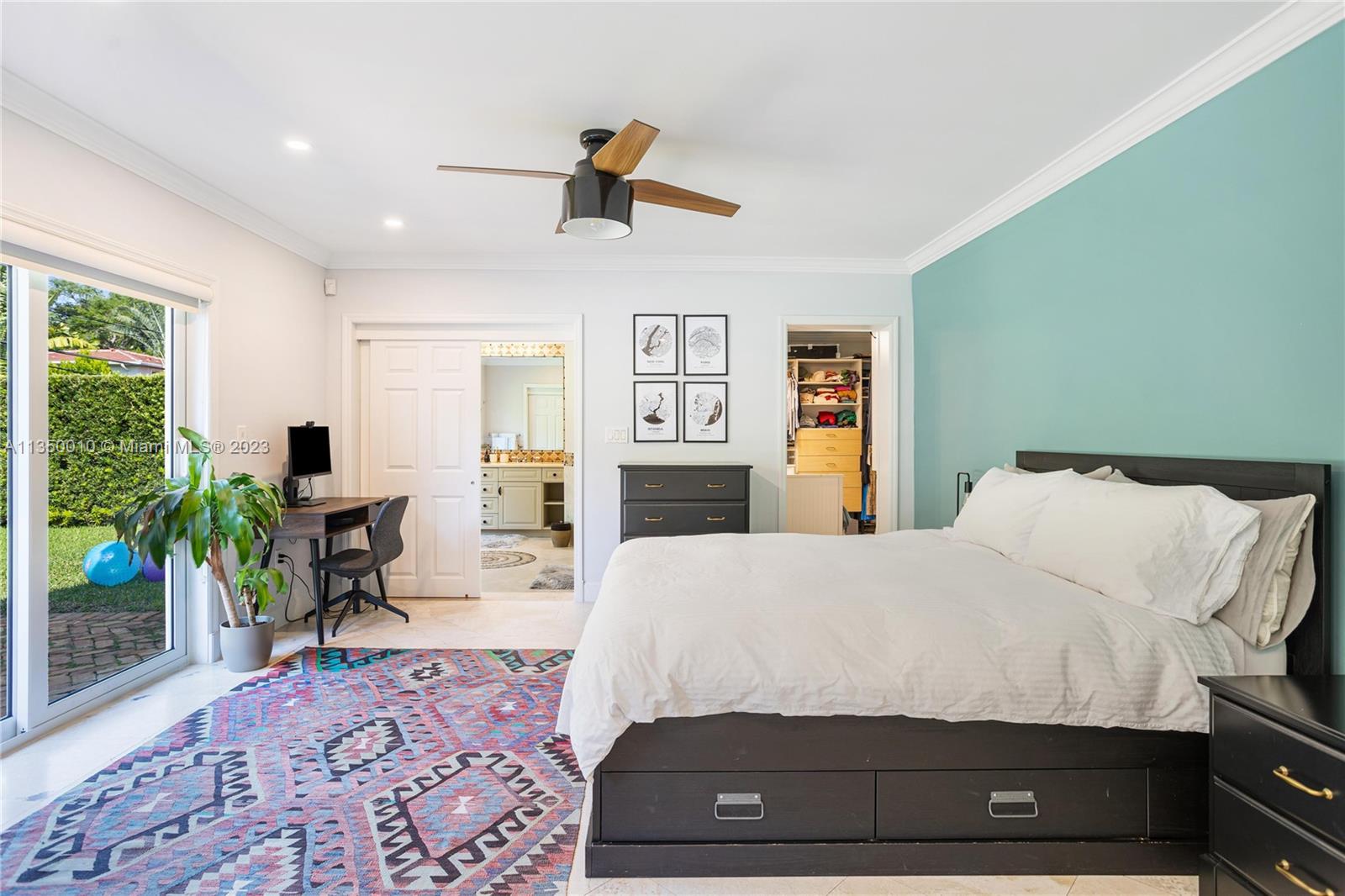 This updated South Gables house is a great opportunity to live in one of the most desired neighborhoods. With 2,732 sqft, it features a versatile open layout with a dining area, living room, office space, and family room/breakfast area overlooking the spacious backyard. The 11,000 sqft lot is perfect for entertaining with a heated pool/spa surrounded by a lush landscape for privacy and tranquility. 3 bedrooms, including an impressive master suite with a large closet with window (used to be a 4th bedroom) and master bath with a tub and glassed-in corner shower. The updated kitchen has a center island and ample storage. The house has new impact windows, interior wood shutters, electric car charger, generator. Located near the best schools and minutes from the heart of Coconut Grove.