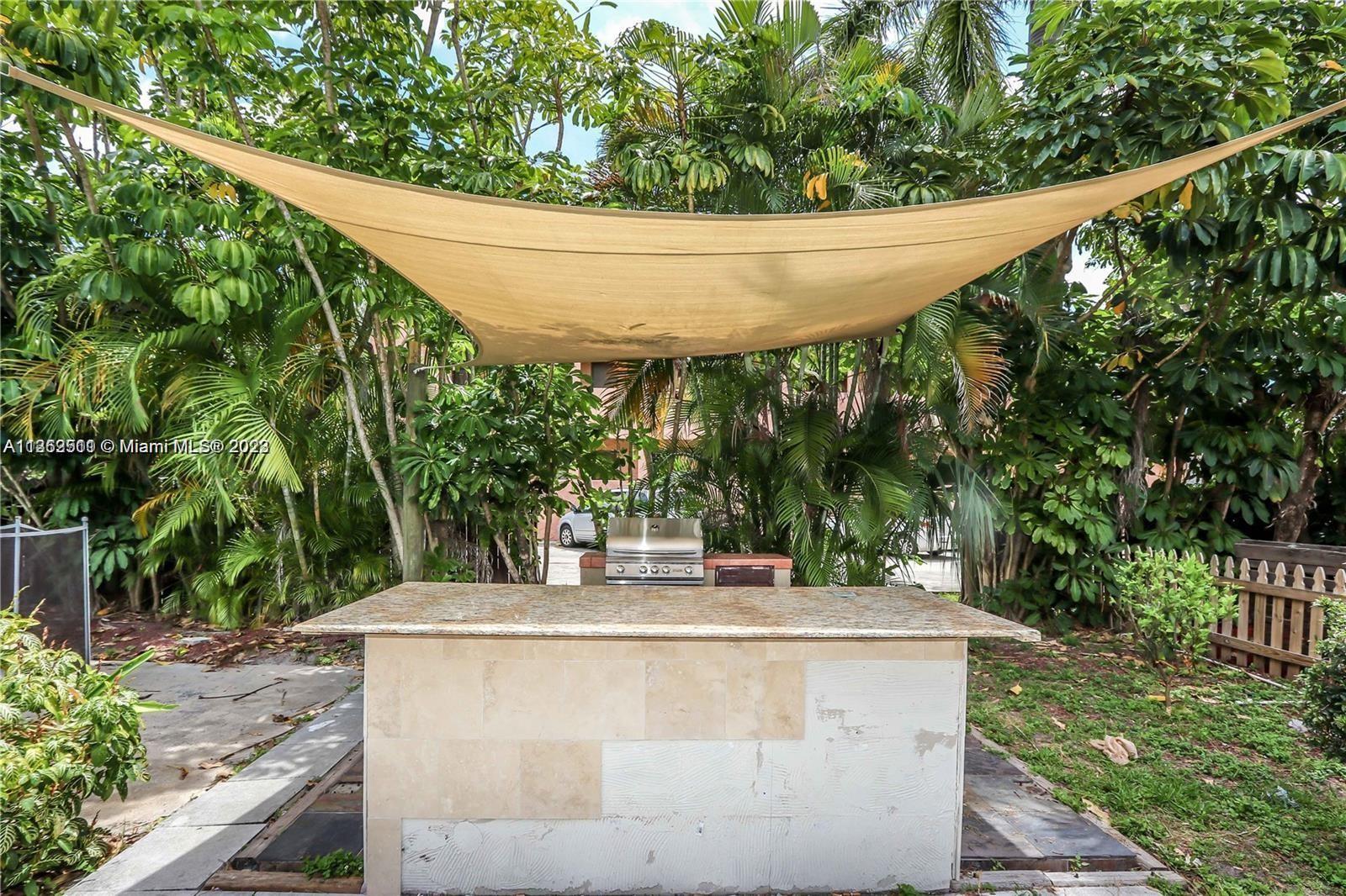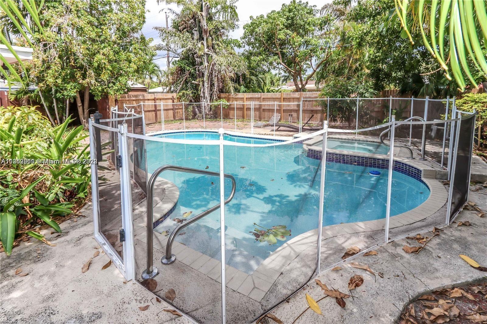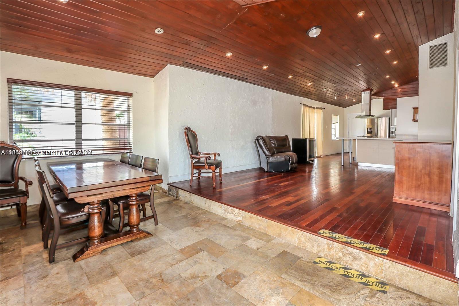 This 4 bed 3 bath home is on a double lot in a quiet neighborhood. It features exposed wood ceilings with recessed lighting. The kitchen is equipped with a hooded counter top gas stove and stainless steel appliances. Large bedrooms with updated bathrooms. The yard is fenced in with a pool and outdoor kitchen. There is plenty of room to park an RV or Boat. Please see Broker’s remarks for showing instructions