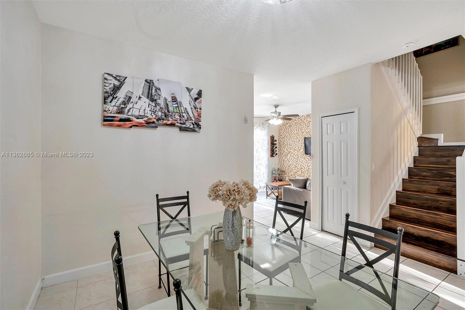 Doral townhome is the perfect place to call home. With 3 bed and 2 and half bath, this townhome offers plenty of space for you and your family. The one-car garage provides convenient and secure parking, and the private backyard offers a peaceful retreat .Inside, the townhome features a spacious living area, perfect for relaxing or entertaining guests. The kitchen is equipped with modern new appliances. The bedrooms are generously sized, providing ample space for rest and relaxation. Located in Doral, this townhome offers easy access to all the best that the area has to offer. From world-class dining and shopping to beautiful parks and green spaces, plus great schools nearby. Family oriented and great place to be .Accordion shutters , tiled first floor , laminate 2nd , matching cabinets.