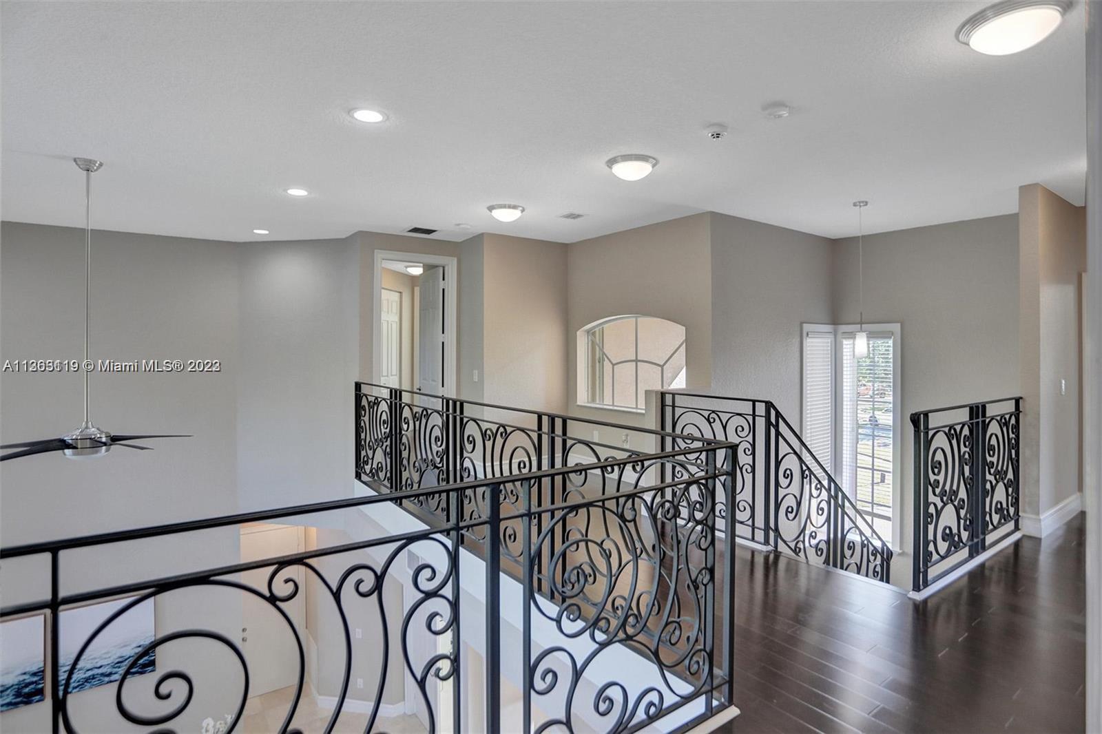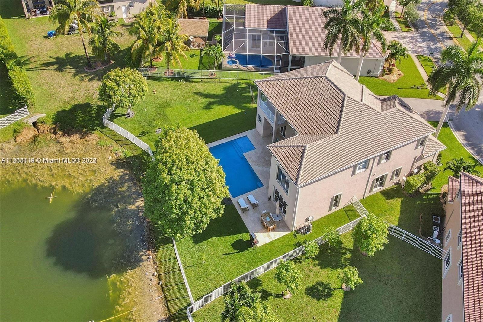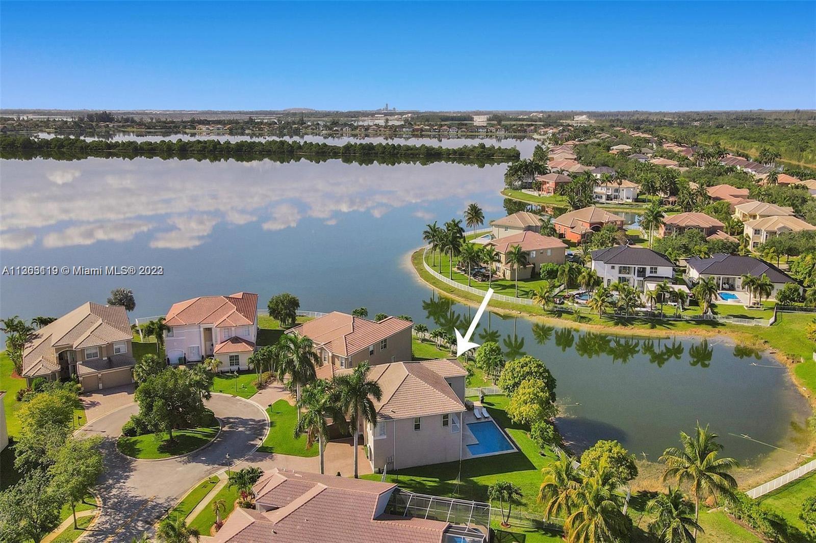 Gorgeous 2-story, newly built pool on a cul-de-sac w/ breathtaking lake views.Drive up the invitingly long driveway towards the exclusive estate on an oversized lot w/ 3-car garage.This home creates a stunning first impression.Wrought iron double doors welcome you into a remodeled open floor plan with Crema Marfil marble floors throughout the downstairs and dark bamboo floors upstairs.The gourmet kitchen with double ovens and upgraded cabinets & formal dining room with a butler's pantry present the perfect opportunity for entertaining.Primary bedr suite with private balcony on 2nd floor & 3 additional bdms upstairs 1 full bed/cabana bath on ground floor plus a BONUS room that can be used as an office or bedroom. Accordian shutters throughout.Resort-style gated community w/amazing amenities