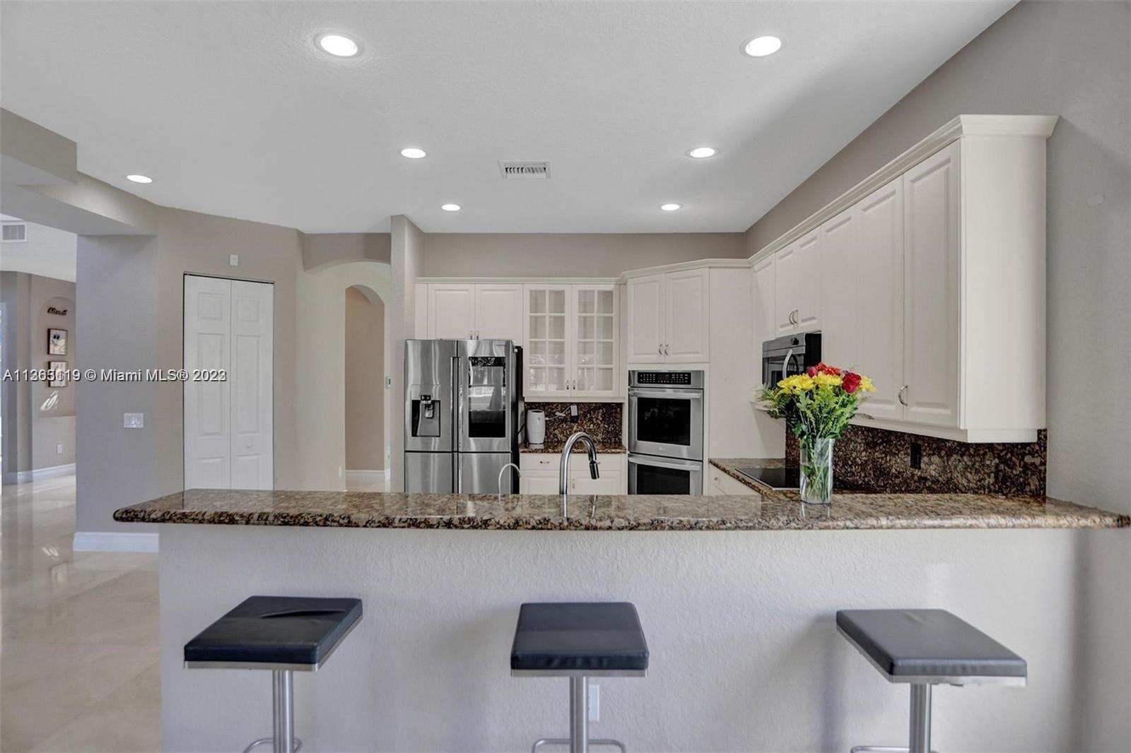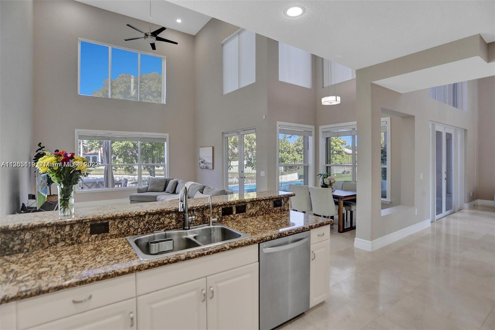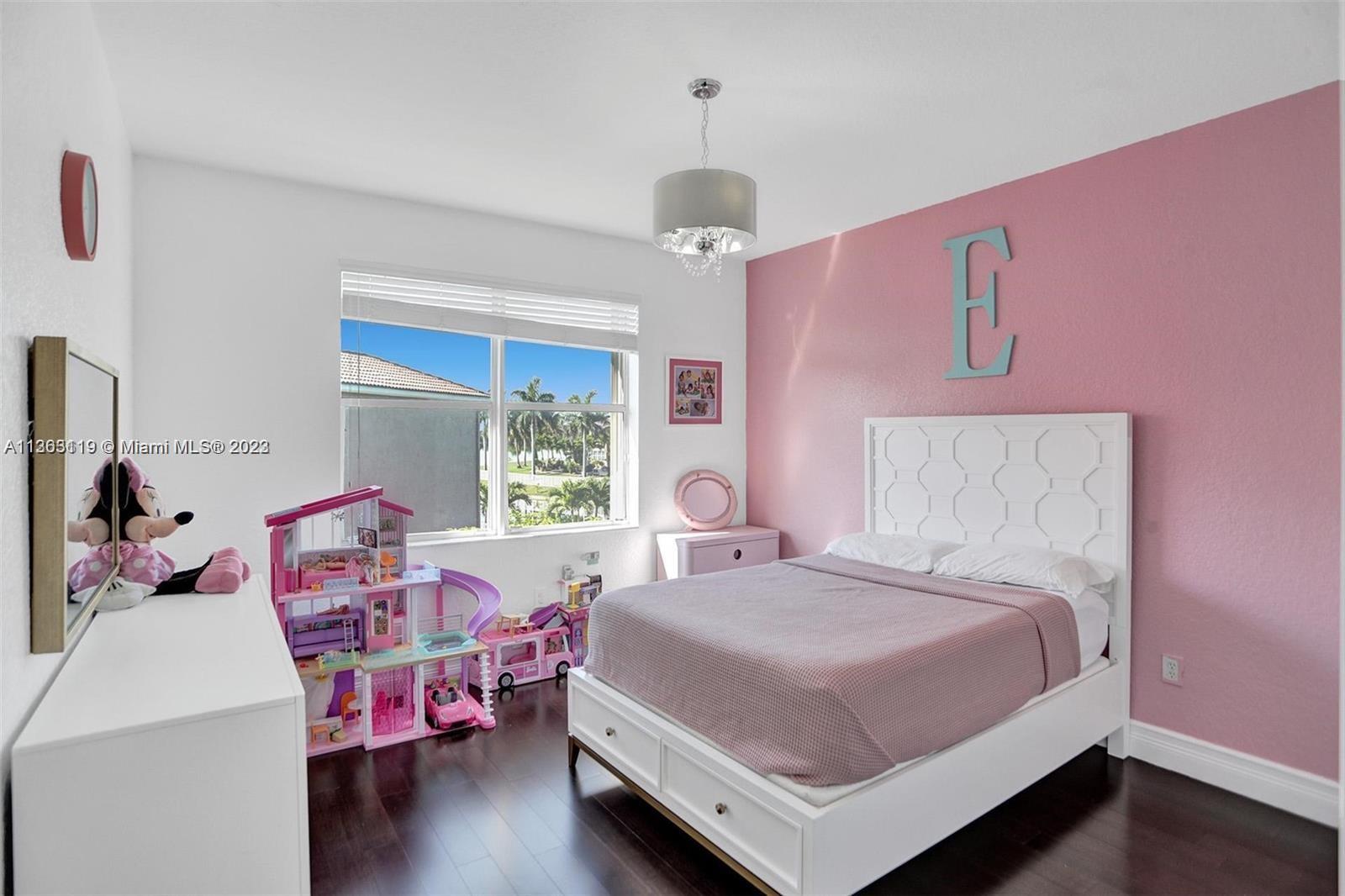 Gorgeous 2-story, newly built pool on a cul-de-sac w/ breathtaking lake views.Drive up the invitingly long driveway towards the exclusive estate on an oversized lot w/ 3-car garage.This home creates a stunning first impression.Wrought iron double doors welcome you into a remodeled open floor plan with Crema Marfil marble floors throughout the downstairs and dark bamboo floors upstairs.The gourmet kitchen with double ovens and upgraded cabinets & formal dining room with a butler's pantry present the perfect opportunity for entertaining.Primary bedr suite with private balcony on 2nd floor & 3 additional bdms upstairs 1 full bed/cabana bath on ground floor plus a BONUS room that can be used as an office or bedroom. Accordian shutters throughout.Resort-style gated community w/amazing amenities