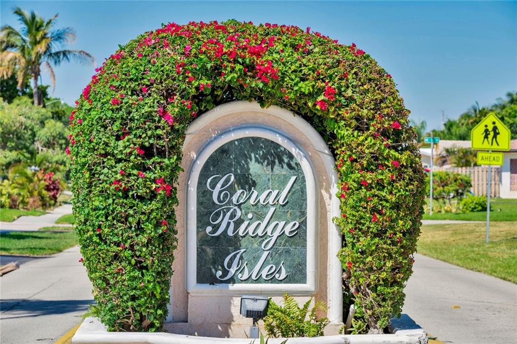 Come tour this roomy 3bed/2.5bath corner townhouse in NE Fort Lauderdale Coral Ridge Isles area! Large eat-in kitchen with pantry space and large open living and dining area. Enjoy a private screened in porch that opens to a pleasant green space. Upstairs you'll find a large primary suite with roomy bath and large walk-in closet plus a private balcony space and additionally two bedrooms with shared bath. Close to beaches and main arteries too. Centrally located makes this a great opportunity.