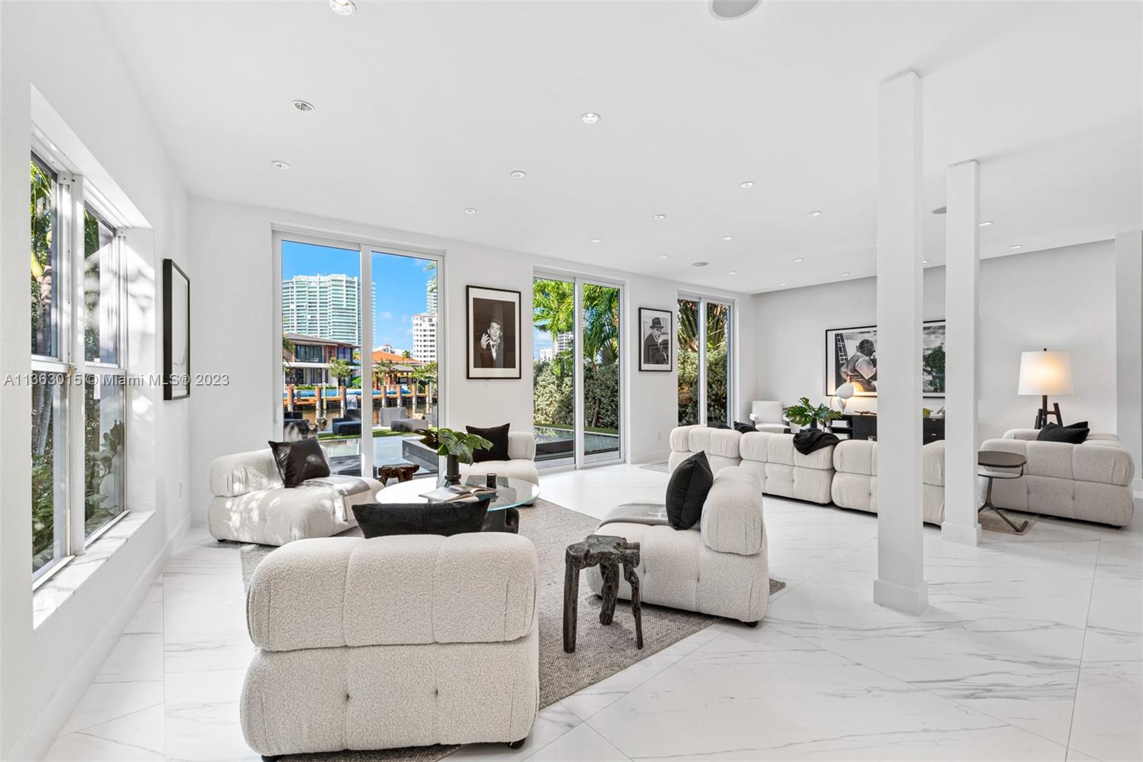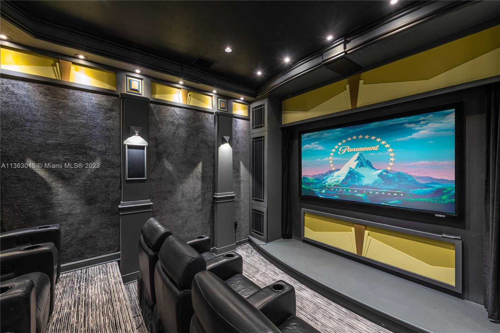 Stunning turnkey waterfront renovation by Artek Design Corp in the one and only Golden Beach. This spectacular 5 bedroom 6 bathroom contemporary palace has been increased in size to approximately 6500 sq ft under A/C with a brand new master suite (bedroom, sitting area, oversized bathroom and closet). Invite family and friends over to enjoy the newly renovated kitchen and dining spaces or to watch movies in your custom movie theater. Take meetings in your home office or enjoy a cup of coffee on one of the terraces overlooking the water in the back or your private park in the front. Unique location on South Parkway, across from one of the neighborhood's green parks and walking distance to the neighborhood's private beach, tennis courts, and recreational parks. This is the Golden Beach dream