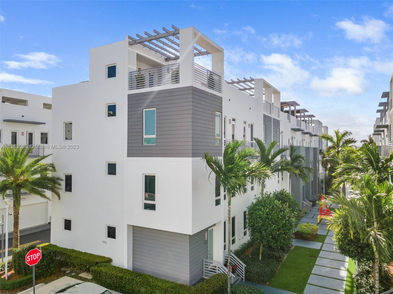 New gated community in Doral built in 2017, exclusively only 44 units in the complex with LOW HOA. Stunning 3 story townhouse with a rooftop terrace that includes an outdoor kitchen, 4bd/3.5, features 1 bedroom on the main entrance floor. High ceilings, open kitchen, stainless steel appliances and dining space on the 2nd floor. On the 3rd floor you will find 3 bedrooms/2 full bathrooms, large master with walk in closet and a stand alone tub+shower. Enjoy the rooftop amazing MIAMI SUNSET/SUNRISE VIEWS.Excellent location near to everything, at the west side is located the U.S Southern Command and at the south side across the street from Doral's newest largest park, DORAL CENTRAL PARK (currently under construction) Do not miss out on this opportunity!