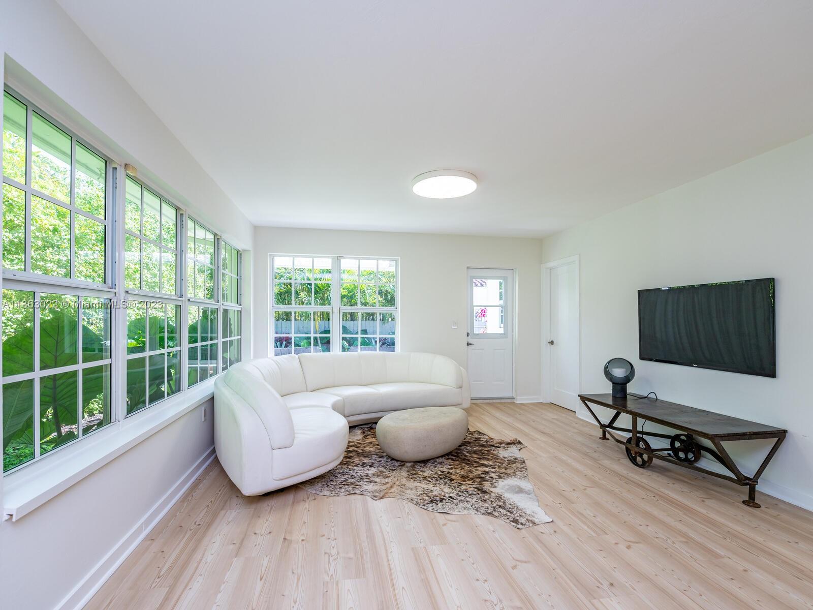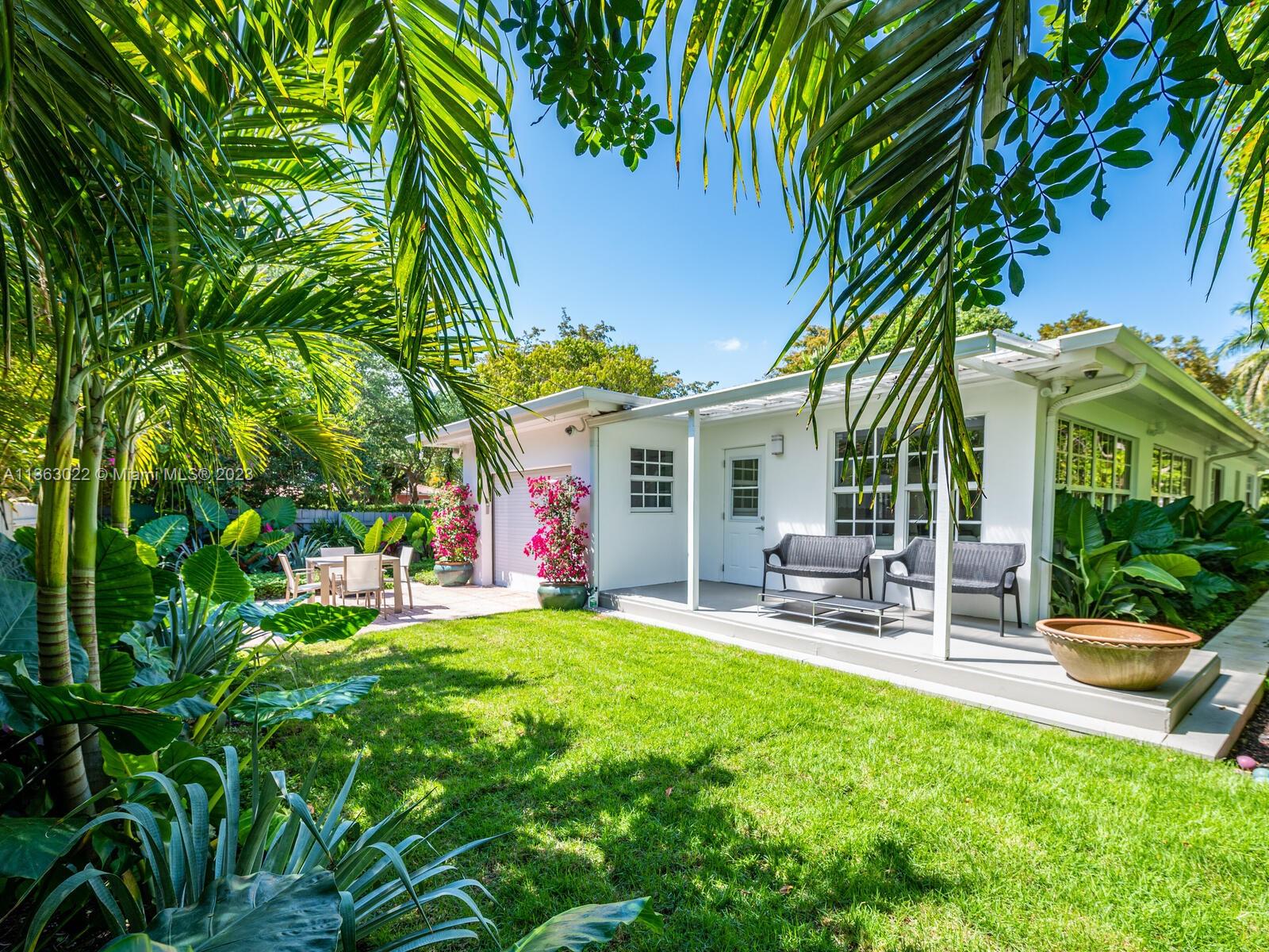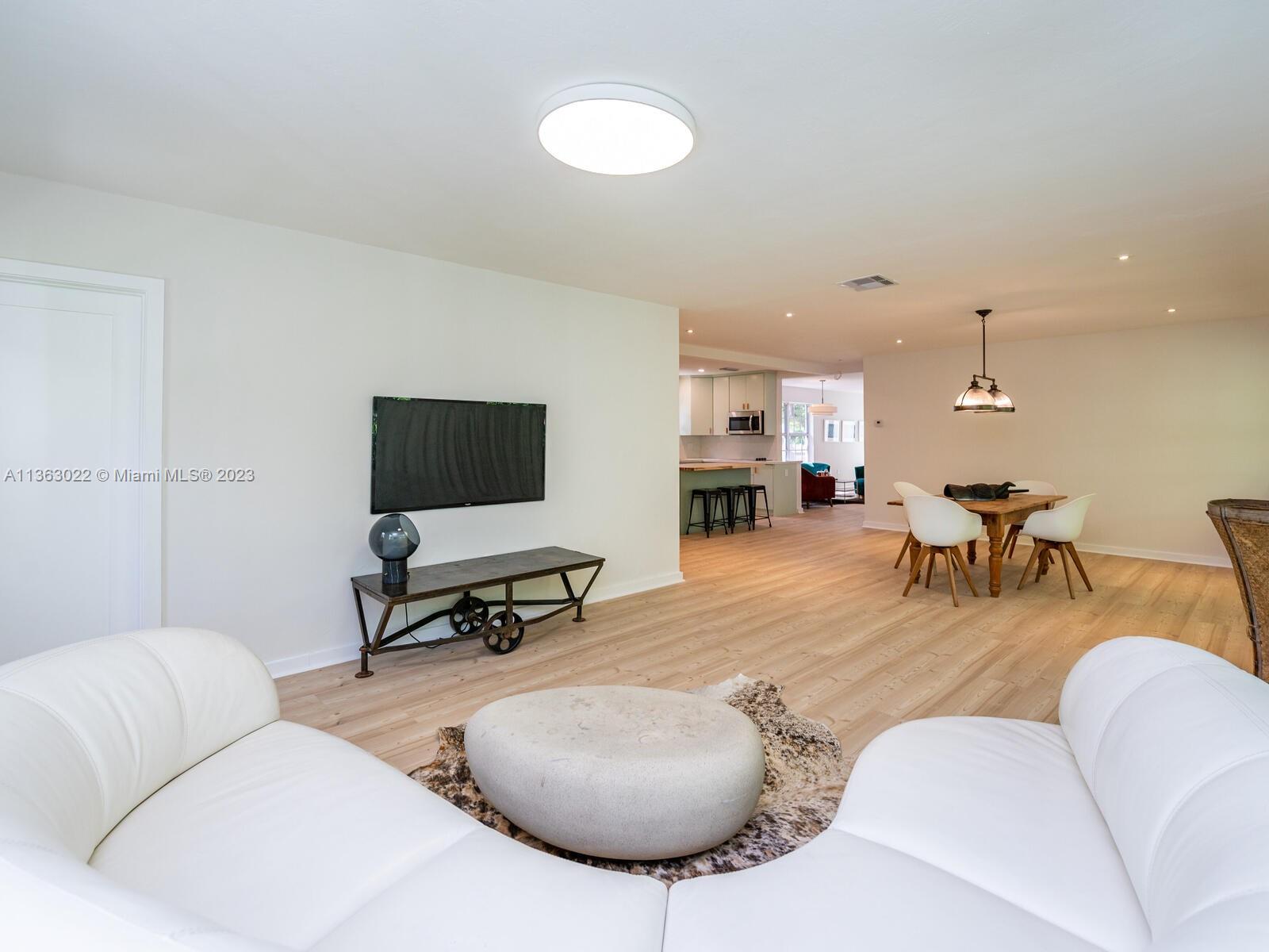 You just found your dream home in a tropical paradise in Miami Shores! Walking distance to shops & entertainment. Permitted garage conversion into 3 bed/3 bath + storage area (with a roll up garage metal door & entry pad), Spacious entrance, living, dining & TV rooms. New open plan kitchen with quartz countertops, butcher-block top island & SS appliances. Permitted plumbing & electric (2023), tile roof (2020). Seamless aluminum gutters. High quality wood-laminate water-resistant floors. Fully fitted closets & modern fans. Impact resistant windows. New single pane front door with single pane side panels. Central AC (2018). 3rd bed & bath add approx 250 sqft to the tax roll (2,000 sqft approx per seller). Wood fence. Uncovered parking in front and back. New digital 4-zone sprinkler system.