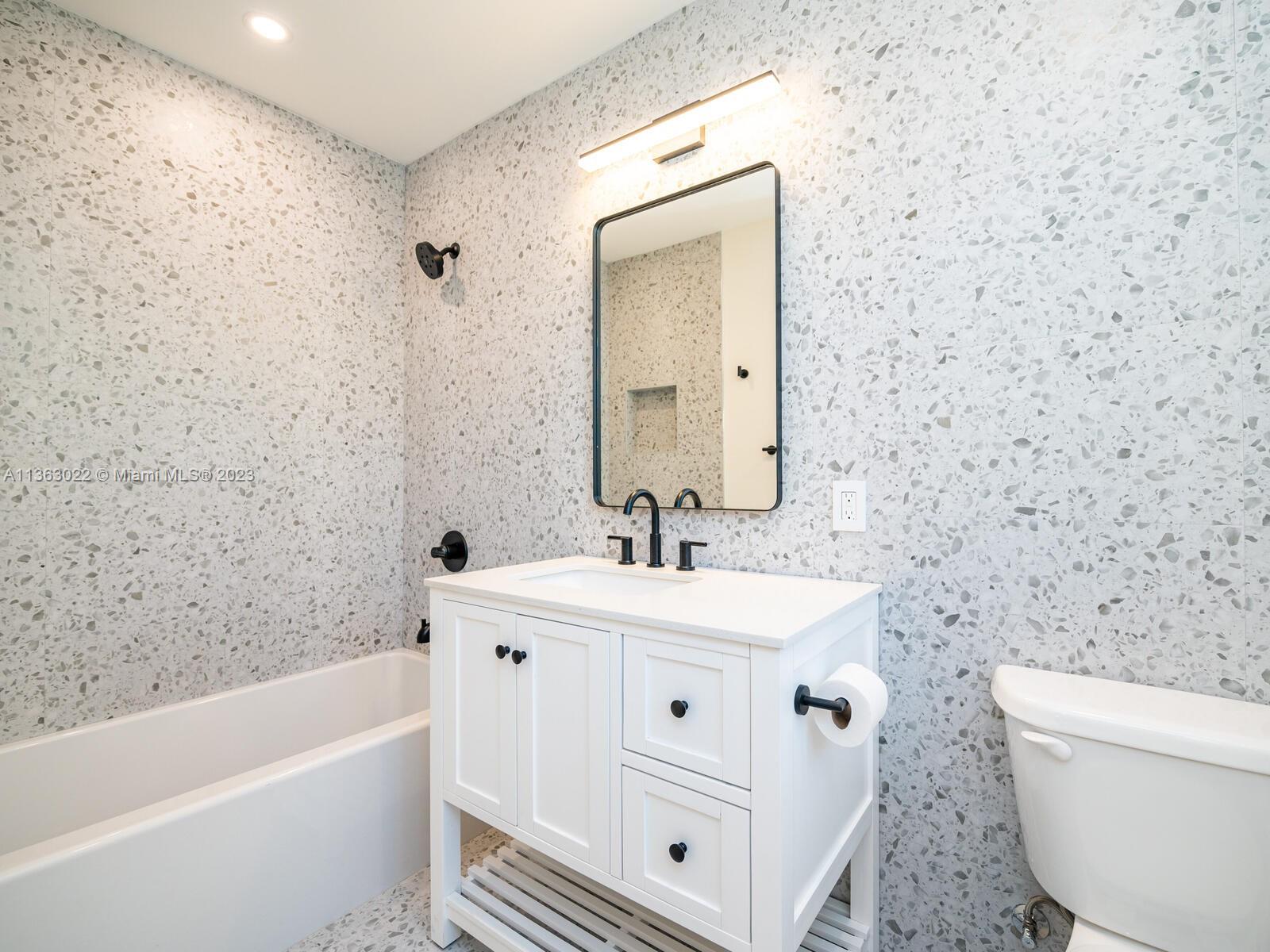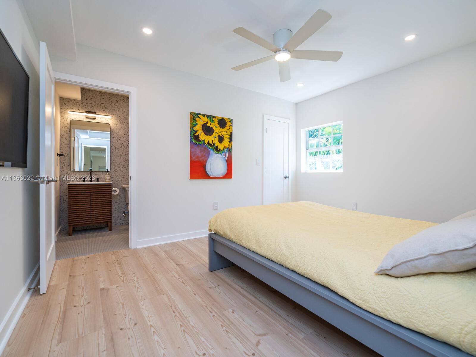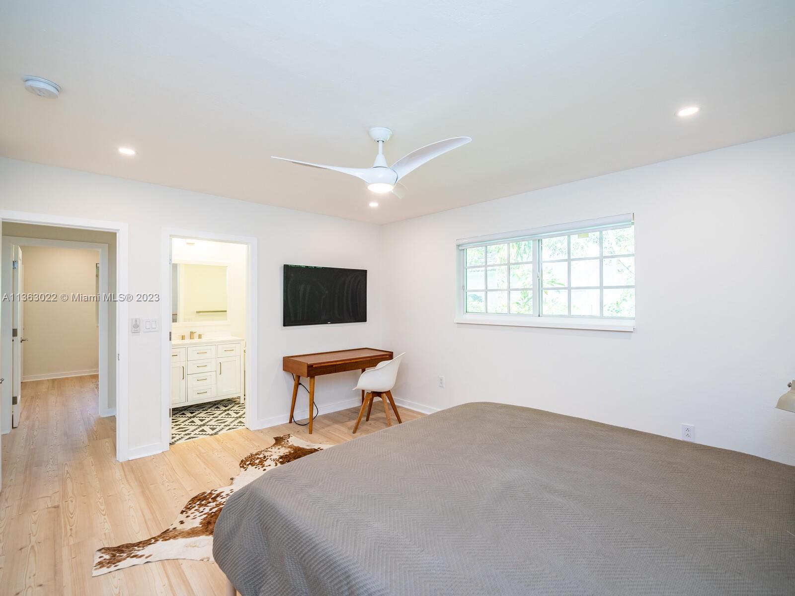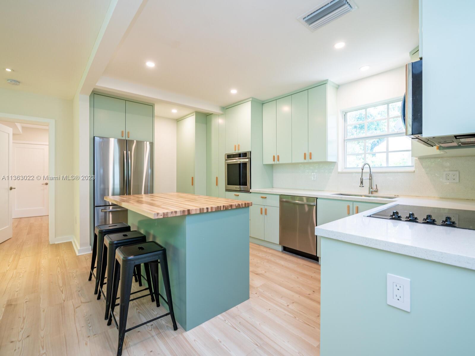 You just found your dream home in a tropical paradise in Miami Shores! Walking distance to shops & entertainment. Permitted garage conversion into 3 bed/3 bath + storage area (with a roll up garage metal door & entry pad), Spacious entrance, living, dining & TV rooms. New open plan kitchen with quartz countertops, butcher-block top island & SS appliances. Permitted plumbing & electric (2023), tile roof (2020). Seamless aluminum gutters. High quality wood-laminate water-resistant floors. Fully fitted closets & modern fans. Impact resistant windows. New single pane front door with single pane side panels. Central AC (2018). 3rd bed & bath add approx 250 sqft to the tax roll (2,000 sqft approx per seller). Wood fence. Uncovered parking in front and back. New digital 4-zone sprinkler system.