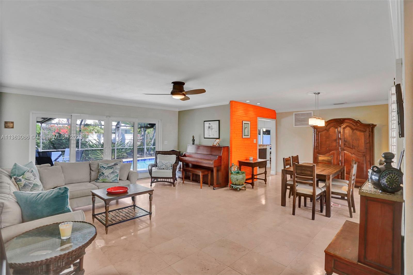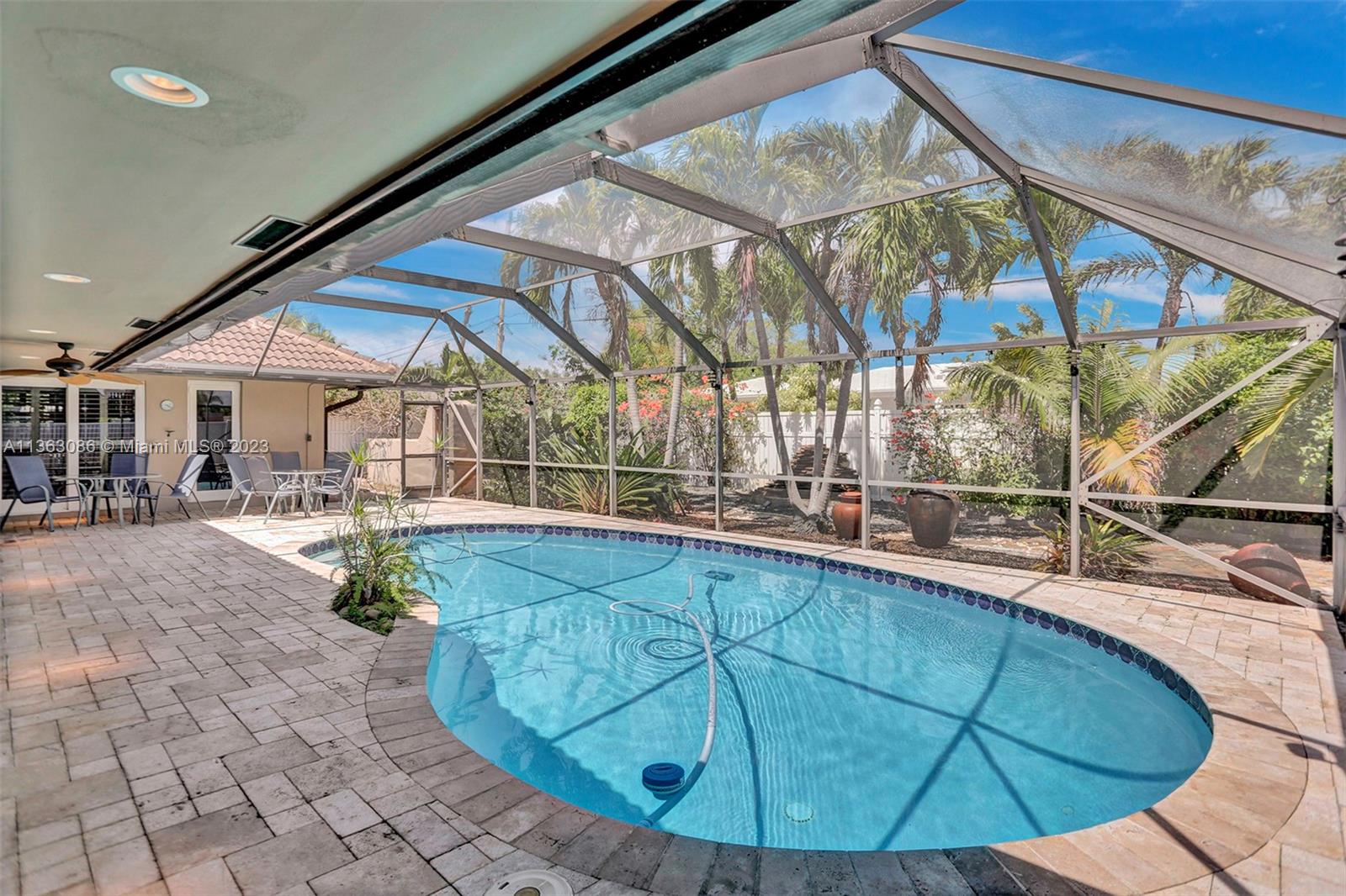 Introducing a stunning 3-bedroom, 2-bathroom residence located in the highly-coveted neighborhood of Imperial Point. Upon entering this home, you'll be greeted with an elegantly designed living room that features stunning marble floors and an abundance of natural light. An updated kitchen complete with stainless steel appliances and granite countertops; along with a separate laundry room/storage room with LG washer and dryer. 2 car garage with extra storage space and a large driveway; impact windows throughout and sliding glass doors that lead to the pool. The screened in heated pool area provides room for outdoor activities and entertaining. The backyard is fully-fenced with tropical landscaping, offering both privacy and a peaceful retreat. Don't miss out on this incredible opportunity!