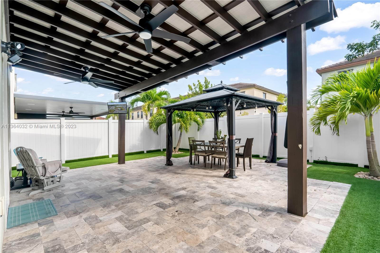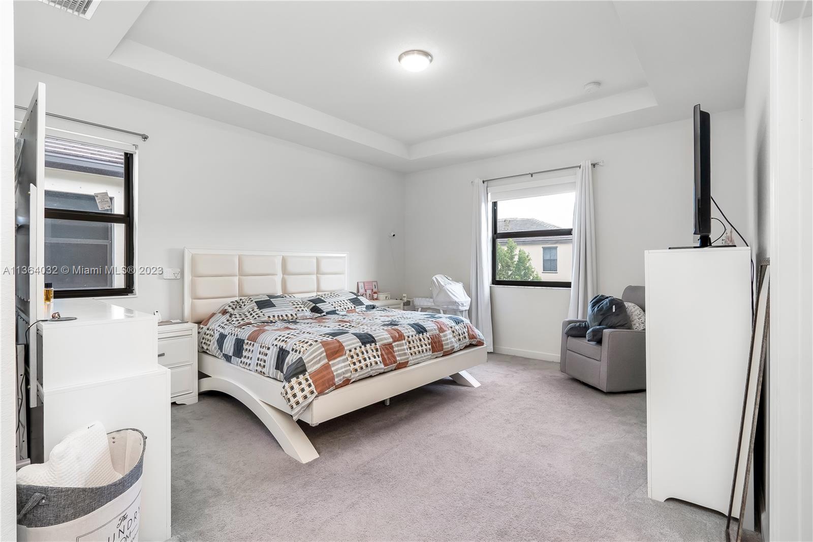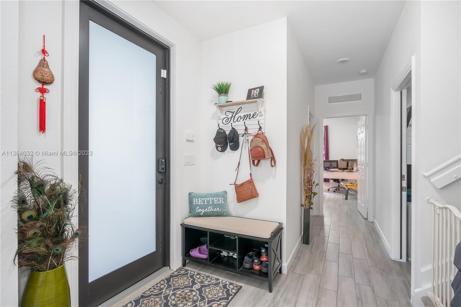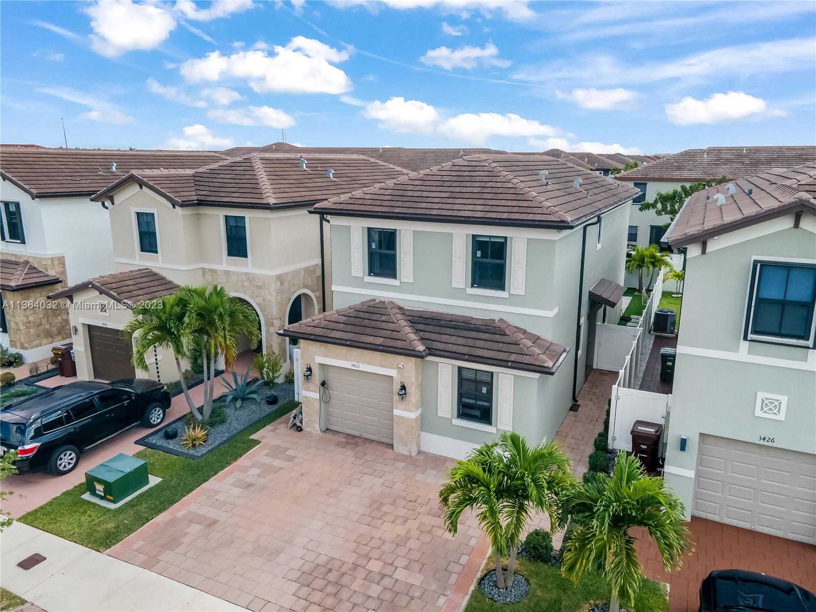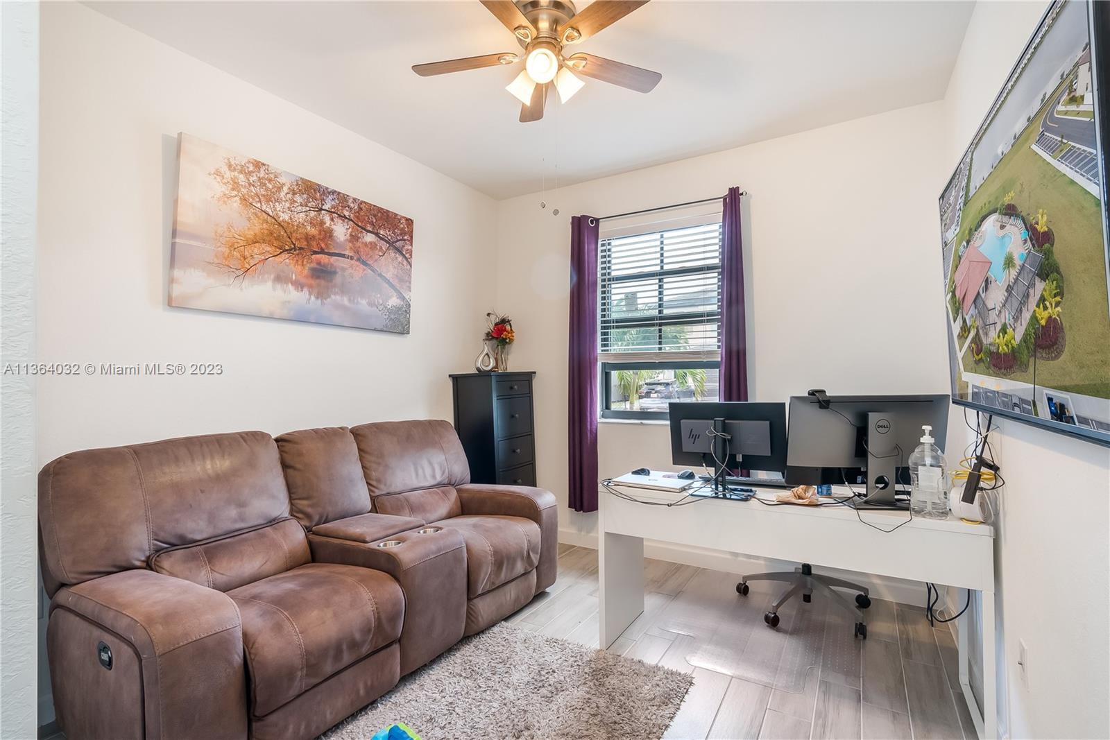 This stunning 4-bedroom, 3-bathroom house is situated in a gated community with 24-hour security. As you enter the home. The first floor boasts a conveniently located bedroom with a full bathroom, perfect for visiting guests. The impact windows throughout the house provide both security and allow natural light to flood the living spaces all day long. The expansive living room is perfect for entertaining family and friends, with a direct view of the completely fenced patio making indoor and outdoor living seamless. The kitchen is an absolute chef's dream, fully equipped with modern stainless-steel appliances and ample counter space. The second floor has a huge master bedroom/walk-in closet. In addition to all these amazing features, part of the garage has been converted into an extra room.