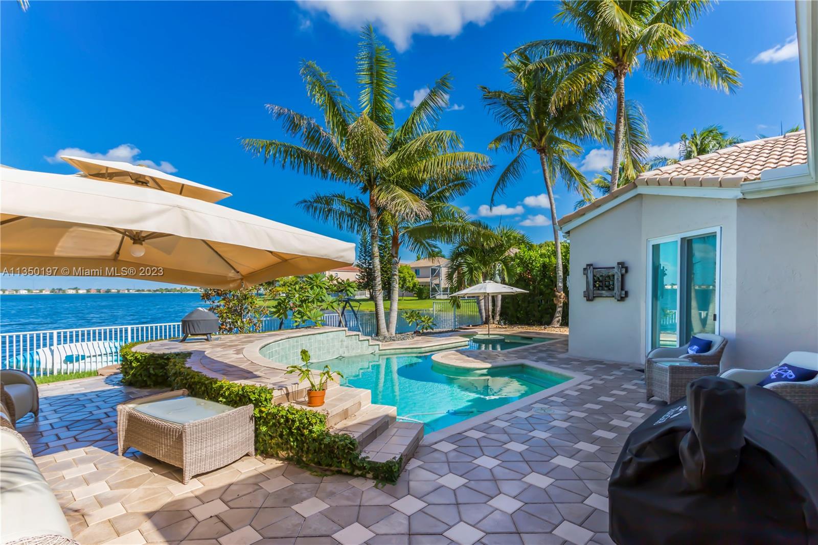 Your Dream Home awaits! Located in Miramar's sought out Riviera Isles Community. Enjoy the resort style pool, gym and club house amenities or relax on your own back yard overlooking the lake relaxing in the pool or under the shade of a mango or coconut tree. Top schools in the area.Pristine interior with Restoration Hardware chandeliers & California Closets in every bedroom and pantry. Impact windows, doors and garage door, plantation shutters and seawall. Pool heater, premium whole house water filter-softener with UV light and GE GeoSpring hybrid electric water heater (absorbs the heat in ambient air in garage and transfers it into water). GE profile series kitchen appliances 2021 (with induction range), secondary fridge in garage, new AC units 2022 with Nest Thermostat.