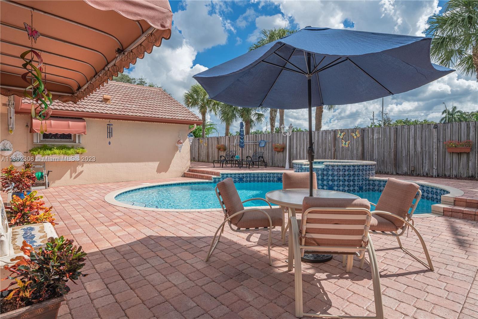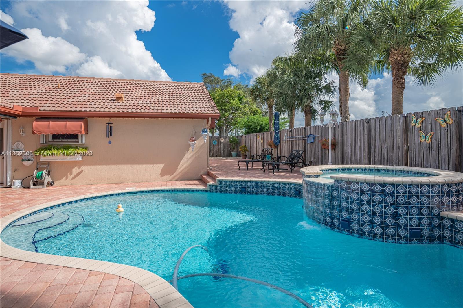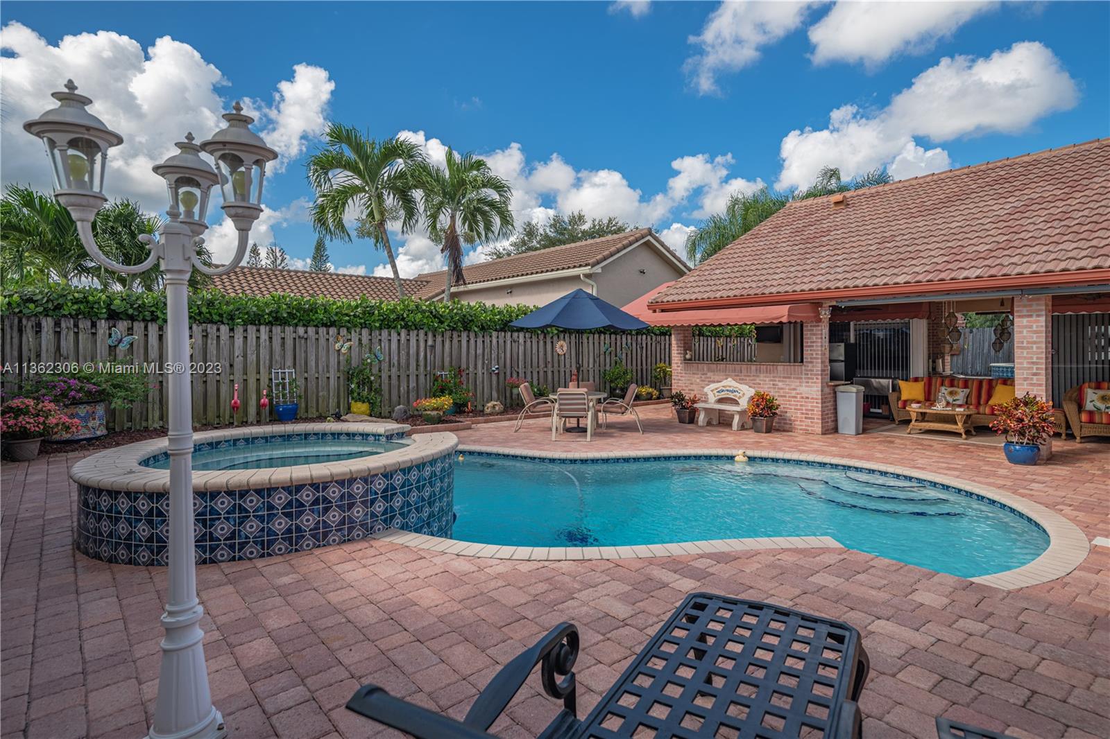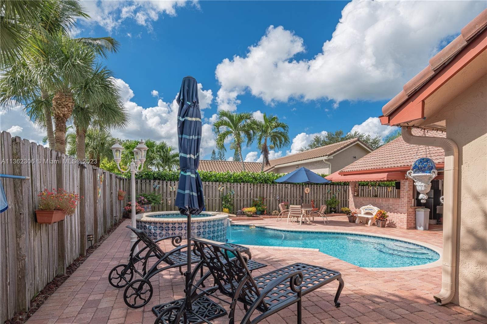 Location, Location, Location!! A must see!! Gorgeous 4/2.5 home. Enter through the double glass doors into a bright & spacious living/dining area w/high ceiling, crown molding & view of your resort-style pool area w/outdoor kitchen. Large family room & kitchen, wood cabinets w/lots of storage, granite countertops, & eat-in area. Split bedroom plan. Spacious master bedroom., updated bathroom w/shower, & his/hers closet. Three large bedrooms & 1.5 baths down the hall from the family rm. The 1/2 bath has an exit to the pool area. Laundry rm w/newer washer & dryer, 2021. Roof-2013. AC-2019. WH-2020. Exterior painted, 2020. Pavers throughout the outside, including the garage. And much, much more to offer. A+ schools. Close to major highways, shopping, entertainment, & house of worship.