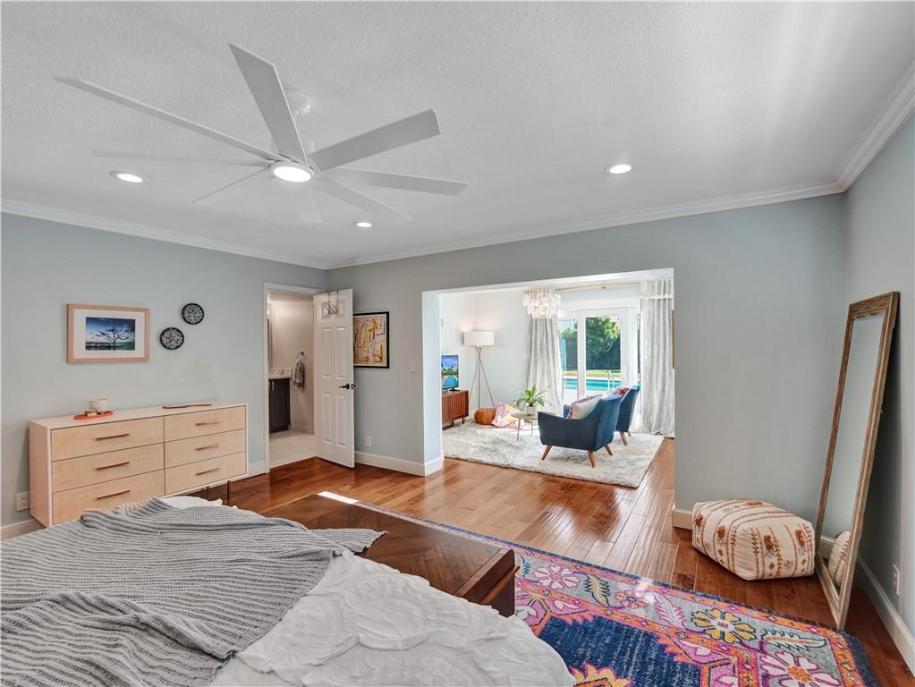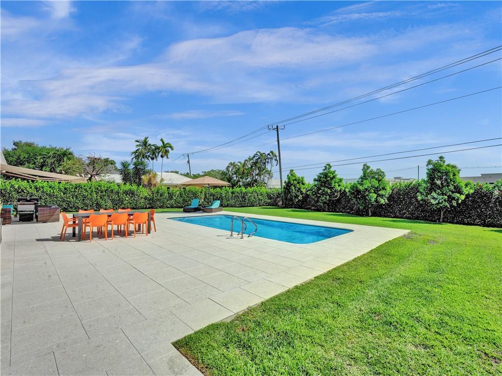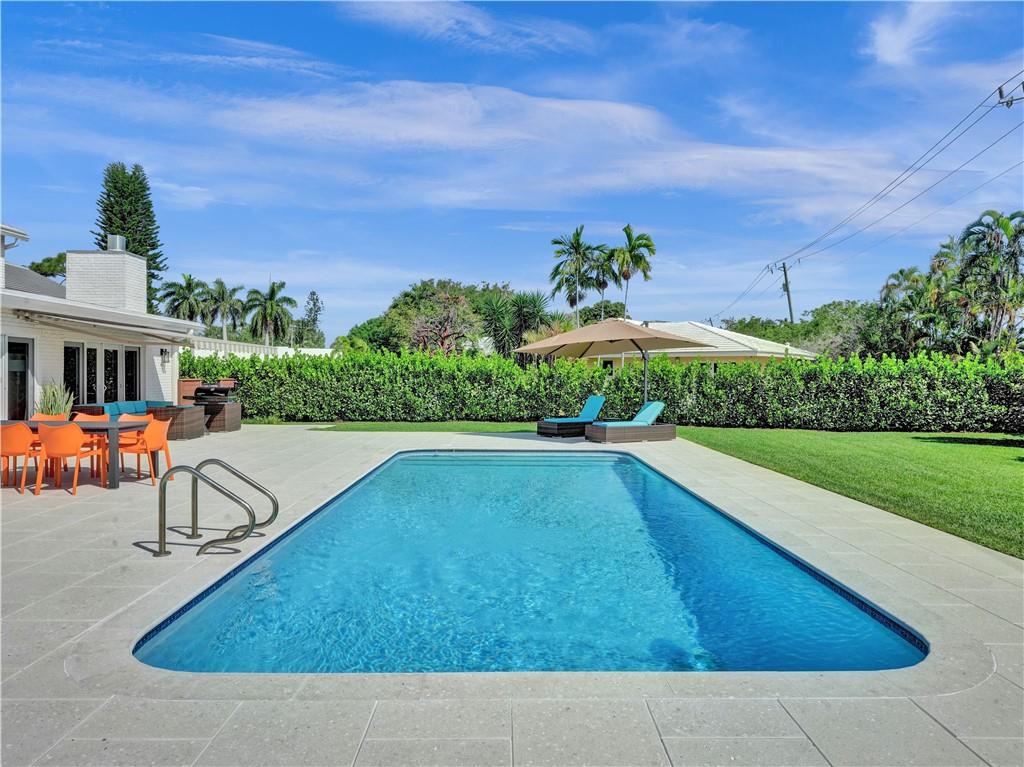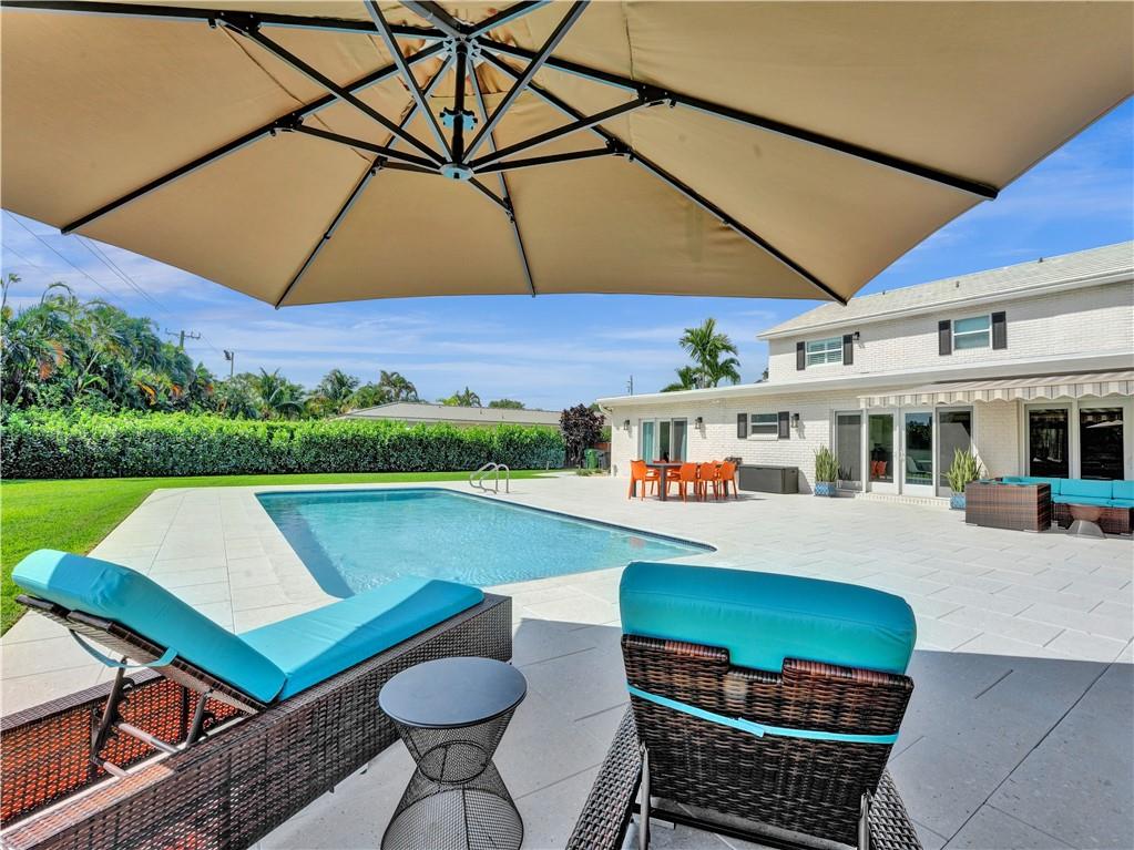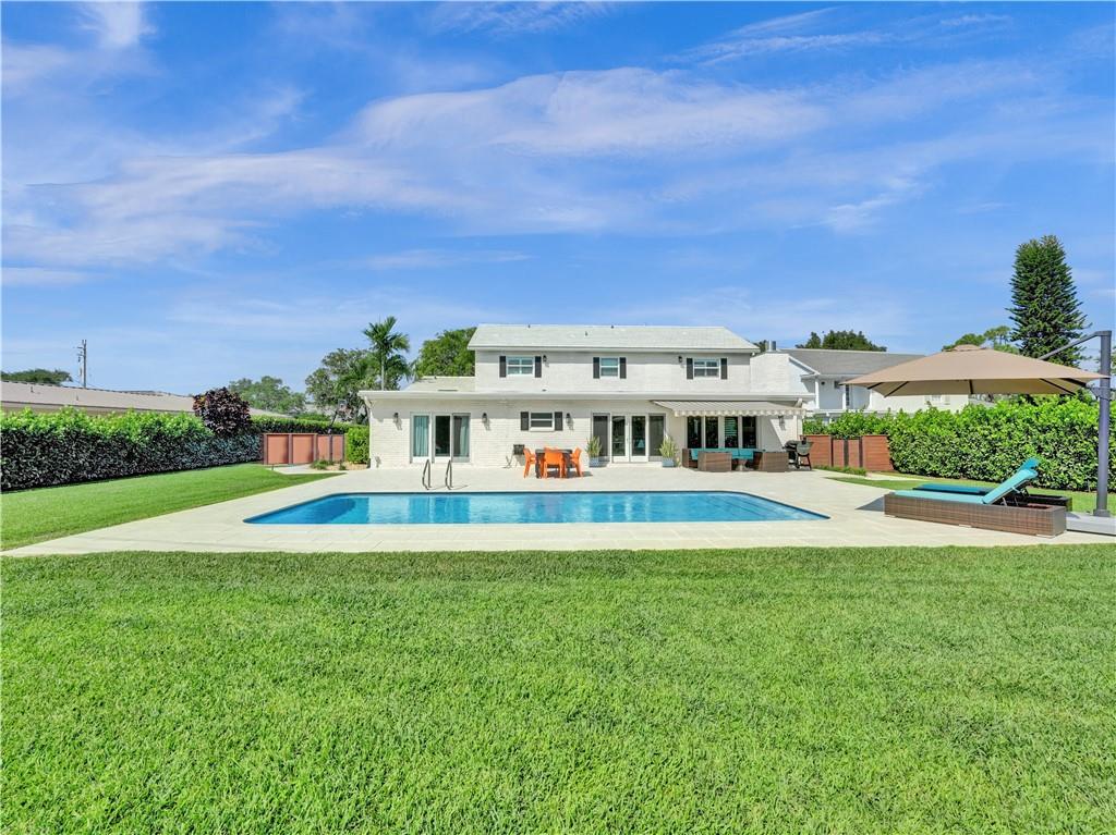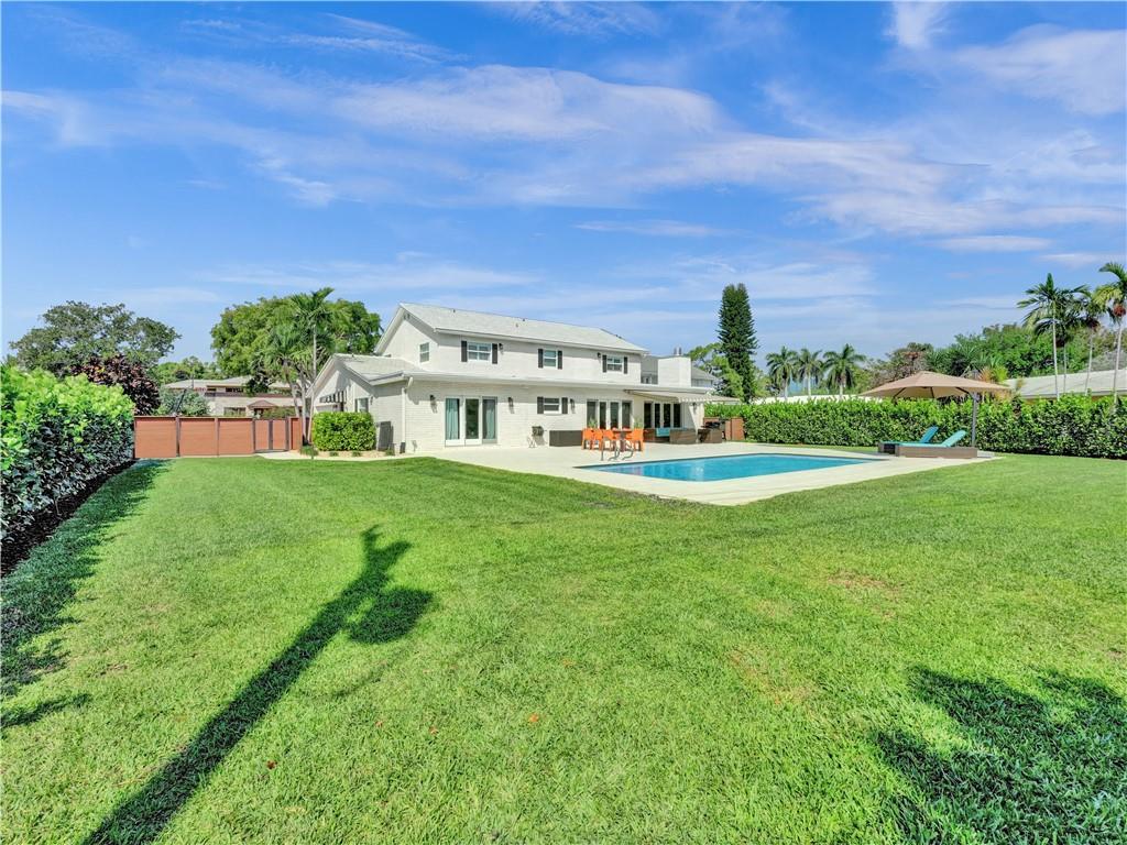 Welcome to this special home on one of the prettiest streets in Fort Lauderdale. This Coral Ridge beauty sits on an almost 18,000 sq foot lot!! Great curb appeal with the house set far back from the street and one of the largest backyards you will ever see. A huge pool, tons of patio space, and an insane amount of grass (with a well for free sprinkler water!). This large house offers over 3500 sq feet of living space plus a large 2 car garage. First floor primary suite with sitting area overlooking the pool and yard, beautiful bath, and 2 generous closets. Large open living space with lots of natural light. Four large bedrooms upstairs sharing two baths. Hurricane impact windows and doors, all PVC sewer lines, newer baths, wood floors and so much more.