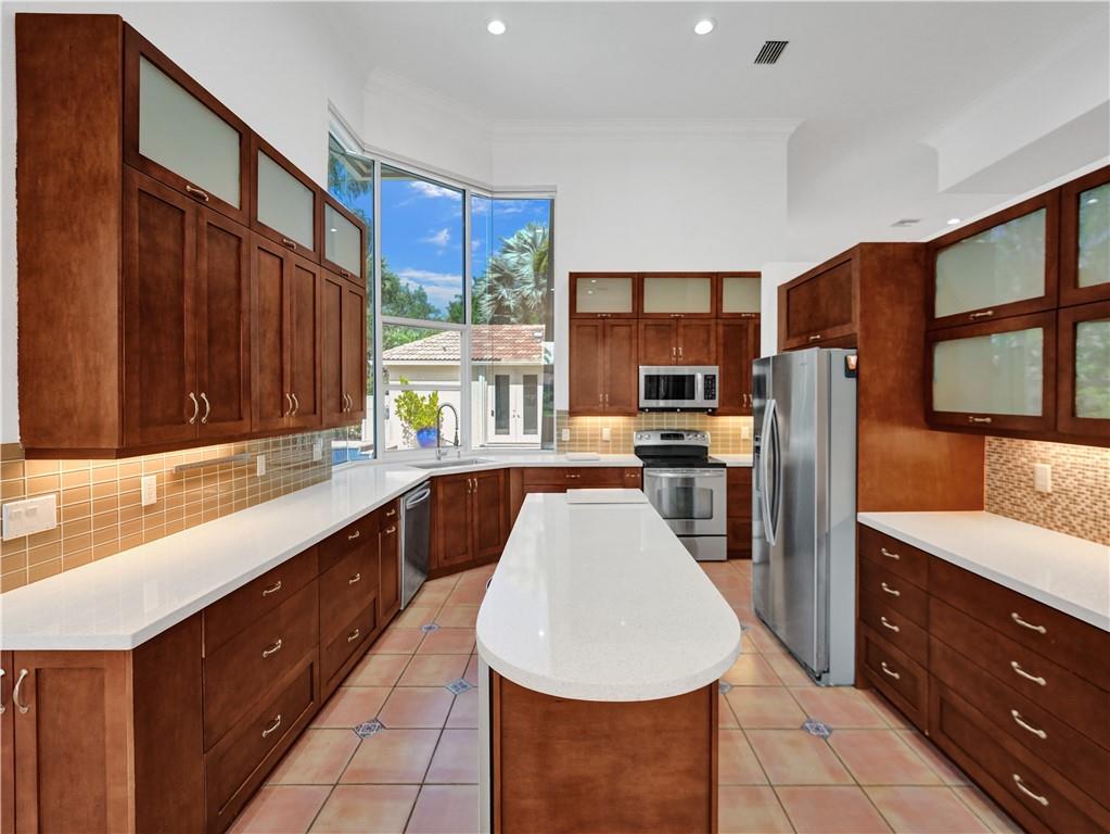 What an extraordinary Home! A hidden gem nestled on an oversized, private, lushly landscaped, fenced corner lot, with breathaking lake views in the covetted Weston Hills Country Club. This amazing courtyard home features 3 bedrooms + a Den, 2.5 bathrooms in the main house and a 1 bedroom, 1 bathroom guest house. With Soaring 15ft ceilings elegant crown moldings, and beautiful wood floors add to the sophisticated ambiance, while the open, bright floorplan frames tranquil lake views. The gourmet kitchen boasts a center island and wine cooler, perfect for entertaining friends and family. The resort like pool and patio areas are ideal for relaxing and taking in the serene views of the landscaping and lake. Spacious driveway with 3 car garage completes this exceptional property!