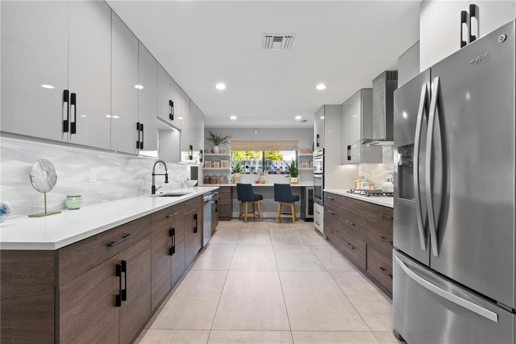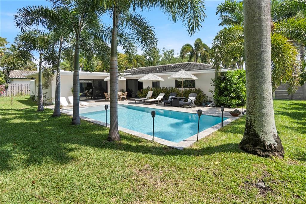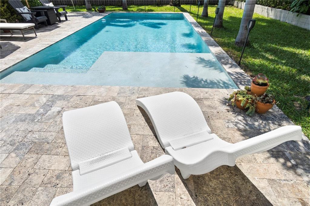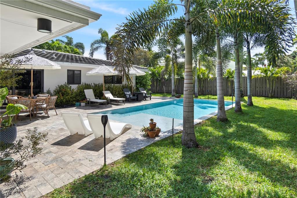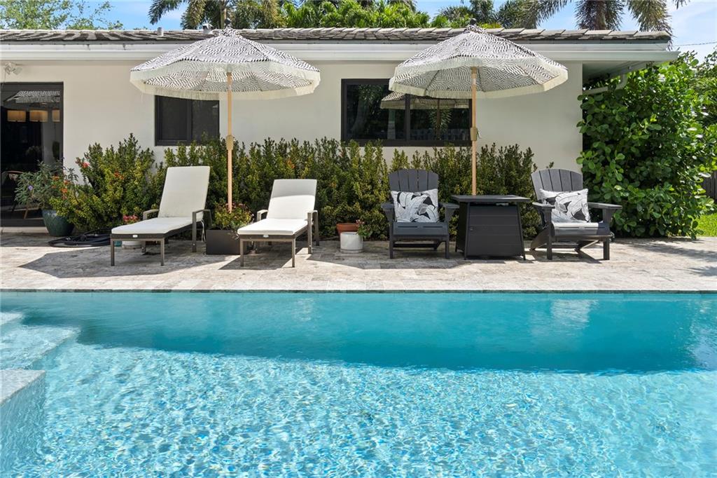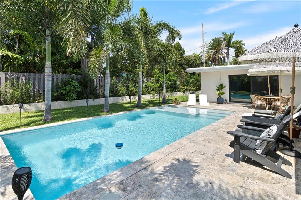 Beautiful renovated Coral Ridge pool home. 3 bedrooms, 3 full baths, 2 car garage, giant master bedroom w/ en suite, 2nd bedroom w/ en suite, every bedroom has walk-in closet. Split floor plan, open kitchen, great natural light. Renovations from 2018: Flat tile roof, all impact windows & doors, kitchen w/ gas cooking, and all bathrooms. Complete electrical rewire, updated plumbing. Sleek tropical pool w/ travertine decking and quiet private yard. Really great street and area of Coral Ridge.