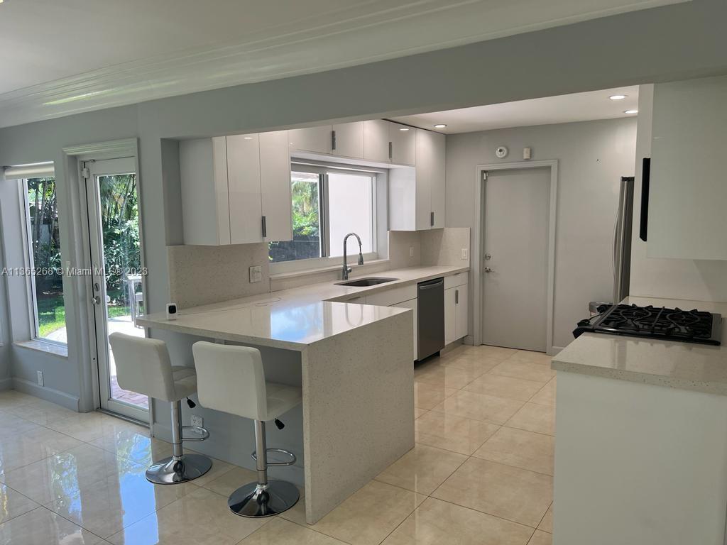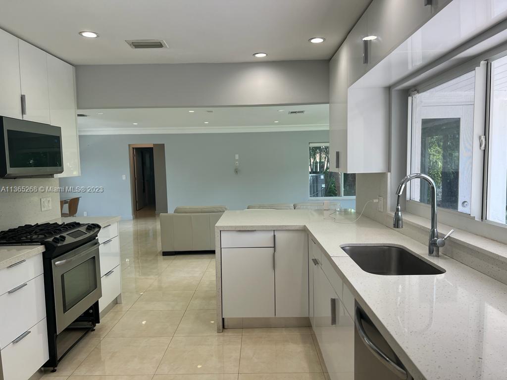 Move in ready! Fully updated and beautifully landscaped 3 bedroom, 2 bathroom house in most prestigious location of Hollywood Lakes. Spacious open floor plan with Italian porcelain tile floors, open kitchen with stainless steel appliances, gas stove, waterfall countertop; jetted tub in master bathroom, finished oversized 1 car garage/utility room, tile roof, impact windows and doors, travertine marble circular drive/entry way, fully fenced with electric gates. Deep double lot, over 13,000 sq. ft. (134 ft deep) with room for pool. Five mins from Downtown Hollywood, Hollywood Beach/Boardwalk, and marina.