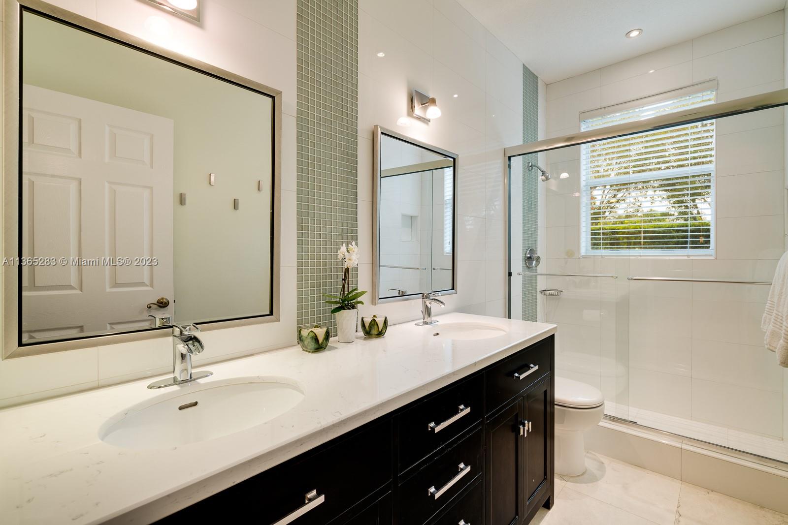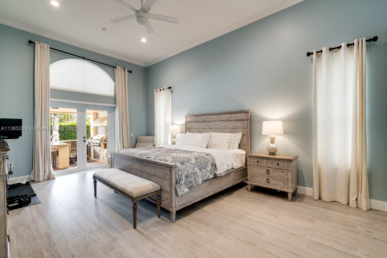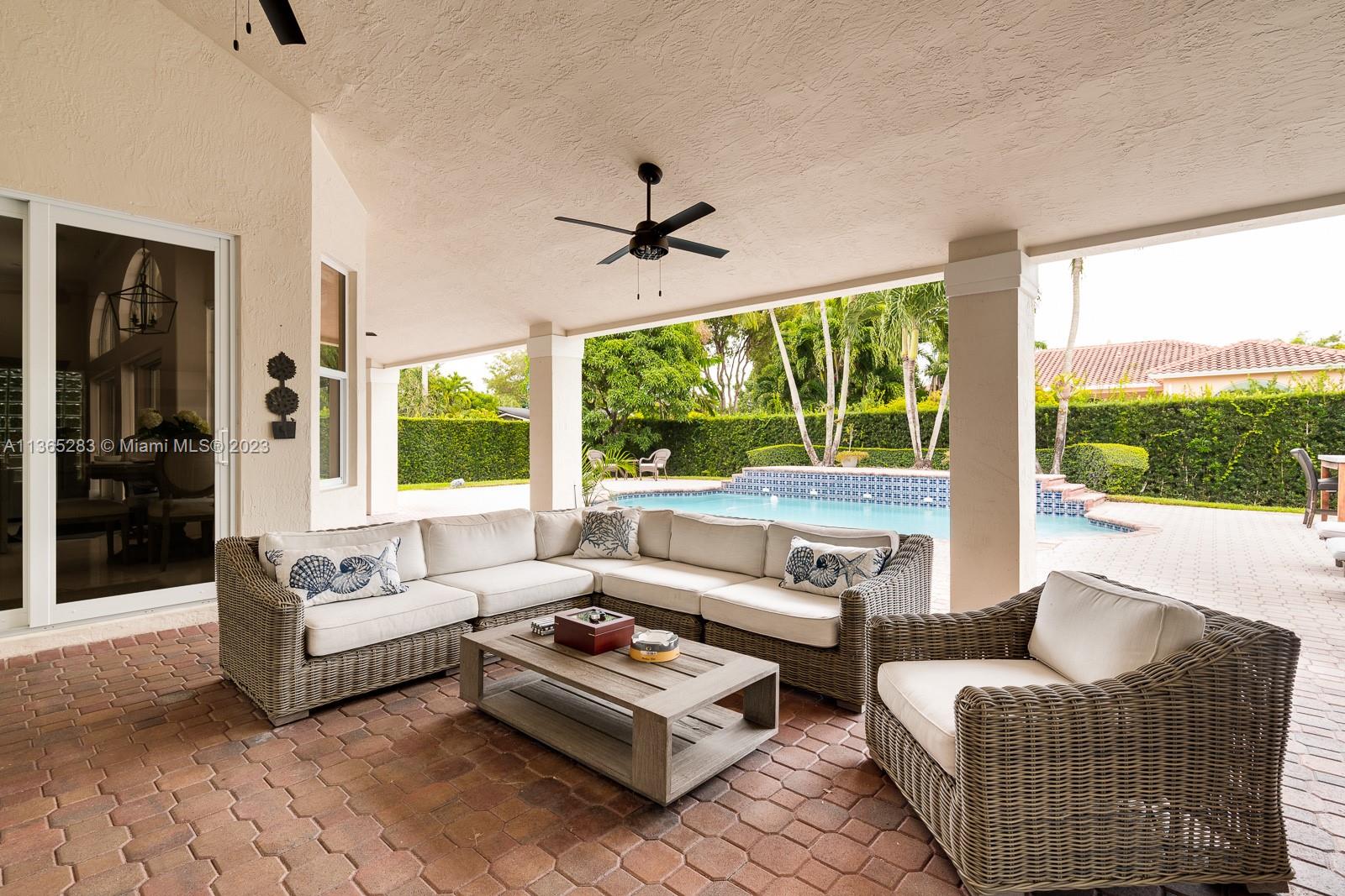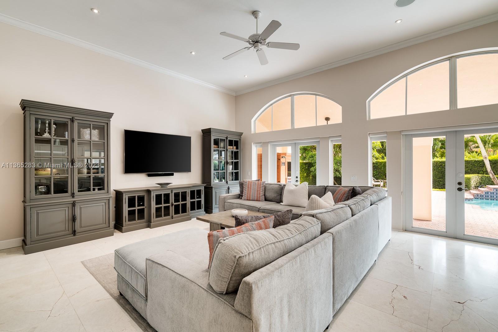 Modern 4 bdrm/ 3 bath remodeled beauty. Soaring volume ceilings & fantastic natural light. Grand formal living rm & dining rm. Stunning, glass enclosed wine storage is an art piece while also offering functionality for your wine collection. Spacious family rm opens to a true gourmet kitchen, featuring Turkish marble floors, eat in island seating, white cabinetry, quartz countertops & breakfast area. Lovely primary suite w/ spa-like bath, double vanities, shower, jetted tub. Impact windows/doors. Fantastic summer kitchen w/BBQ & expansive covered patio, pool w/ water feature, lovely yard has privacy hedge & plenty of seating space, all perfect for summer afternoons entertaining family & friends. Indoor laundry room. New AC, security system. 2 car garage.