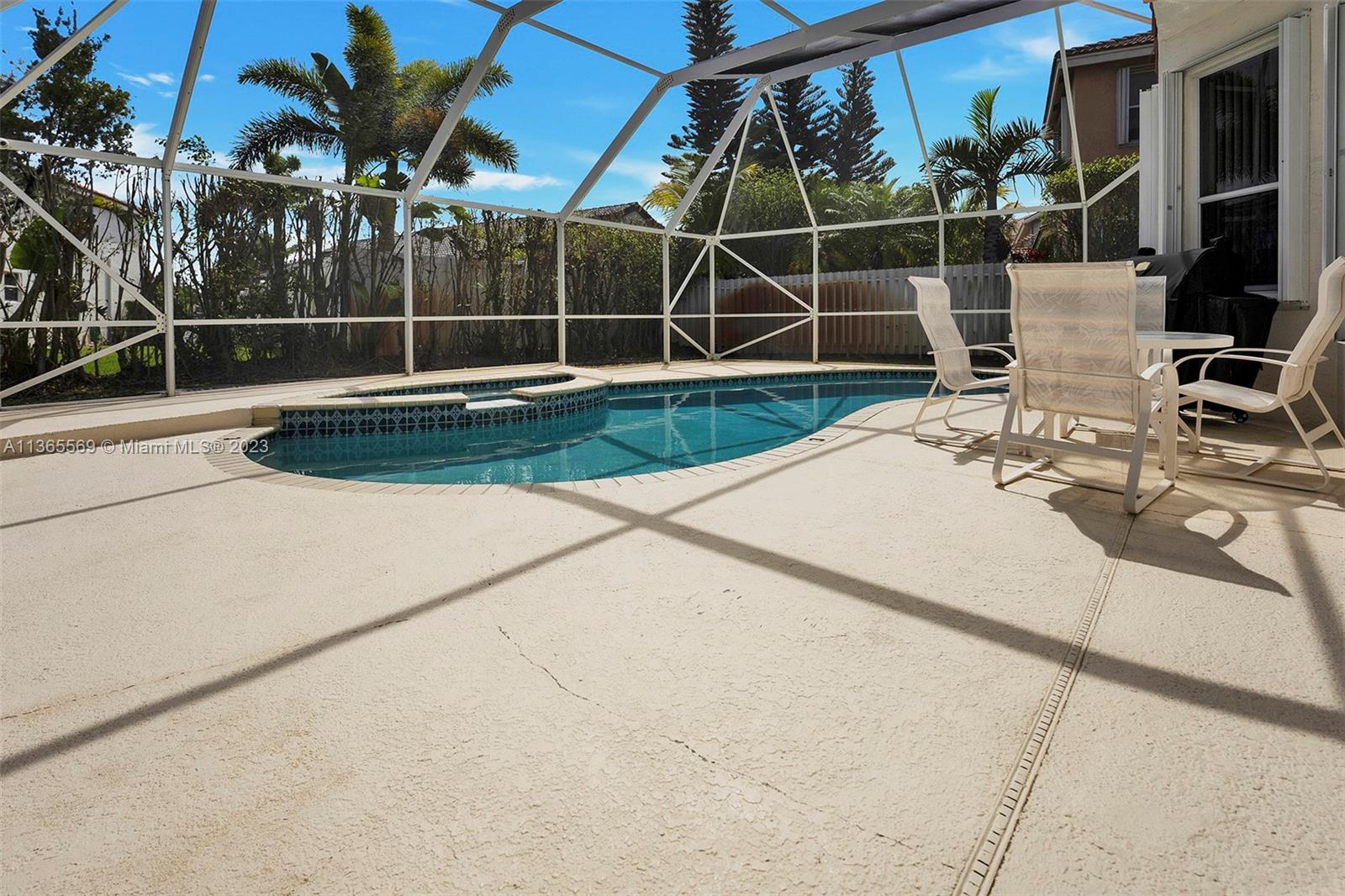 Super rare find in well sought out location in West Miramar. This home offer 4 bedrooms and 4 bathrooms, w/ Jack & Jill bathrooms inside the masterbedroom. This home has a newer roof 2019, with new Frigidaire kitchen appliances. 15X30 screen pool.